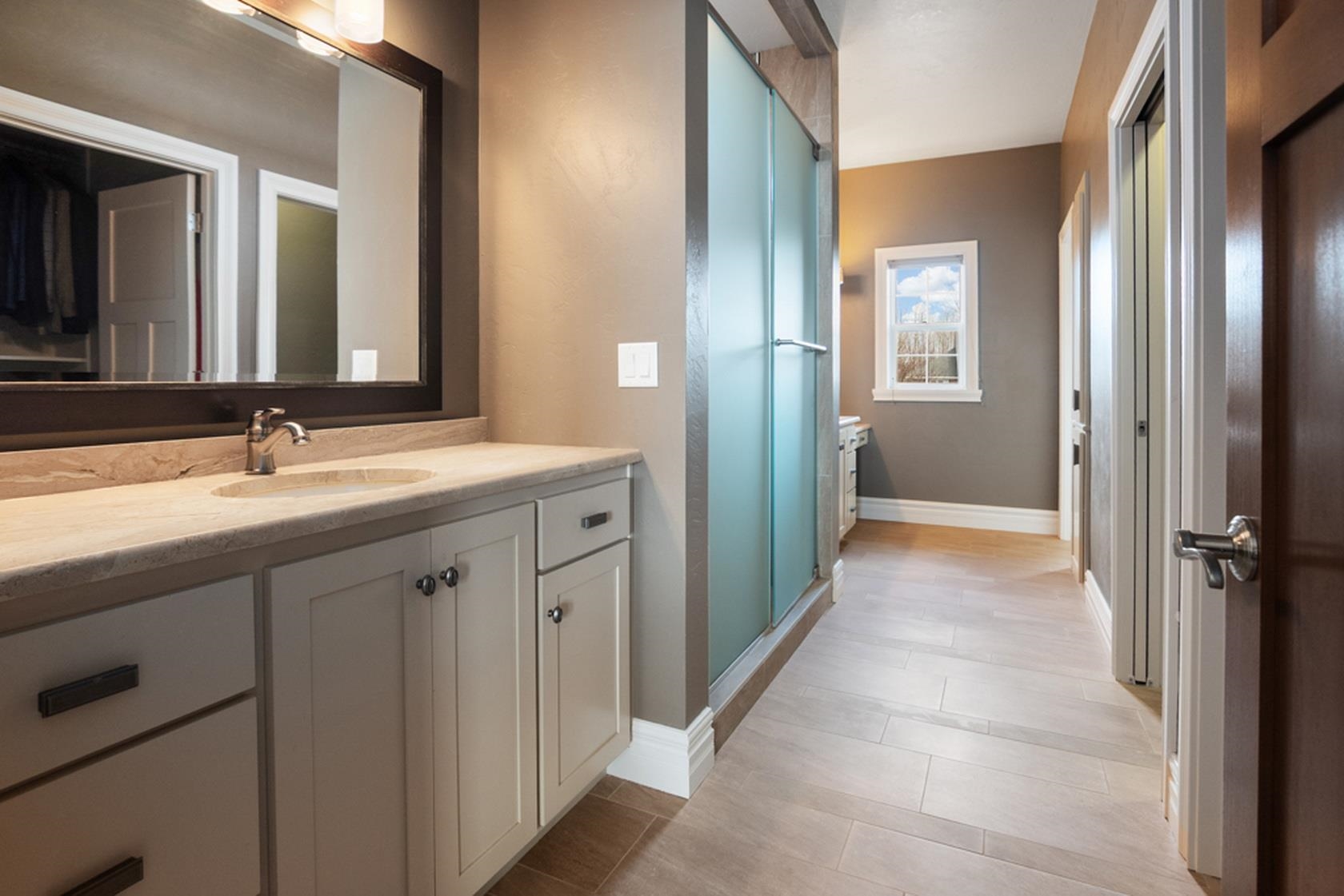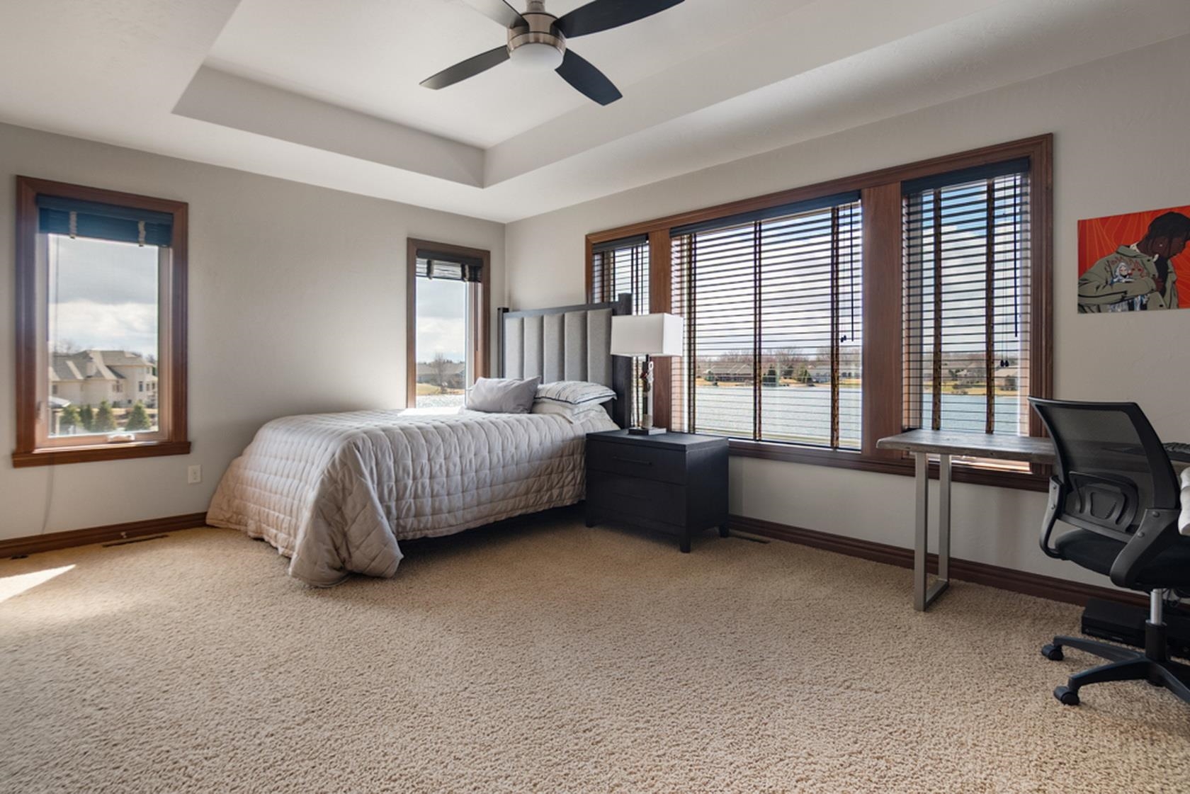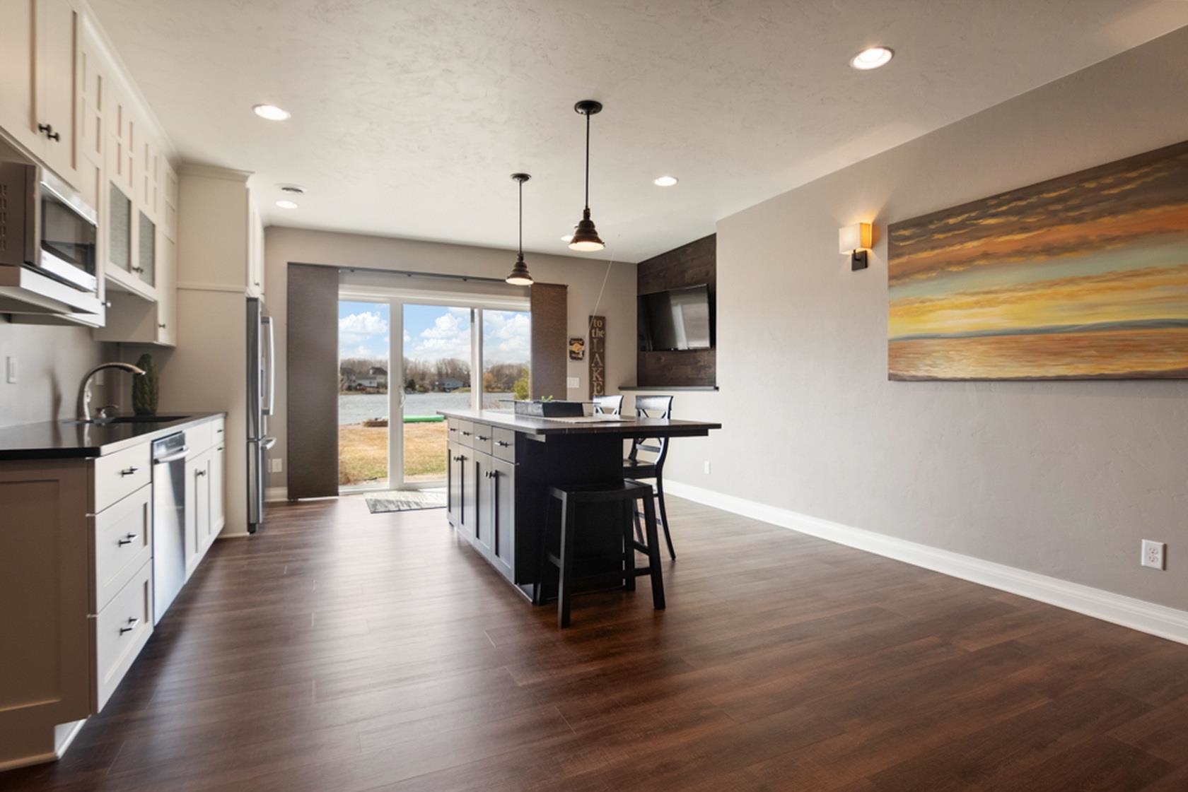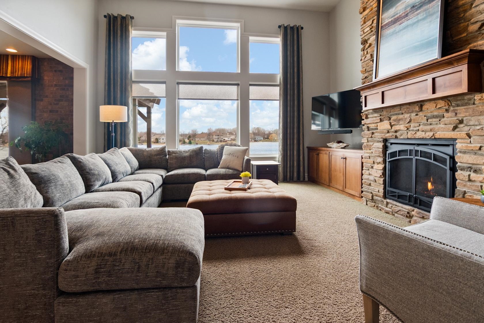 Over 110' of panoramic frontage on Harbor Lights Lake in Suamico with your very own beach! An extremely rare find with over 5,200 Sq Ft, fully updated interior, custom-built showcase with high quality finishes, amenities & materials throughout. Flexible layout with 1st floor ensuite with great lake views, walk-in closets (2), walk-in tile shower, heated floors, 1st floor office/flex room, 9-10' ceilings, great room with balcony, coffered ceiling, floor to ceiling stone fireplace, spacious kitchen/dinette/hearth room - amazing layout for entertaining! Chefs kitchen with oversized island, appliances included, granite countertops. Cozy hearth room, walk-in pantry, mud room/lockers, 1st floor laundry, large storage closet, 4 add oversized bedrooms.
