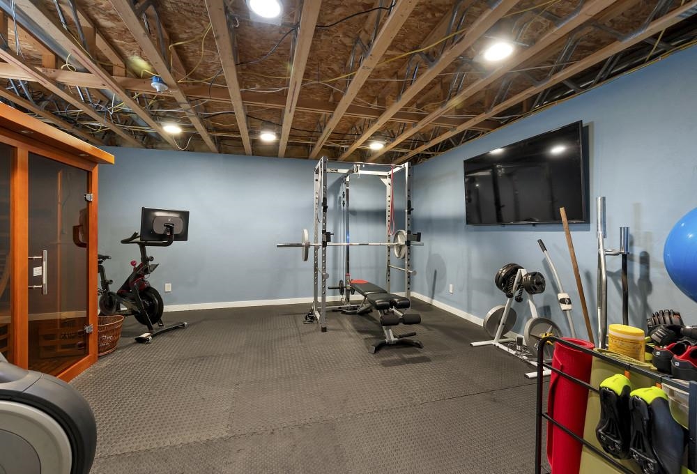 Hot tub, basketball hoop, playground and flag pole