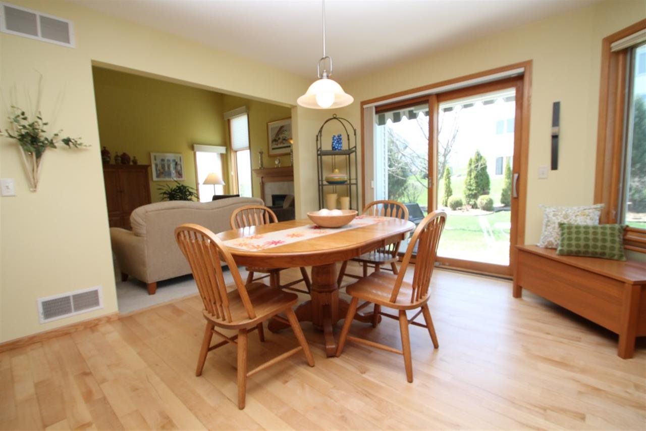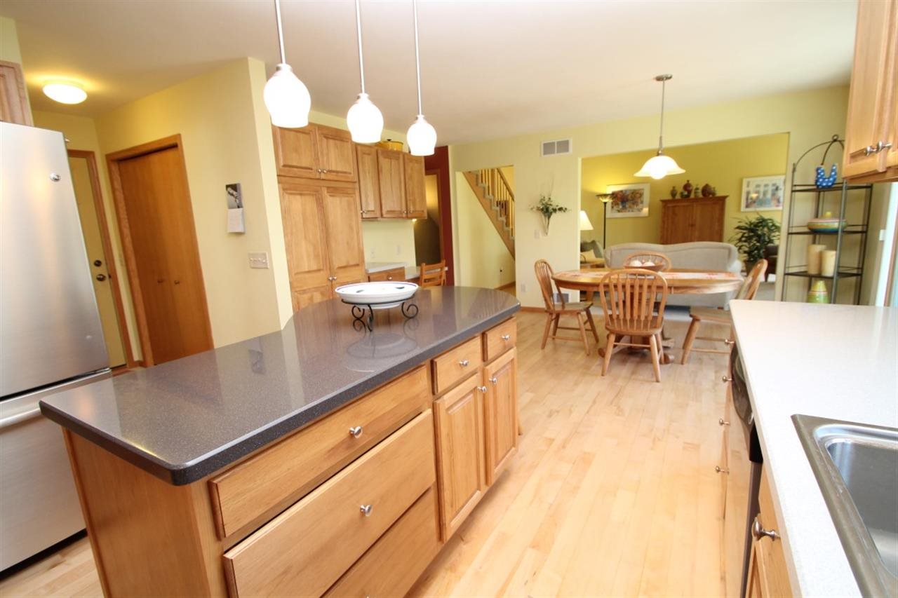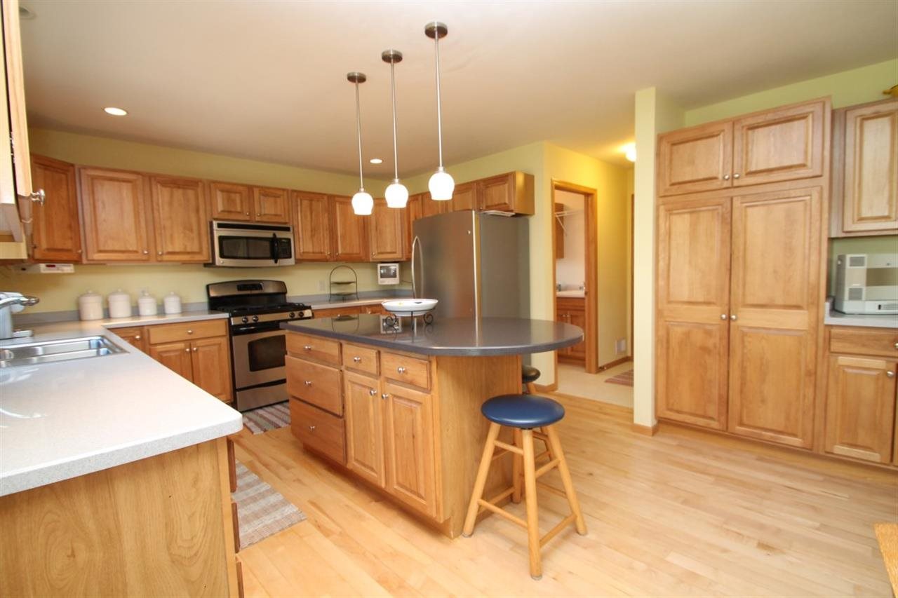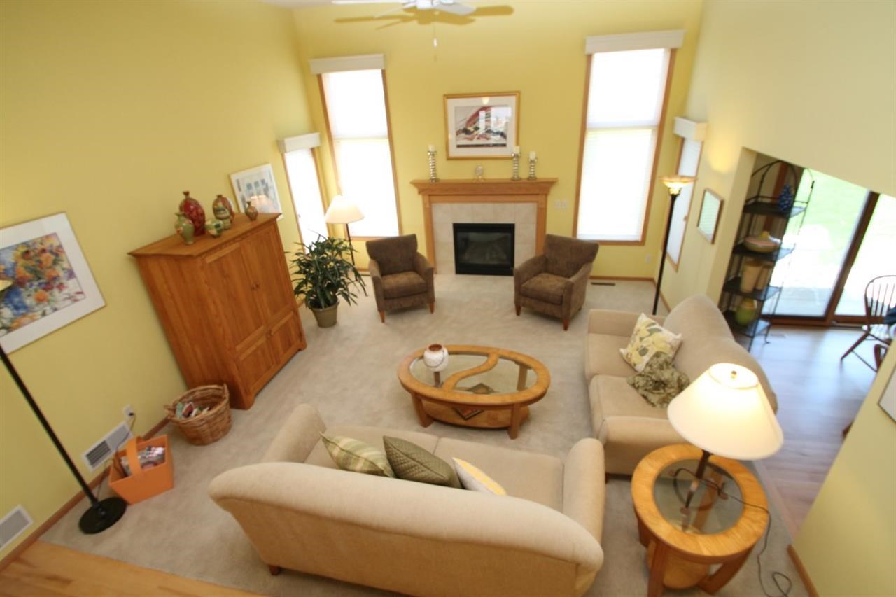 Truly gorgeous home in "like new" condition! Plenty of windows provide light & bright space featuring spacious foyer w/ hardwood flooring extending to lovely kitchen w/custom hickory cabinetry, center island & dinette w/walkout to patio. Living room w/dramatic 12' ceilings & gas fireplace. Main level master suite w/soaking tub, separate shower & walk-in closet. Open staircase to 2 upper bdrms & full bath. Awesome space in walkout LL w/rec rm, floor to ceiling brick fireplace, 4th bdrm/office & full bath.