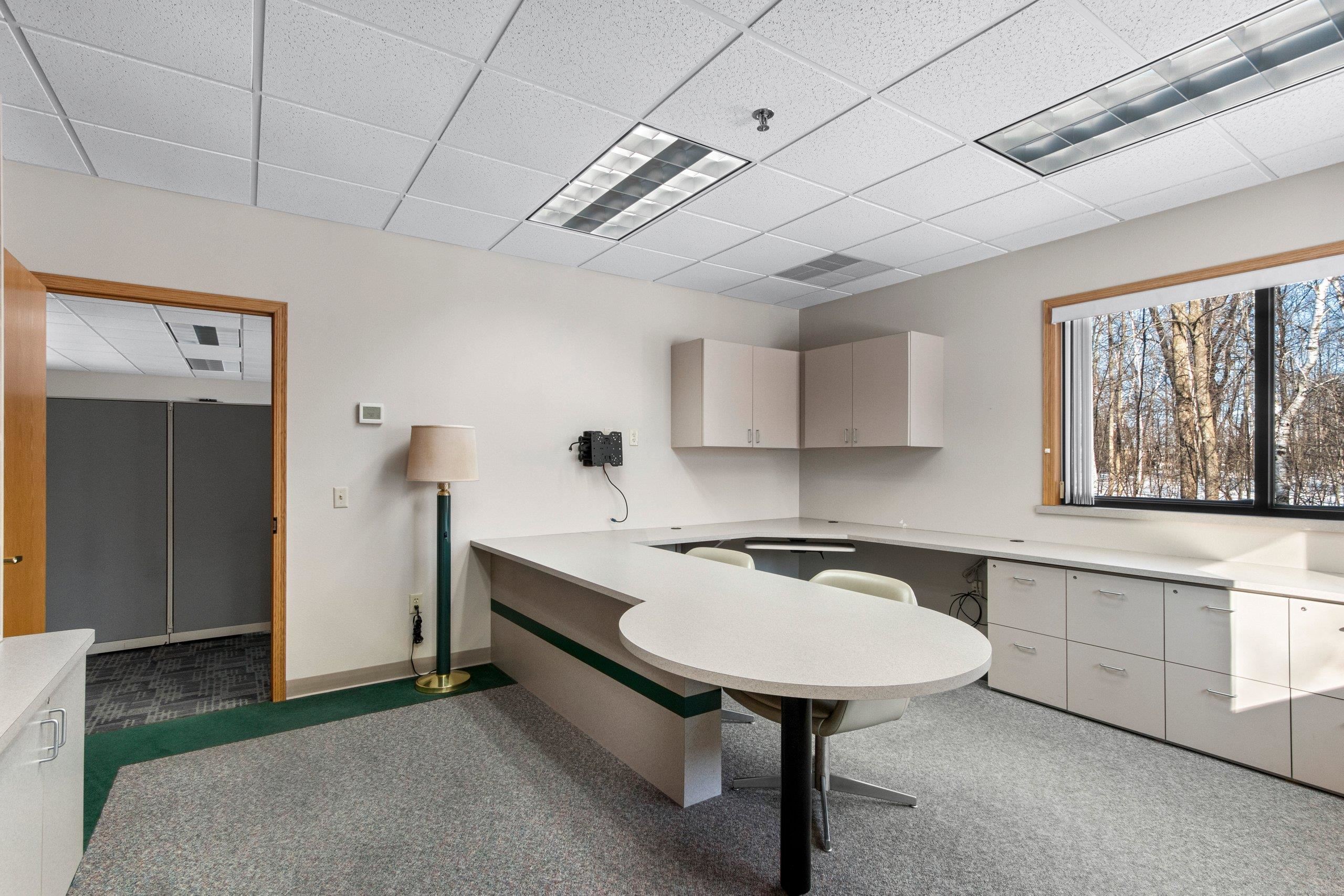 Exceptional Class A office space available in a premier Green Bay location. Situated on a 2.6-acre site with a peaceful wooded backdrop, this property offers a professional, campus-like setting with ample on-site parking. The building features a flexible layout with two wings of open floor space with cubicle systems in place, complemented by private offices and conference rooms. A welcoming reception area greets clients and guests at the front entrance, while a centrally located collaboration center serves as the hub for meetings and team interaction. Constructed with quality and longevity in mind, the building features brick construction, a steel roof, and a full fire suppression/sprinkler system—providing a polished, efficient, and dependable environment for today’s business needs.