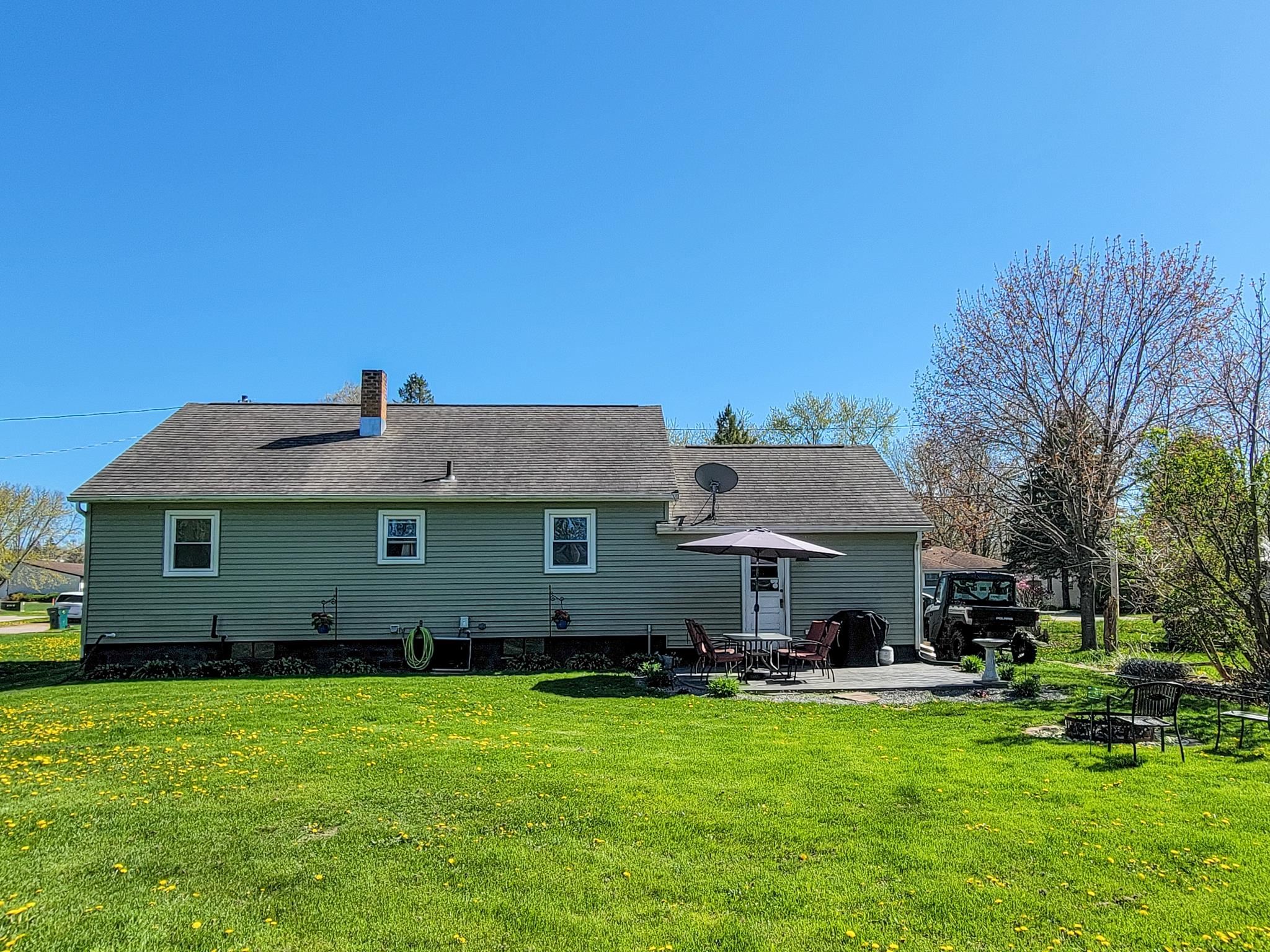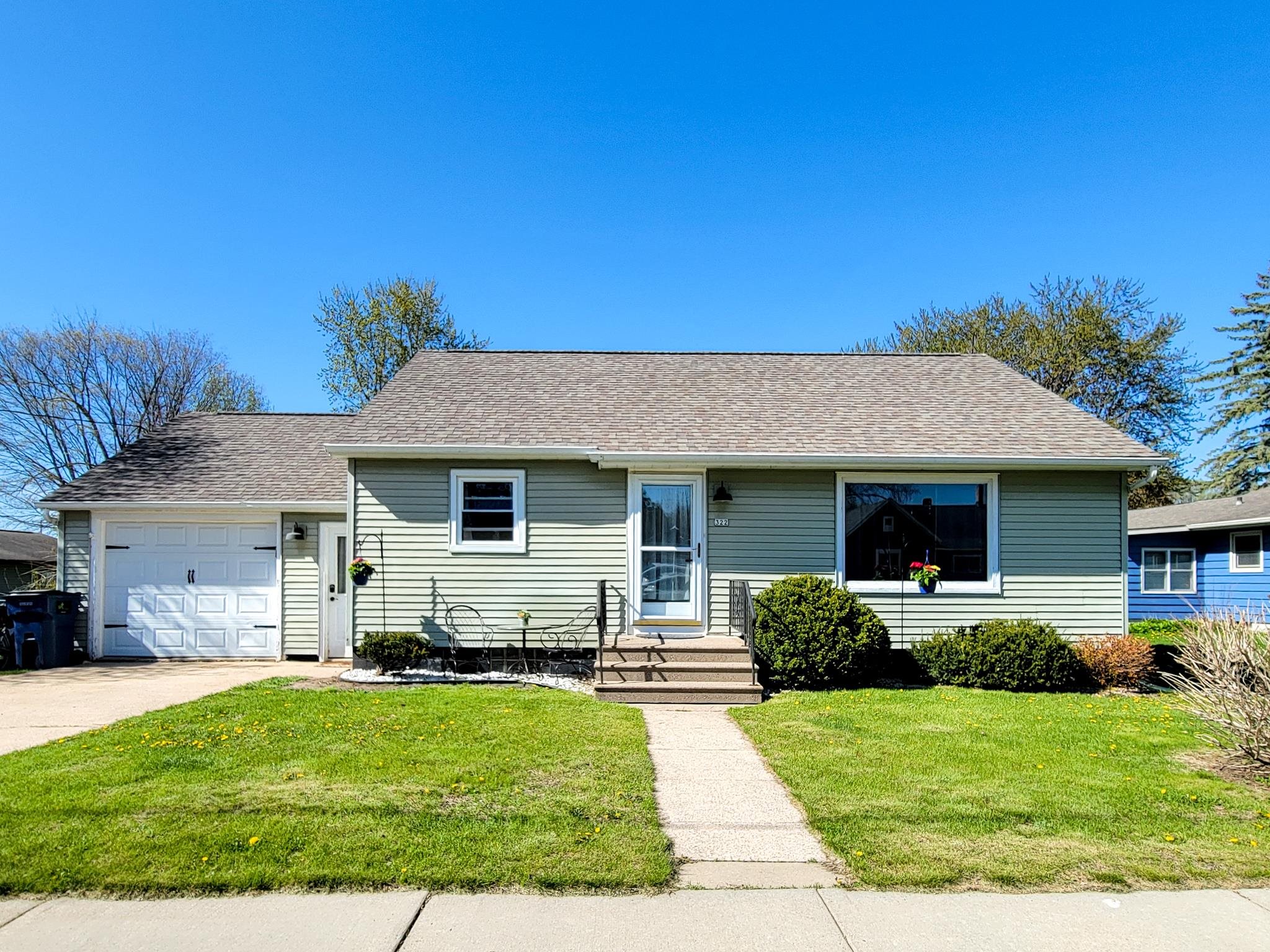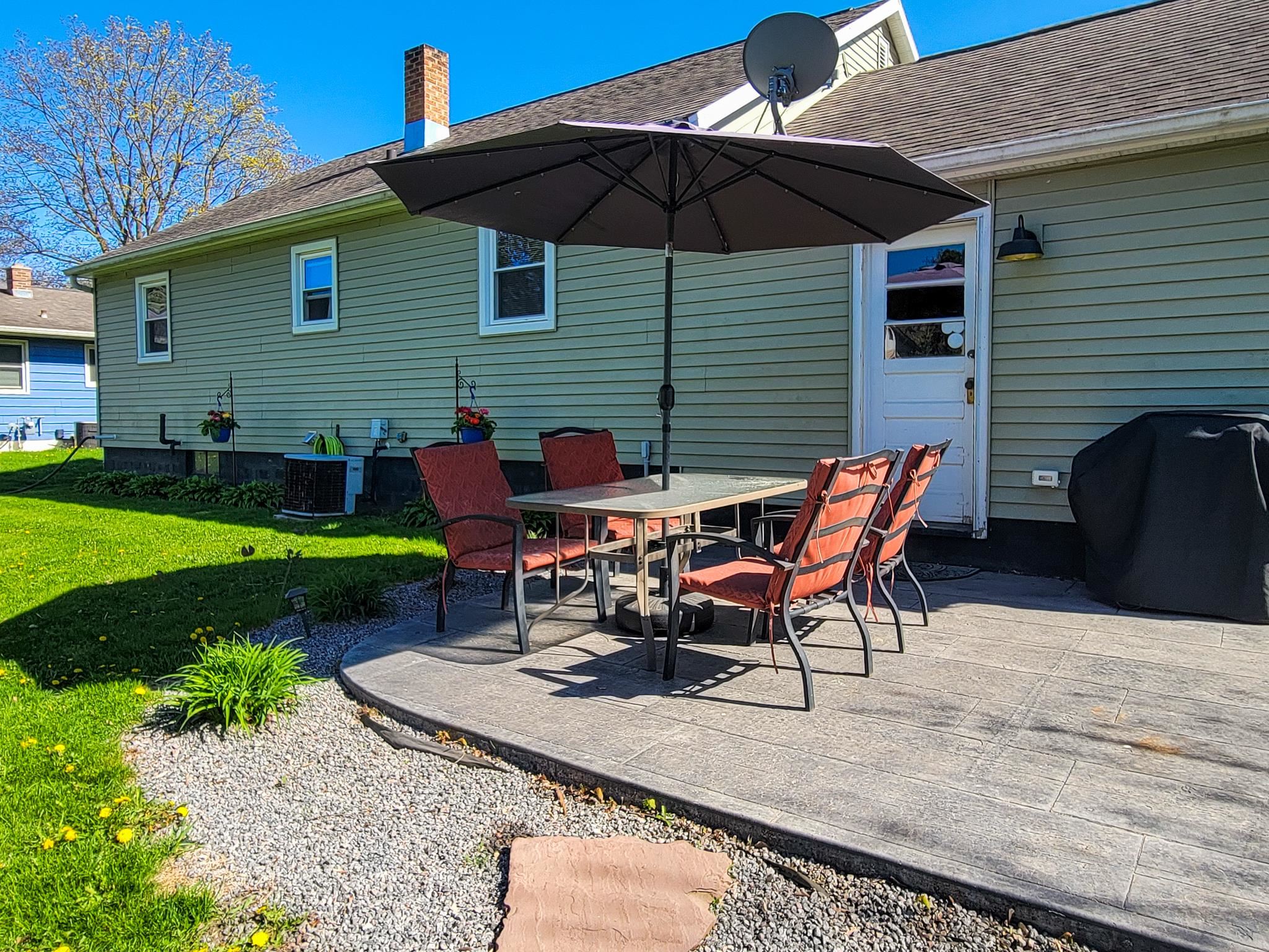 This updated 2-bedroom ranch home offers classic charm. The spacious living room with large windows provide an abundance of warm, natural light. The floor plan flows nicely into the dining area and kitchen with split bedrooms having sizable closet space. The unfinished basement gives more options for space and storage and has been plumbed for an additional bath. The large backyard with its beautifully stamped patio is ideal for relaxing or entertaining. This cozy home is conveniently located near downtown shops, schools, and recreation. Recent improvements include hot water heater, microwave, sump pump, transferable basement warranty (2025), washer/dryer, ceiling fans, outdoor lighting fixtures, and smart locks/handles (2024).