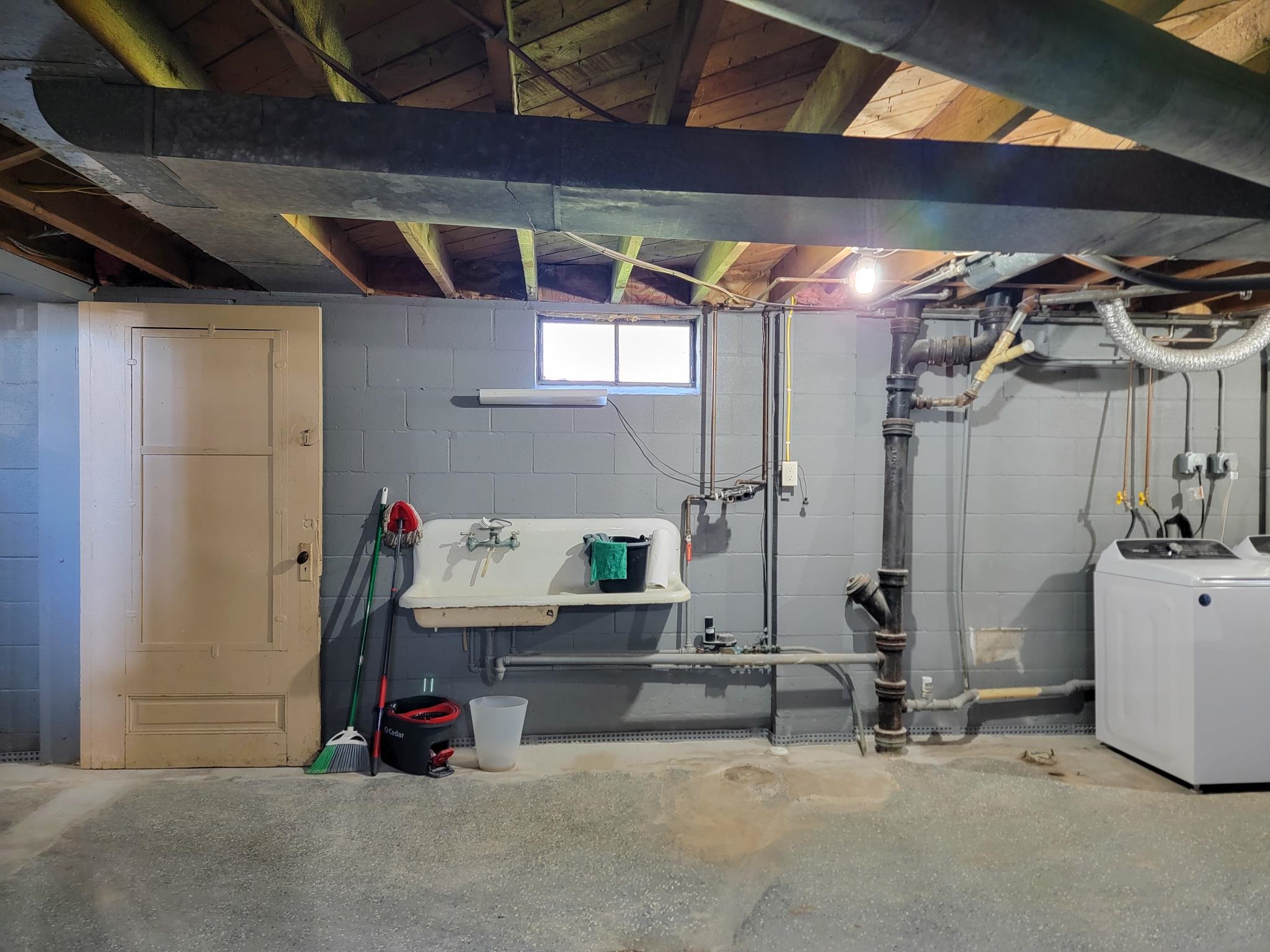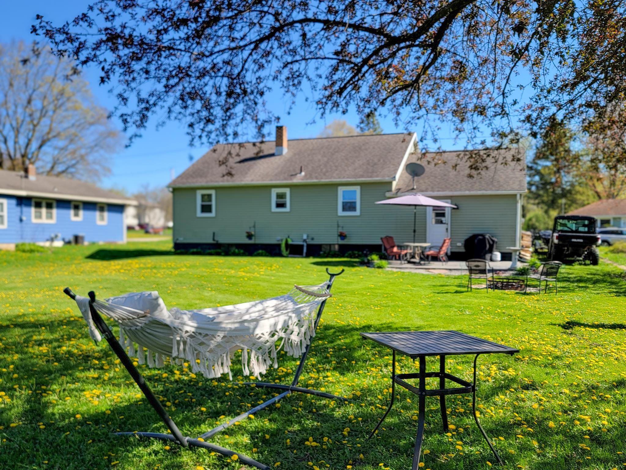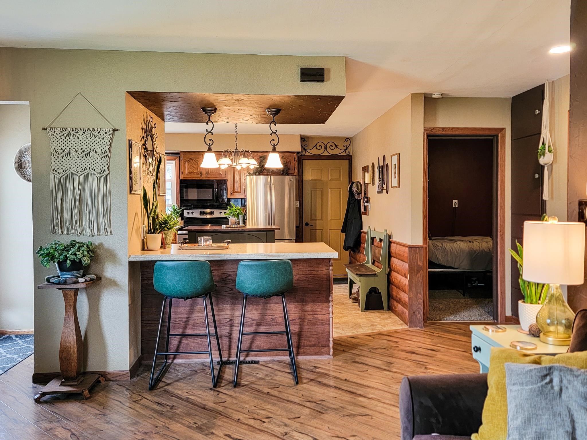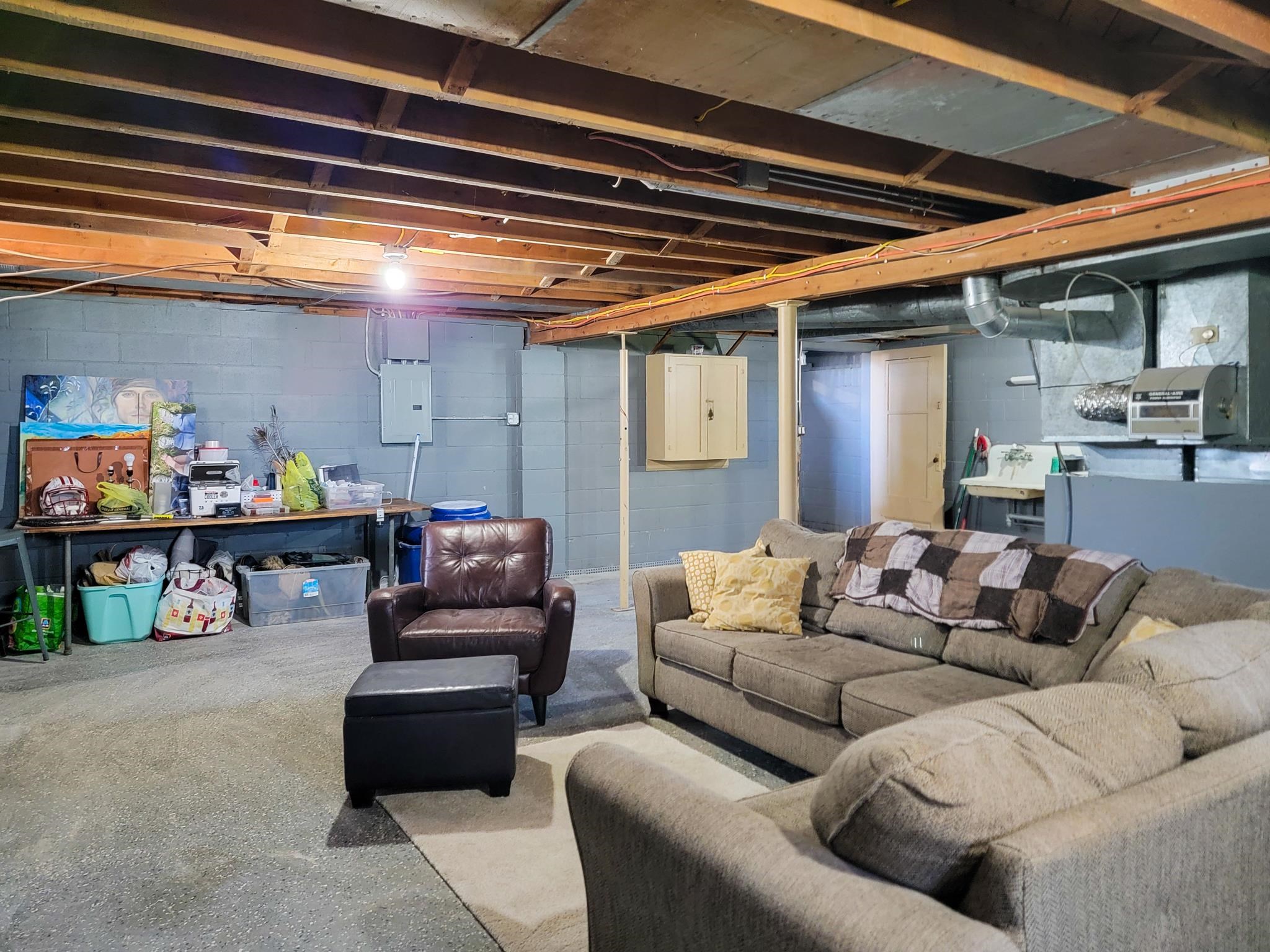 This updated 2-bedroom ranch home offers classic charm. The spacious living room with large windows provide an abundance of warm, natural light. The floor plan flows nicely into the dining area and kitchen with split bedrooms having sizable closet space. The unfinished basement gives more options for space and storage and has been plumbed for an additional bath. The large backyard with its beautifully stamped patio is ideal for relaxing or entertaining. This cozy home is conveniently located near downtown shops, schools, and recreation. Recent improvements include hot water heater, microwave, sump pump, transferable basement warranty (2025), washer/dryer, ceiling fans, outdoor lighting fixtures, and smart locks/handles (2024).