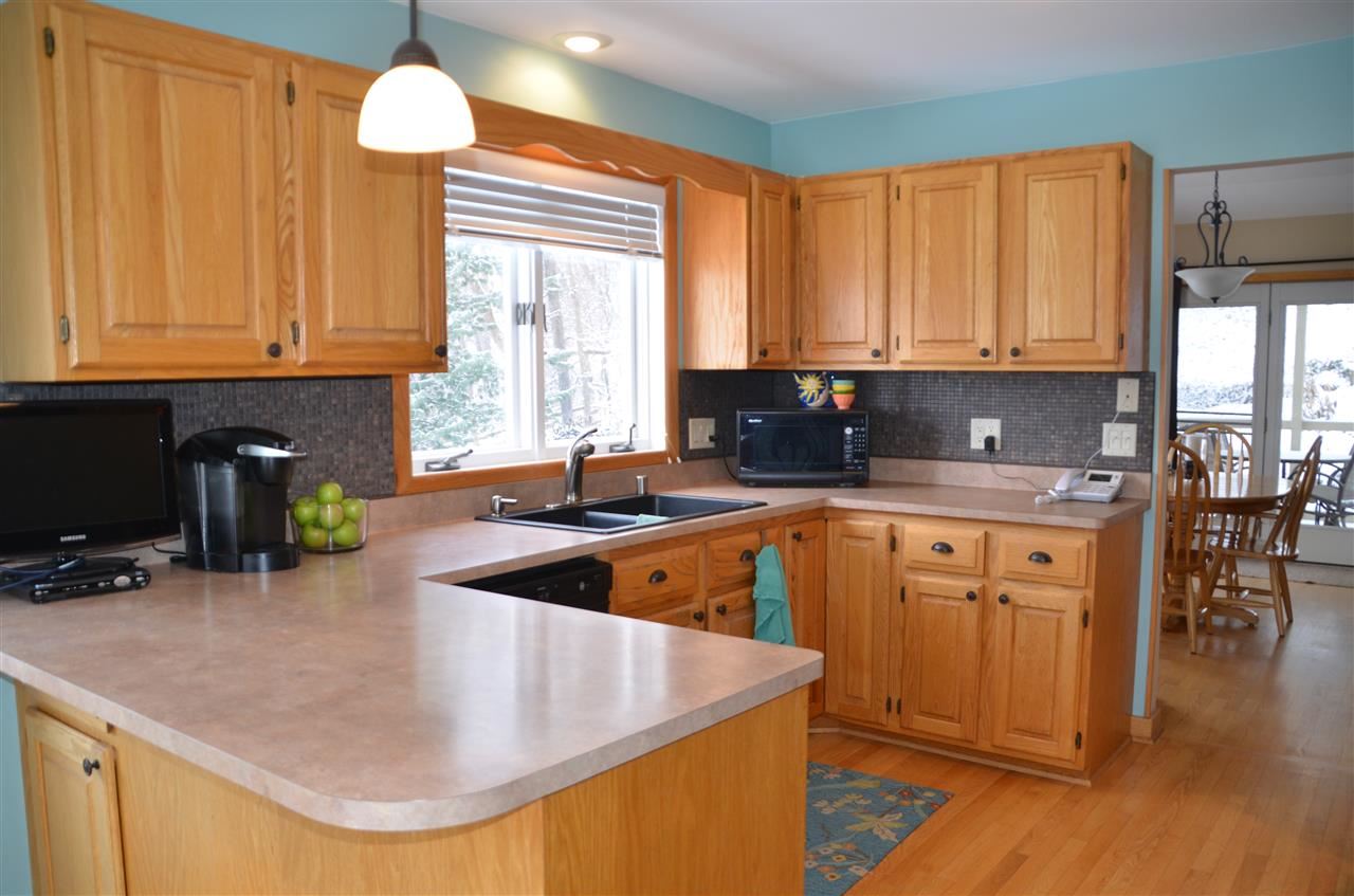 No showings til 3/8. Unique & wonderful multi level 3 BR w/private, gorgeous views of woods! Cul-de-sac backs onto wooded green space! Open plan w/bright, sunny rooms! Living room, dining room combo w/dramatic vaulted ceiling, corner FP w/great hardwood floors. Kitchen w/tile backsplash & dinette-lots of natural lite! Great screen porch tucked into lush landscape! Down a few steps the spacious master has terrific bath w/skylite, jetted tu, glass shower! 2 BRs & full bath on UL plus huge storage closets.