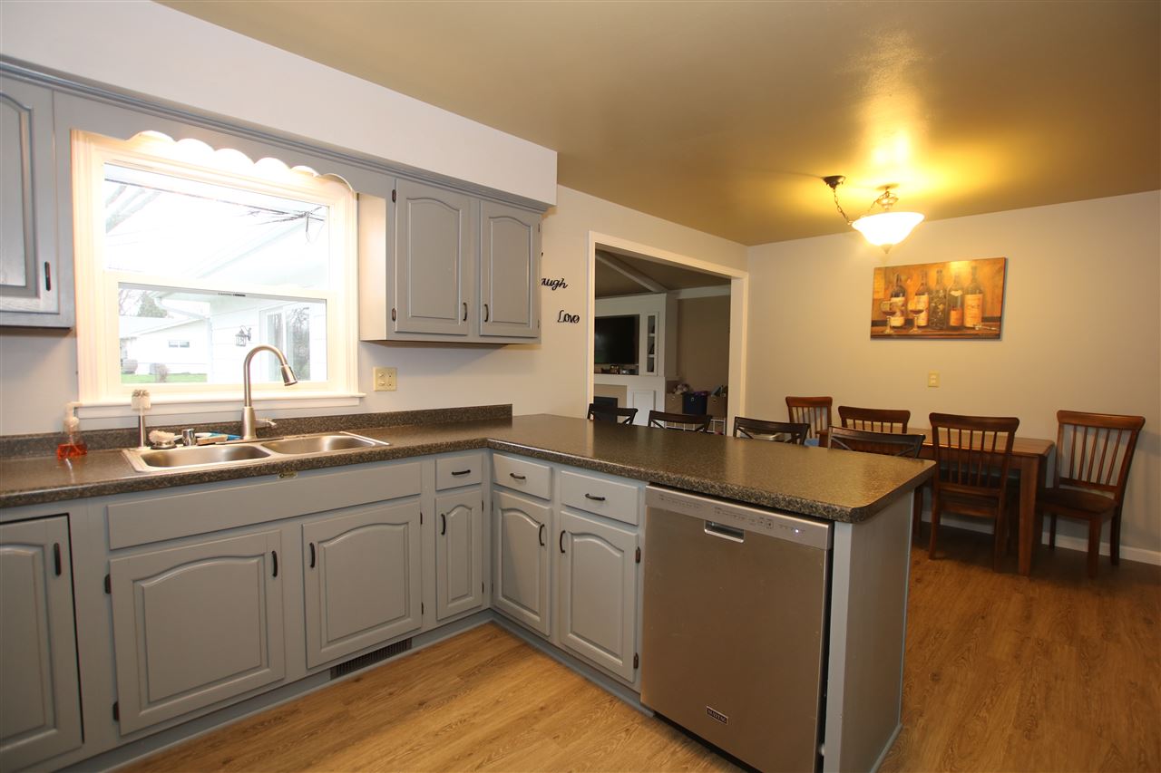 This 3 BR 2 BA 1 story on a .27 (85 x 140) city lot. Fenced backyard, covered bar/play area, weather all deck for all your outdoor entertaining. Updated Kitchen Cabinets/Flooring/Paint, appliances included, 23x17 great room w/ vaulted ceilings, sliding patio doors, fireplace/built-ins. Appx 1,700 sq ft of main level finished living space. Lower level finished area adds appx +480 sq ft of addtl rec room space, w/updated flooring and bar area. Great unfinished storage area for all your extras, 24 x 13 1.5 car attached garage. Other updates include roof, water heater, newer windows.