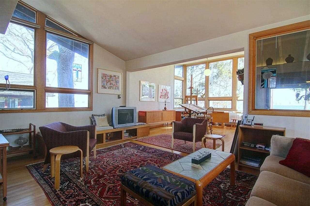 Mid-Century modern architecturally designed by Herb Fritz to maximize the panoramic views of Lake Monona and Madison's skyline. Totally unique home features numerous windows and spaces that will inspire the artist in all of us. Experience lake living with fishing and boating, on the bike path, close to beach/parks and minutes to downtown via bike or car. This years site for the spectacular Rhythm and Booms! 50 feet of lake frontage!