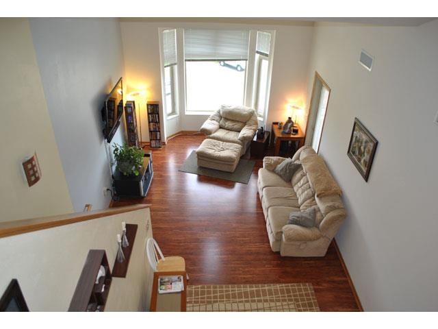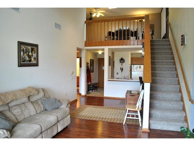 Rare vaulted condo with lofted family room/office. Very spacious interior. Main level has vaulted great room with newer laminate flooring and lots of natural light, large bedroom, full bath, private laundry with washer/dryer, and open kitchen with breakfast bar and all appliances. Open loft with skylights. Private balcony. Private storage locker and underground parking stall. Convenient west side location. Association has pool, community room, and exercise room. Call for a private showing!