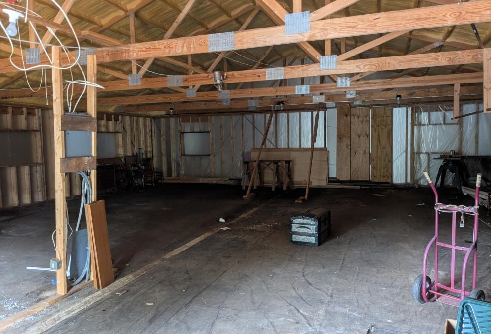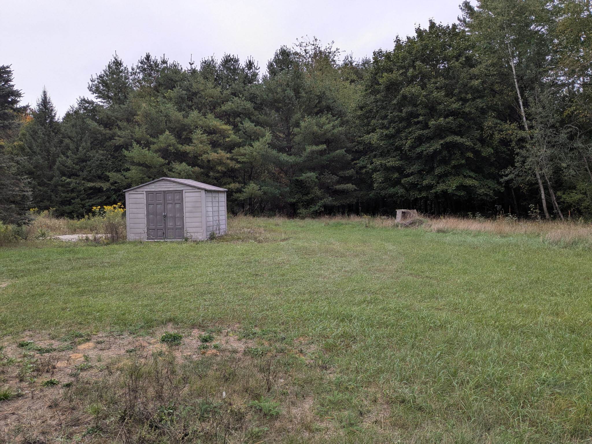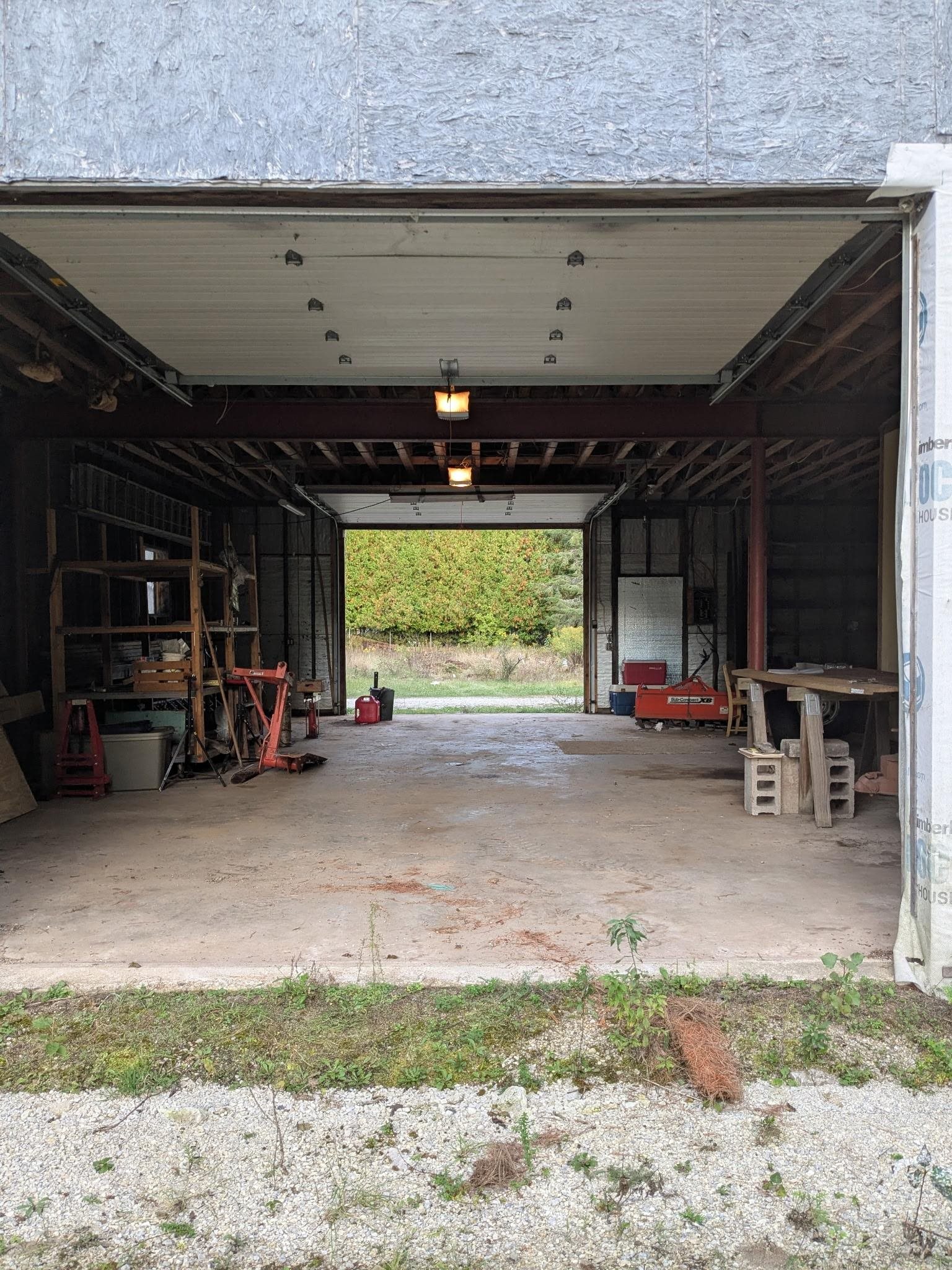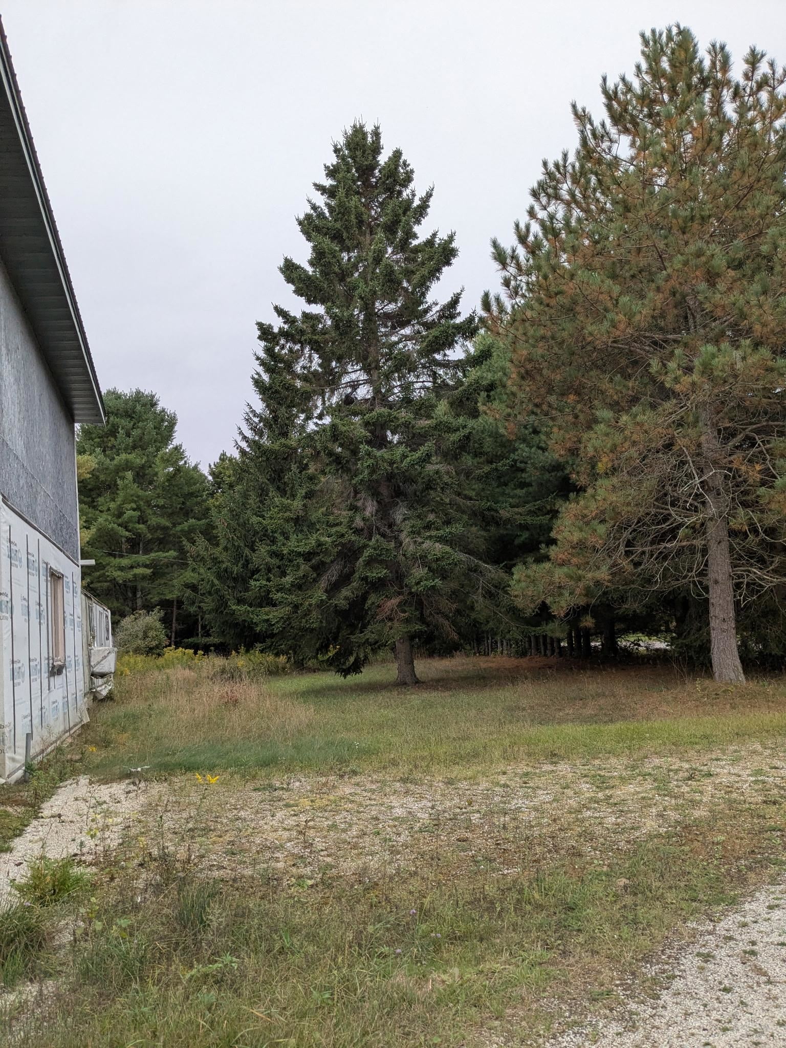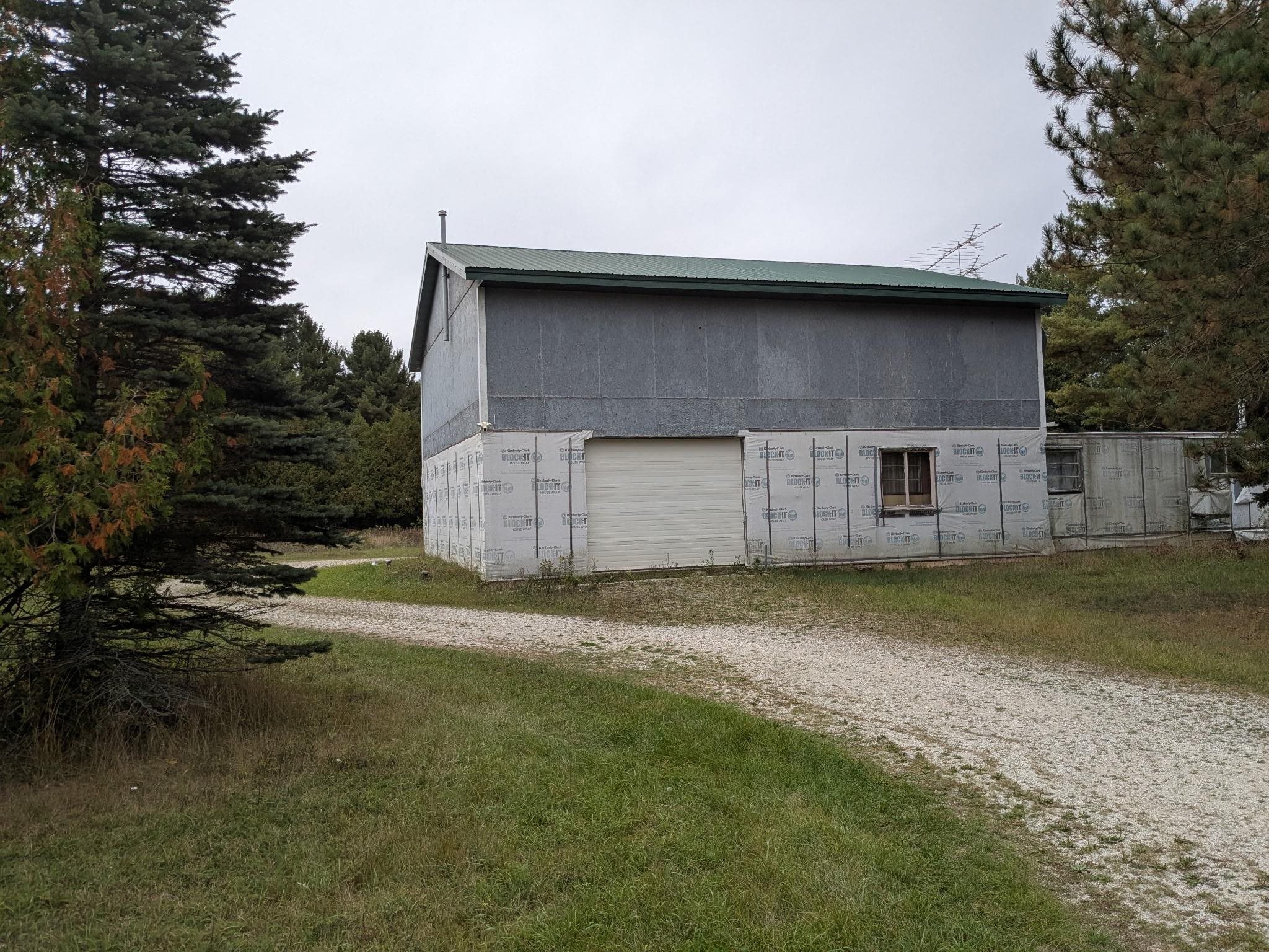 Rare opportunity in Door County – 5 mi east of Sturgeon Bay and 2 mi from Lake Michigan. This 1.3-acre corner lot features an unfinished two-story (44'x38') building for your dream home or retreat. Enjoy a spacious garden area, mature trees, and modern amenities: 2"x6" framing, insulated fireproof walls, steel roof with R10 insulation, drive-through garage doors, a 225-ft well with a 2-HP pump, propane tank, gravel driveway, underground electric, and dual 220-amp panels. Seller to provide credit for removal of the mobile home up to $10,000.