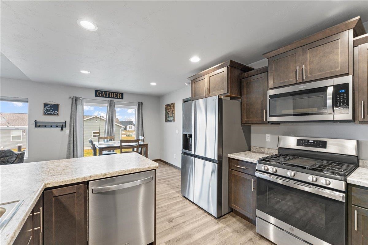 Like-new and move-in ready, this 3-bedroom, 2-bath split-bedroom ranch offers modern comfort and low-maintenance living. The fully applianced kitchen is complemented with a water softener, reverse osmosis system. The living room boasts custom window treatments. The unfinished lower level features an egress window for a future bedroom and it is stubbed for a third bath—ideal for expanding your living space. The bar and TV mount are waiting your entertainment needs. Outside you will enjoy a new storm door on the front, in the back concrete patio area, nicely landscaped yard with a fire pit and storage shed, perfect for relaxing or hosting. Showings start Friday April 10th. All offers will be presented and reviewed on Monday April 13th.