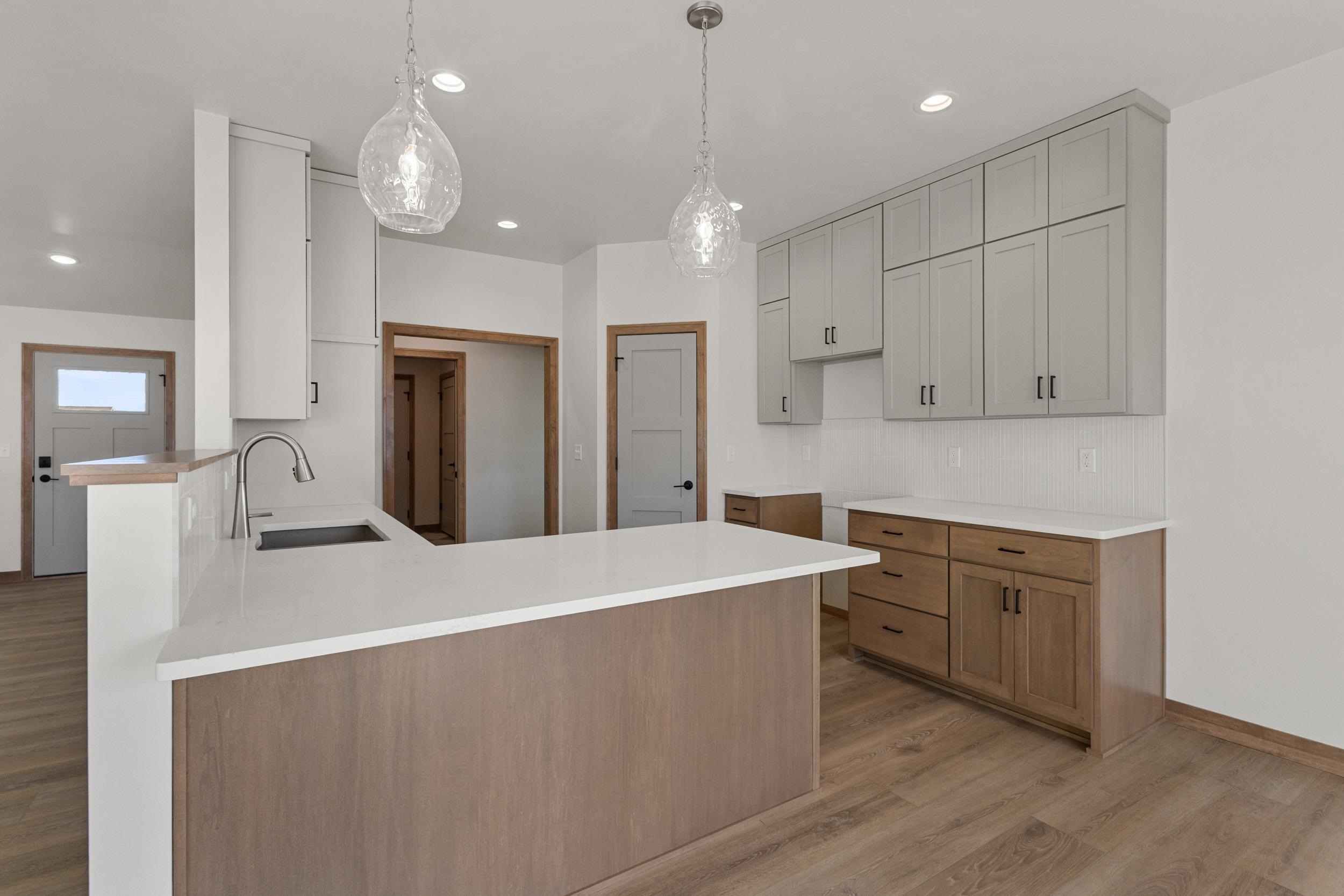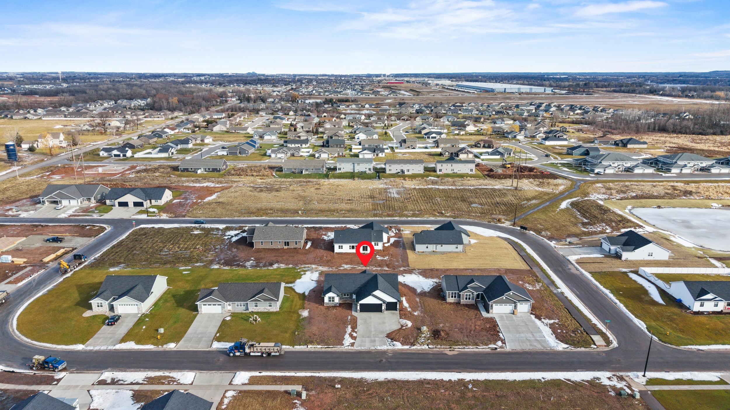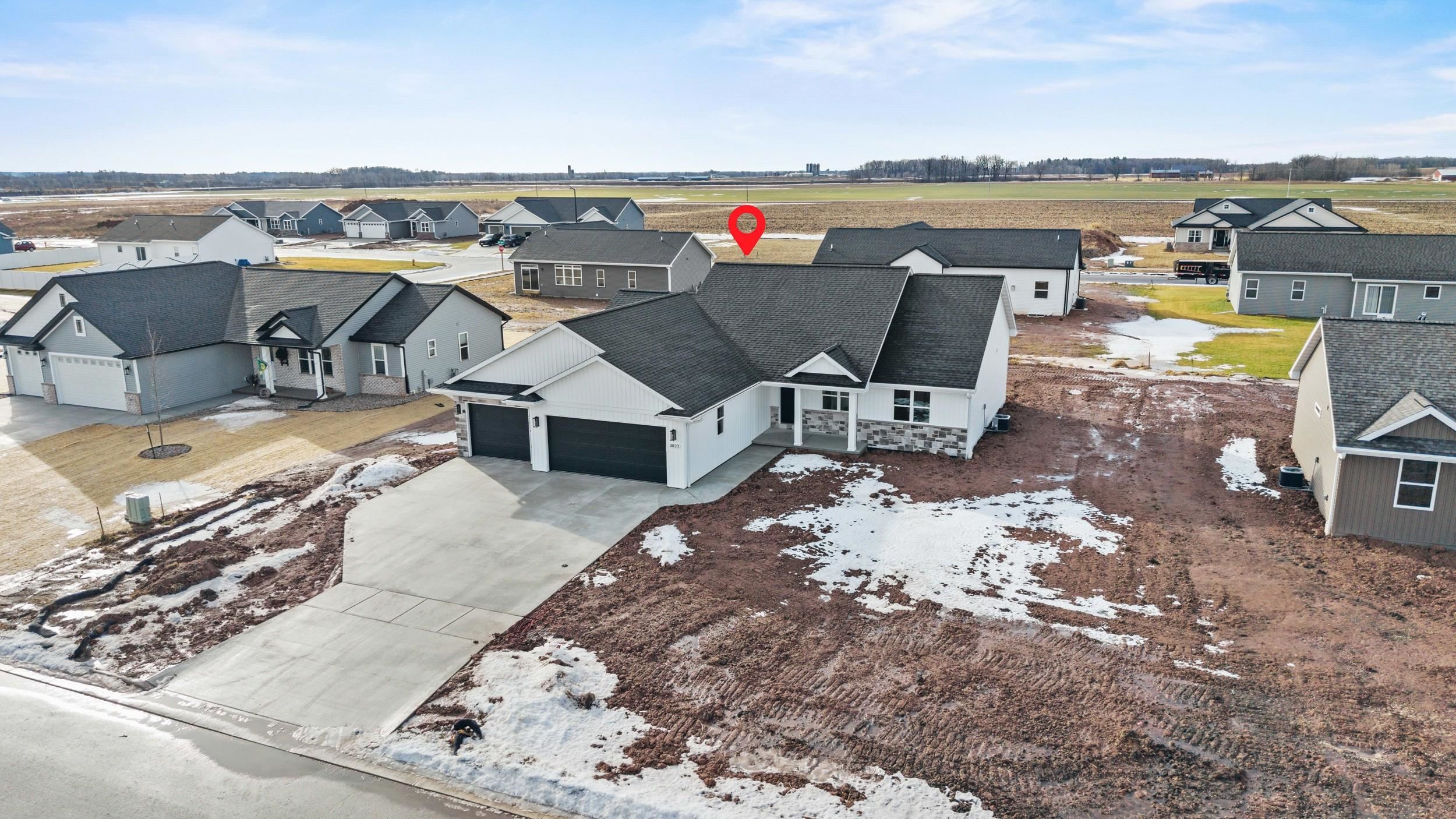 BUILT BY MEACHAM DEVELOPMENT, INC.-A FOCUS ON ENERGY CERTIFIED HOME. Beautiful, open concept three bed, two bath design located in the Town of Lawrence. The kitchen boasts gorgeous, custom built maple cabinets in a dual finish of Treasure stained lowers & High Sierra painted uppers. Carrara Marmi quartz countertops & Gems Bianco Kit Kat tile backsplash complete the look. Kitchen & dining room open into the living room where you can relax next to a HHT 50" Simplifire Allusion Platinum Linear Electric fireplace surrounded by Ardesia Kwik Stack stone. Lower level is stubbed for a bathroom and has an egress window for future expansion. The Town of Lawrence plans to develop Lot 9 further into a small park space with walking trails to serve the neighborhood.