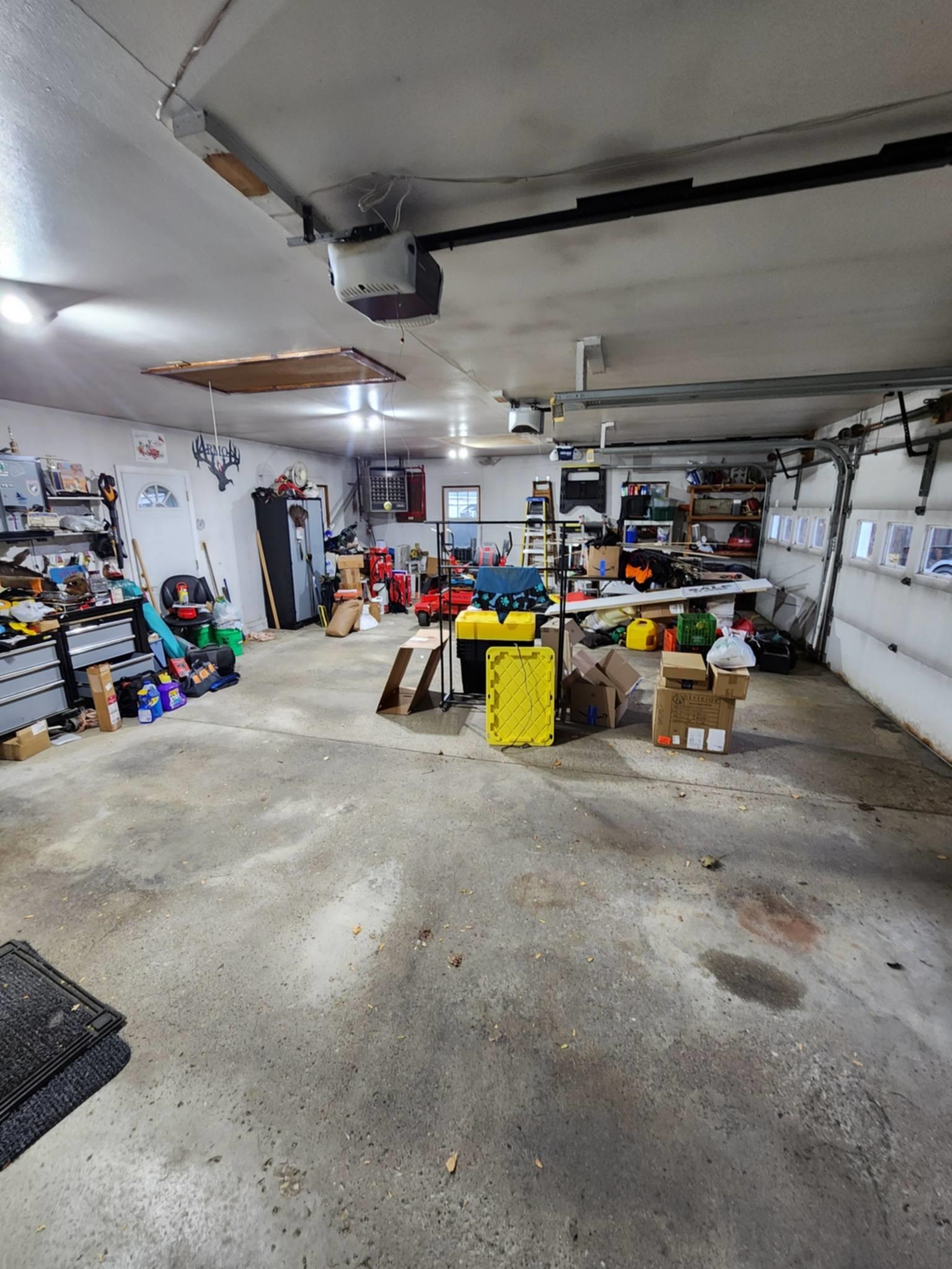 Stove, refrigerator, microwave, washer, dryer, entertainment center in basement, GDOs, garbage & recycle containers