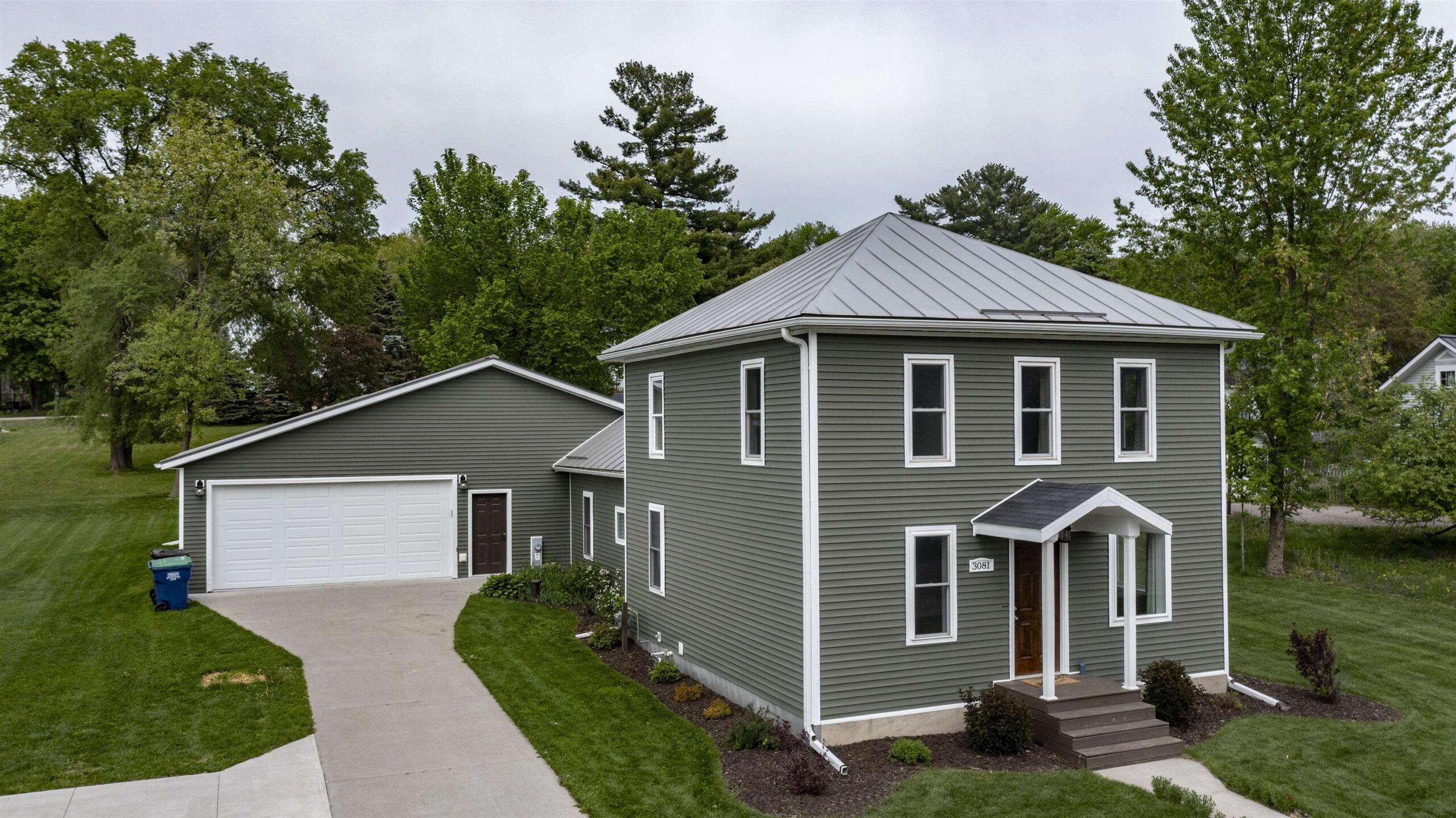 This stunning 3-bedroom, 2-bath home combines modern updates with thoughtful design, offering over 2,000 sq ft of living space on a beautifully landscaped double lot. The open-concept kitchen and living room create a bright, airy feel, perfect for entertaining or relaxing at home. The upper-level primary suite serves as a private retreat, complete with a luxurious soaking tub, walk-in shower, and expansive closet. Everyday convenience shines with a large laundry room and spacious mudroom featuring built-in lockers. Step outside to enjoy a covered patio ideal for gatherings or quiet evenings. The oversized 2-car garage provides plenty of room for vehicles, tools, or hobbies. Move-in ready and fully remodeled, this home blends style, comfort, and function in every detail.
