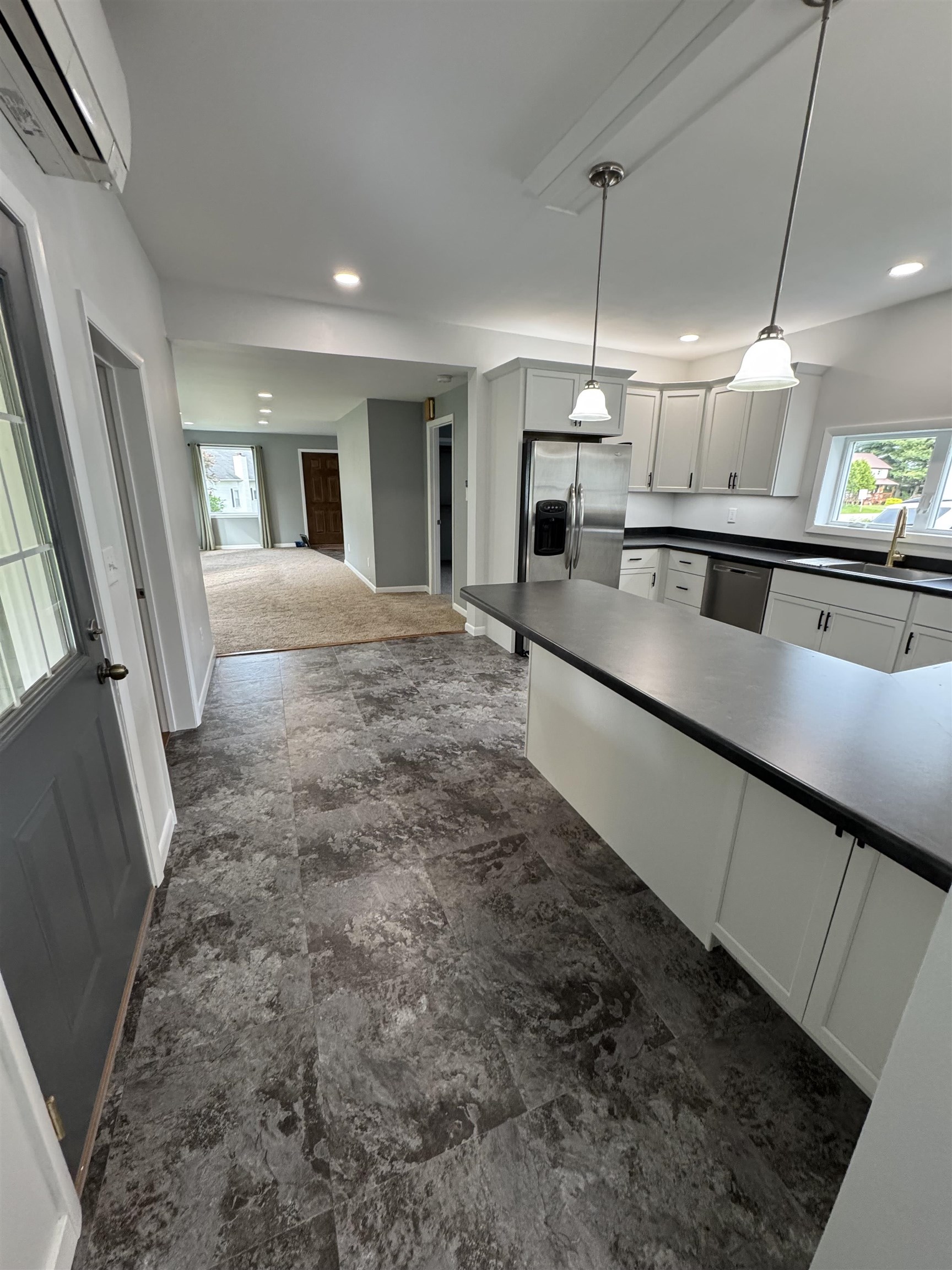 This stunning 3-bedroom, 2-bath home combines modern updates with thoughtful design, offering over 2,000 sq ft of living space on a beautifully landscaped double lot. The open-concept kitchen and living room create a bright, airy feel, perfect for entertaining or relaxing at home. The upper-level primary suite serves as a private retreat, complete with a luxurious soaking tub, walk-in shower, and expansive closet. Everyday convenience shines with a large laundry room and spacious mudroom featuring built-in lockers. Step outside to enjoy a covered patio ideal for gatherings or quiet evenings. The oversized 2-car garage provides plenty of room for vehicles, tools, or hobbies. Move-in ready and fully remodeled, this home blends style, comfort, and function in every detail.