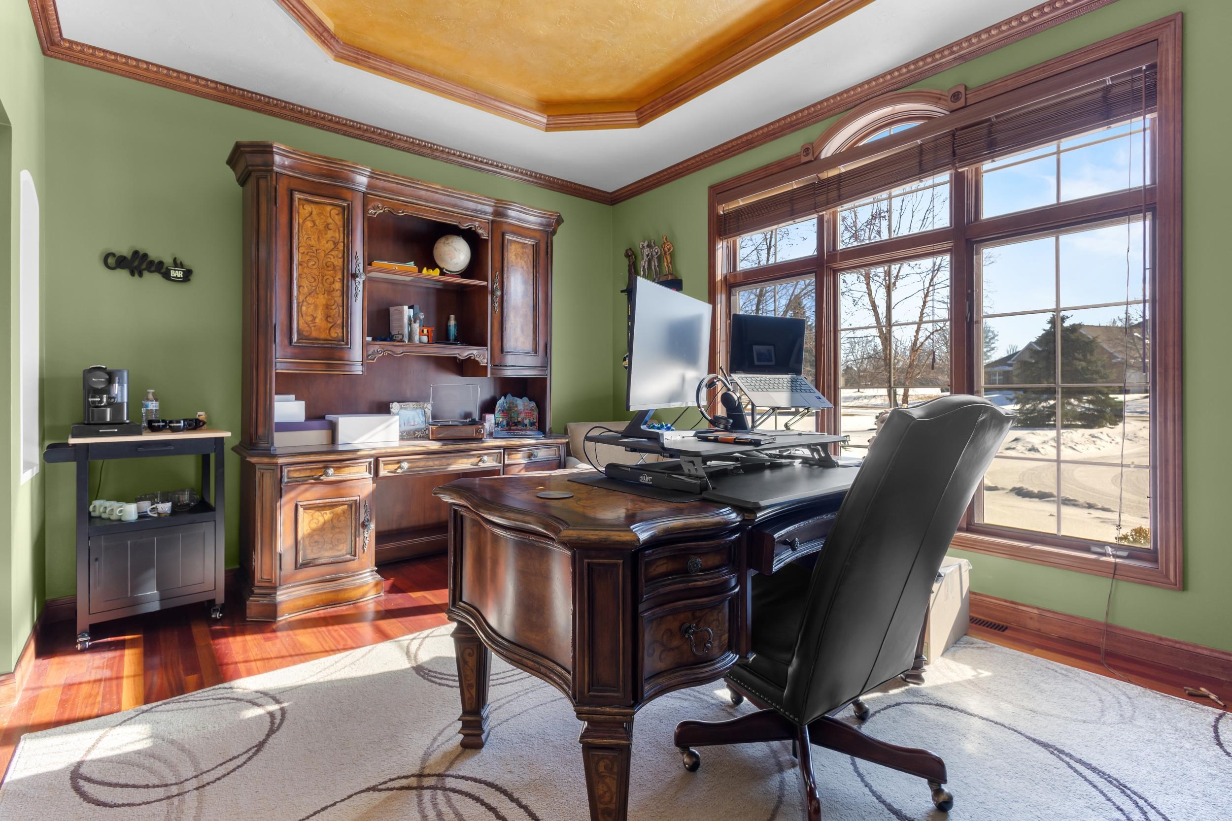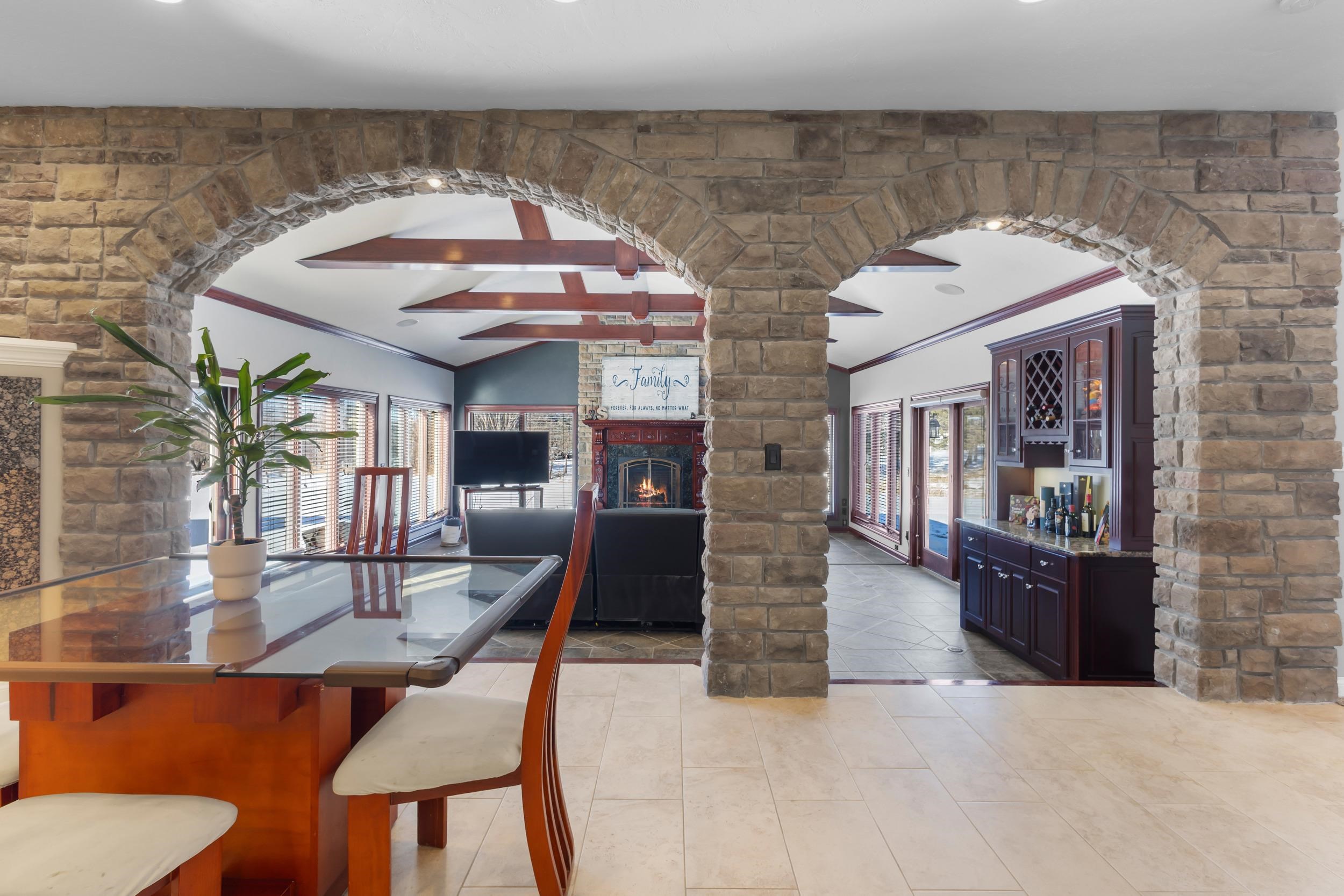 Seller relocating & hates to leave this custom stunner! This beauty features a brand new roof, soaring ceilings, 6 fp's, & a great room with a wall of built-ins. Enjoy the gourmet kitchen with new tile floors, a walk-in pantry, an island, top-of-the-line appliances, & granite countertops. Stone accents, lots of windows, & a beamed ceiling are showcased in the living room. Dreamy primary suite with a large sitting area in front of the fp. spa-like bath & walk-in closet. Spacious bdrms with baths, 1st floor office, laundry, & formal dining. The LL has a daylight window, gas fp in rec room, flex room, & full bath with stairs to the garage, private guest quarters above! All set on 1.80 acre landscaped lot with large outdoor living area, with built in grill, cook station & FP. Perfect retreat!