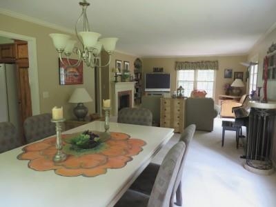 Beautifully maintained home in a private, scenic & wooded subdivision close to town. 2 BR, 1-3/4 BA condo features a living/dining room with gas/wood FP, built-in bookcase & French doors leading to secluded brick patio surrounded w/lovely landscaping. Large foyer with 2 double closets & spacious bedrooms with tons of closet space. Master bedroom has full bath. Full basement for future finishing. Condo fee includes well/septic, lawn, snow & cable. River access includes a pier for use by association members.