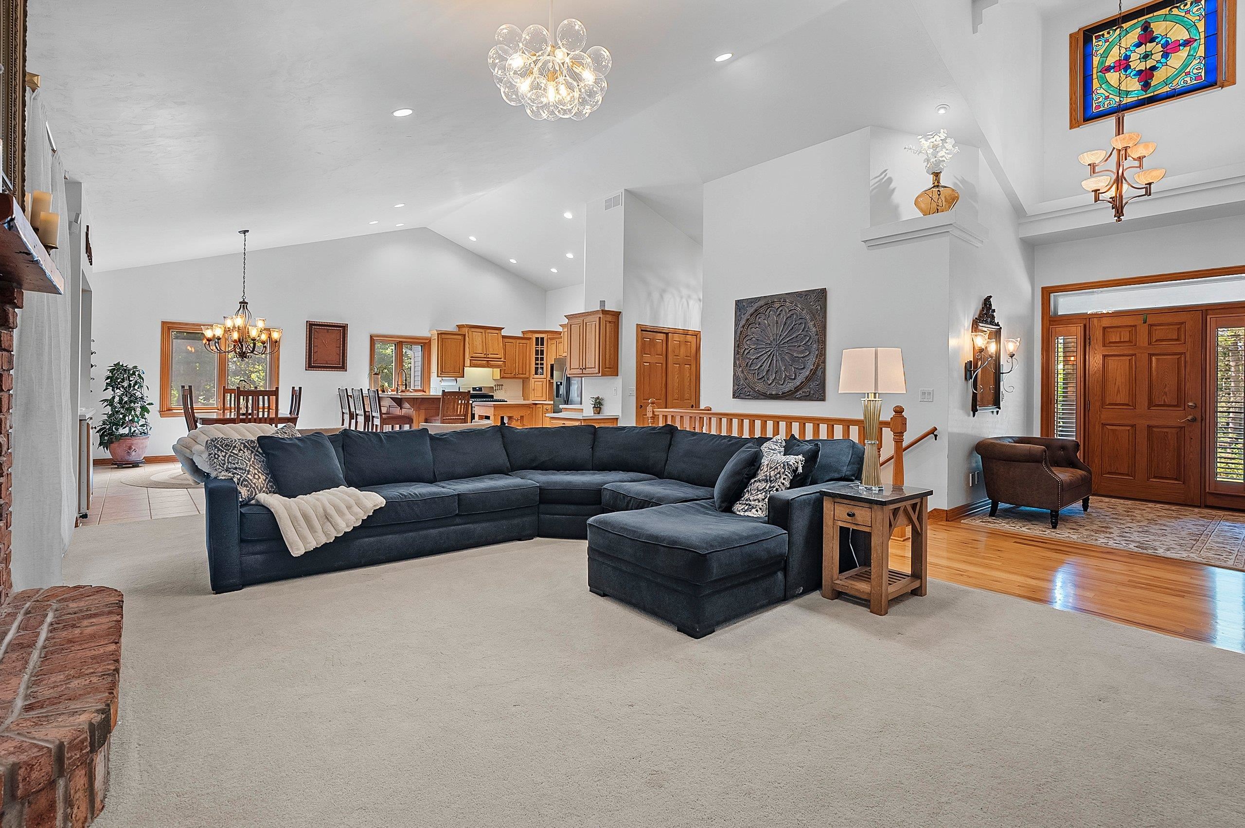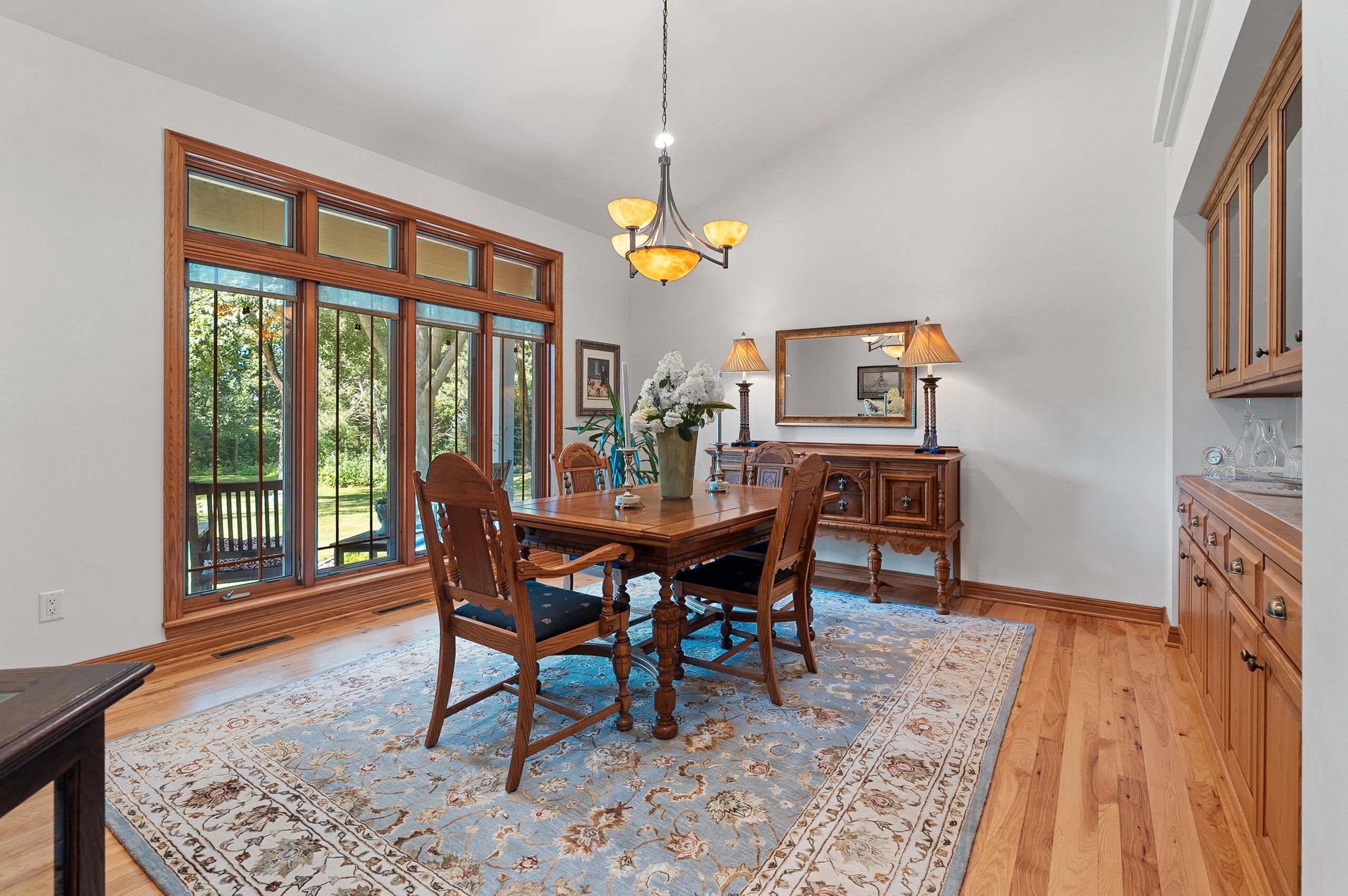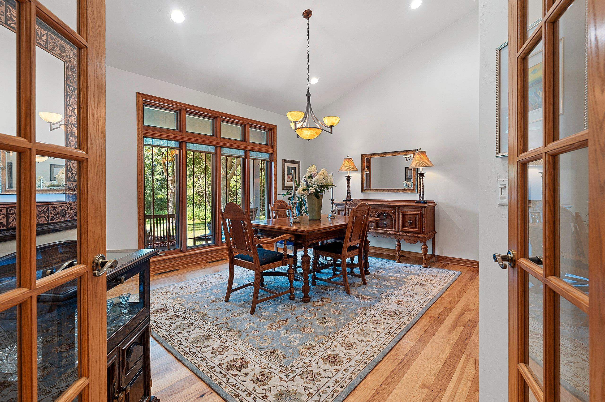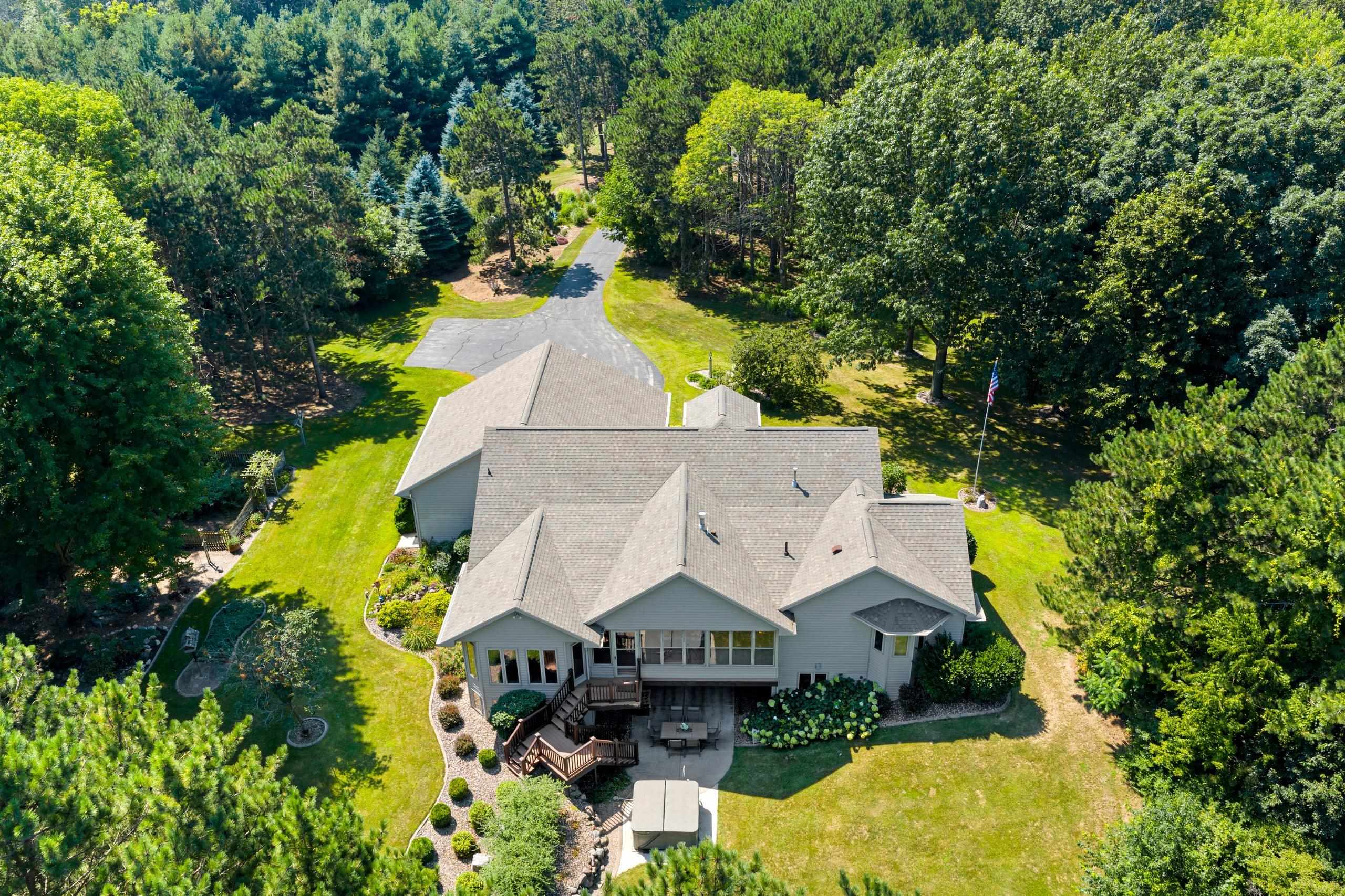 Meticulously maintained ranch tucked away on a secluded, heavily wooded 5-acre lot in the West De Pere School District. The residence offers the perfect balance of comfort, elegance & privacy. The kitchen & dining area flow into a spacious LR centered around a cozy gas FP. Enjoy summer days on the back patio or unwind on the screened-in porch while taking in the peaceful wooded views. The 1st flr primary suite boasts a tray clng, tile shower & generous wk-in closet. Adt’l mn-level highlights include formal dining rm, inviting den, half bath & convenient 1st-flr lndry. Finished LL provides 2 adt’l bdrms, full bath, large rec rm, plenty of storage & wkout to the scenic backyard. 30x40 detached garage too! Showings start 10/6/25. Offers to be presented as submitted; 48hr binding acceptance.
