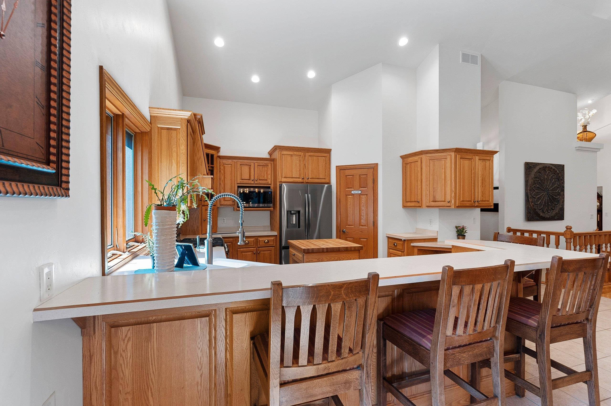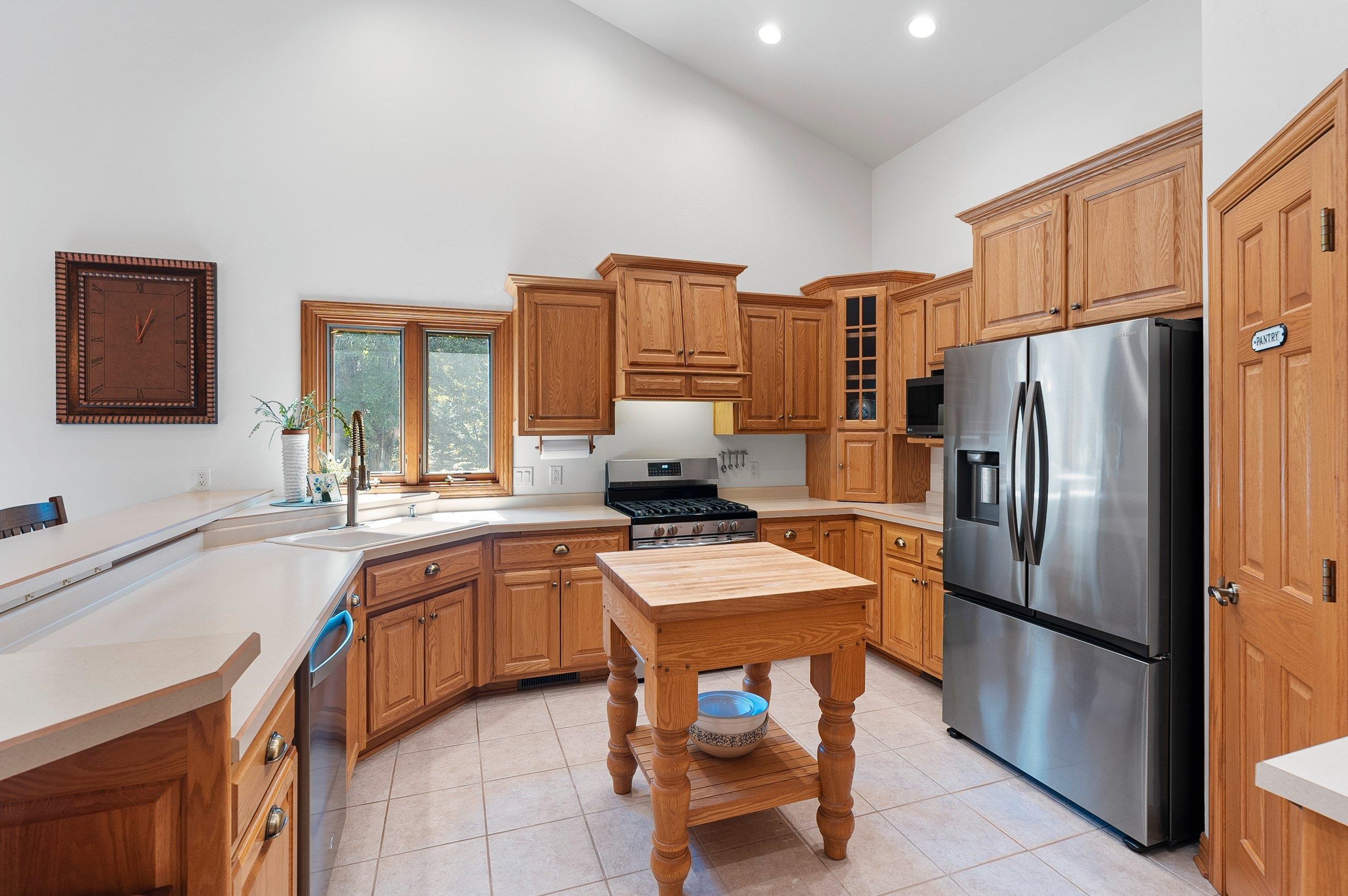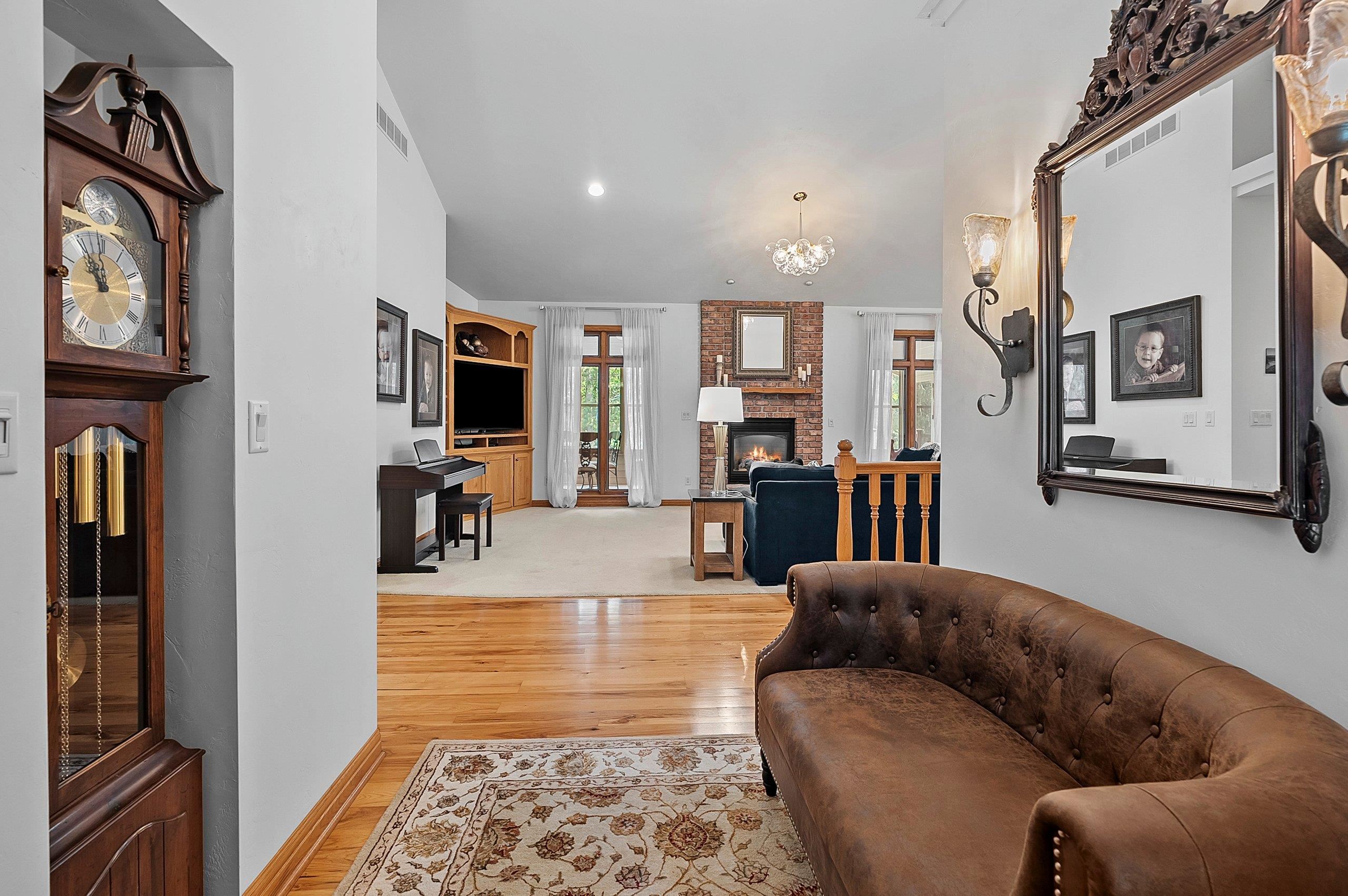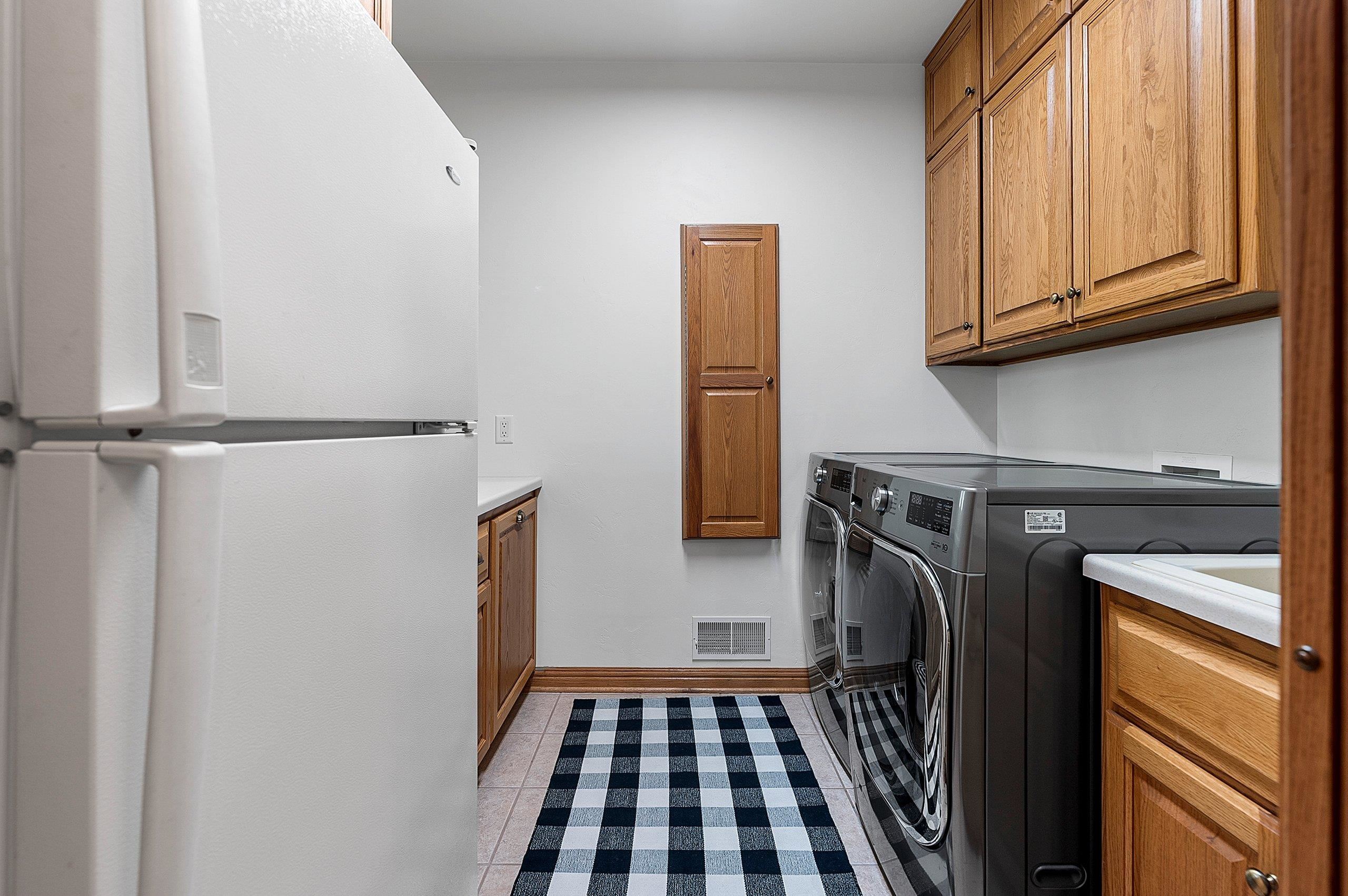 stove/oven, 2 refrigerators (kit & lndry rm), metal wall hanging over stairway, stained glass entry door, grandfather clock, 2 gun safes in basement.