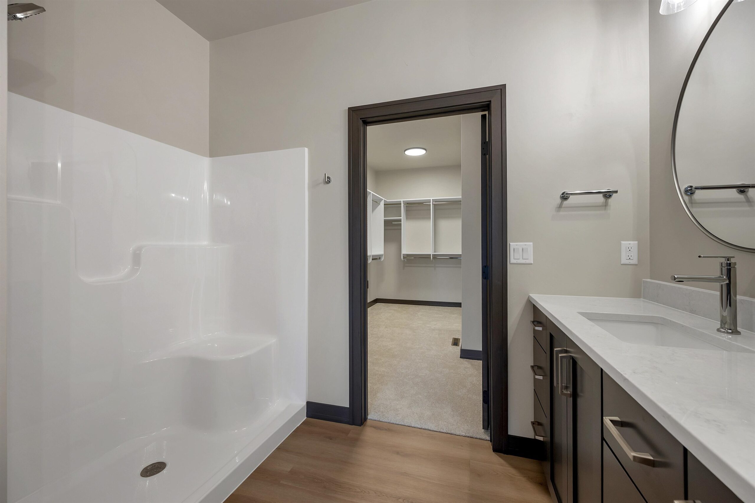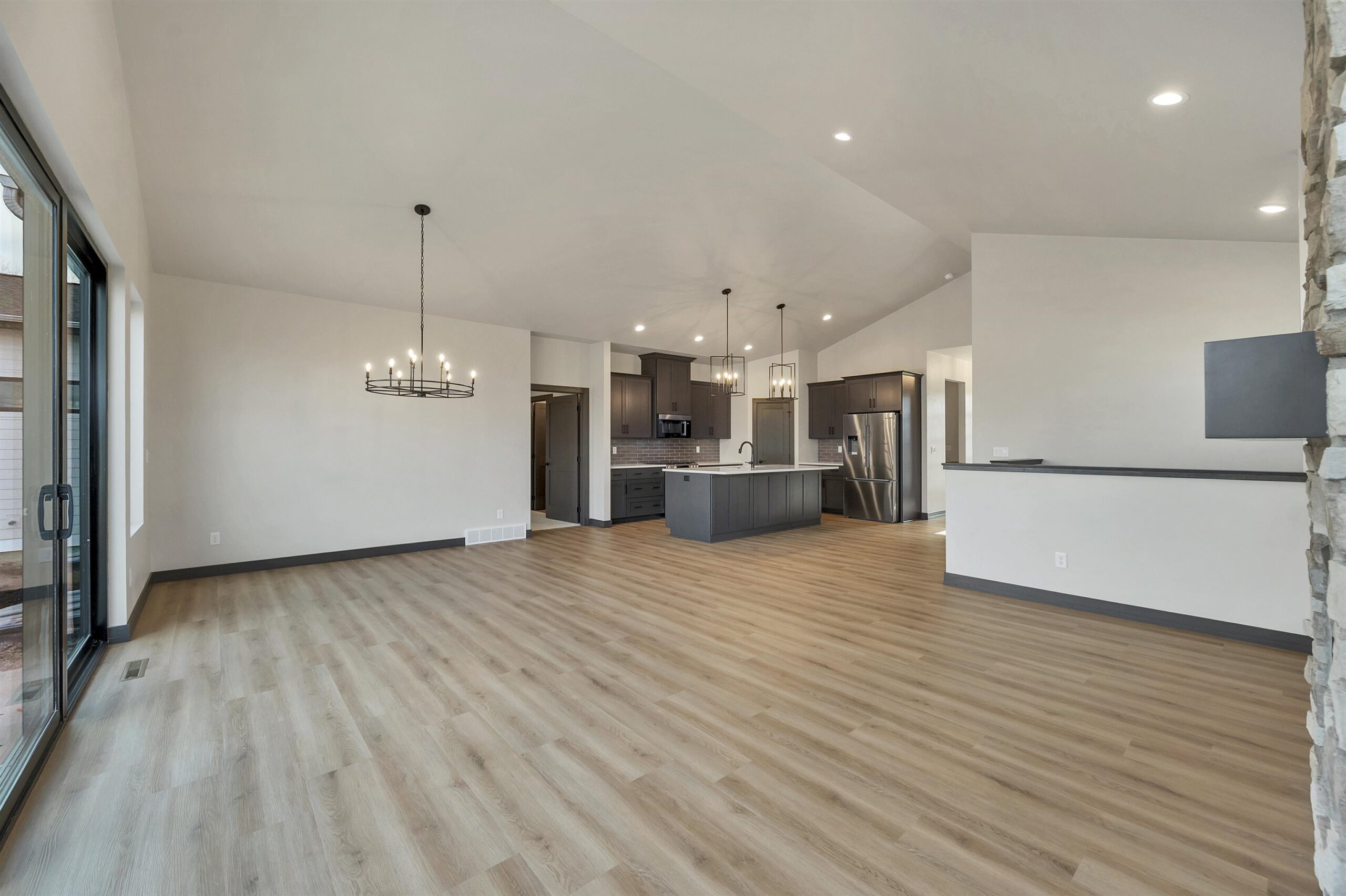 This new construction contemporary 2 bed, 2 bath ranch home spans 1,652 sq ft and offers a perfect blend of modern amenities and community living. The home features a convenient mudroom, a kitchen complete with a large island, pantry and ample storage. Step outside to enjoy the 20X12 patio. The primary bedroom features a tray ceiling, en-suite bathroom with shower & walk in closet. As part of the Aldon Station HOA Community, residents enjoy the luxury of snow removal and lawn care services. The community also boasts an array of amenities, a clubhouse, an outdoor pool, a kayak launch and recently constructed pedestrian bridge that provides easy access to Ashwaubomay Park. Experience the perfect blend of comfort, convenience and lifestyle in this beautiful home. Zero Lot line.