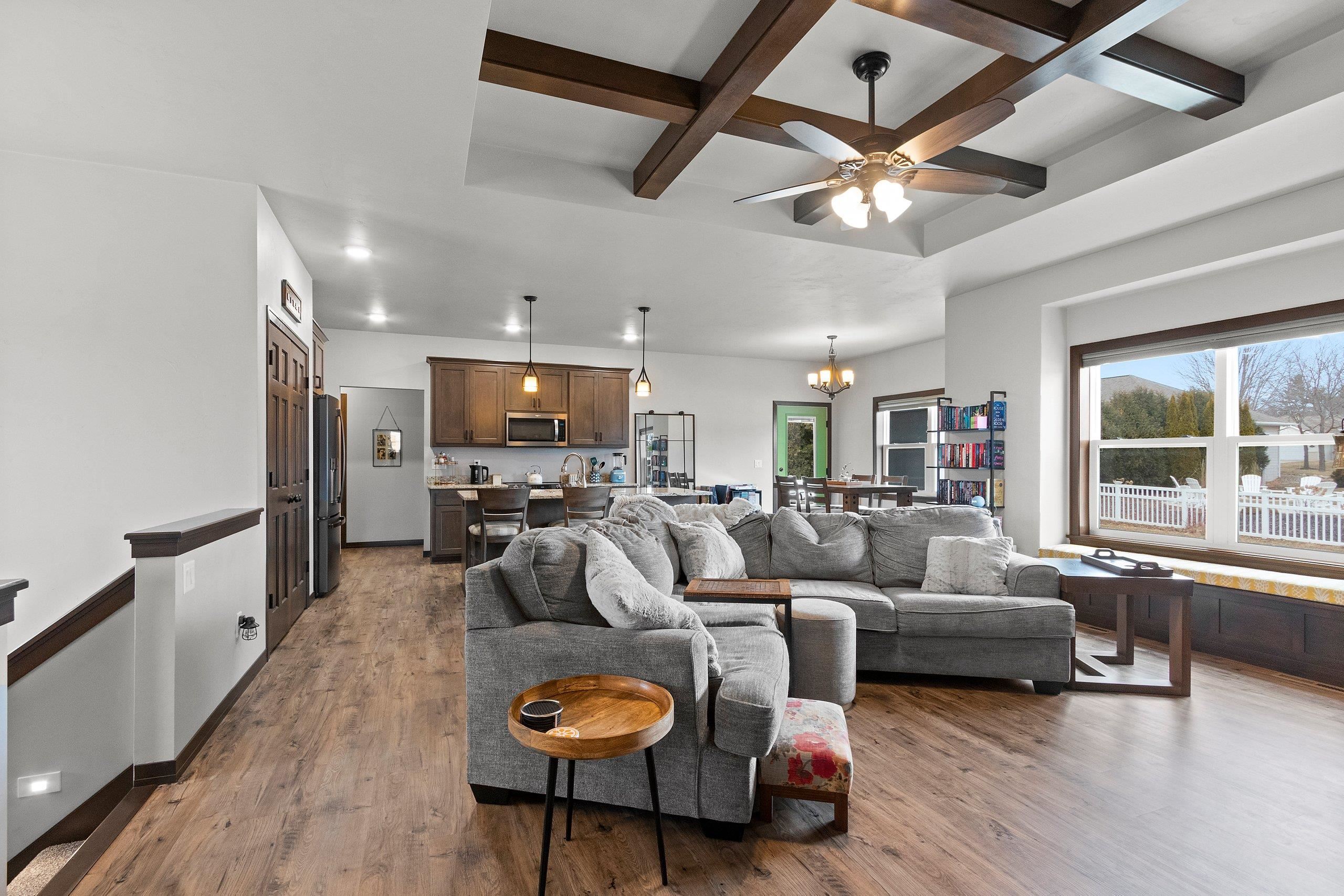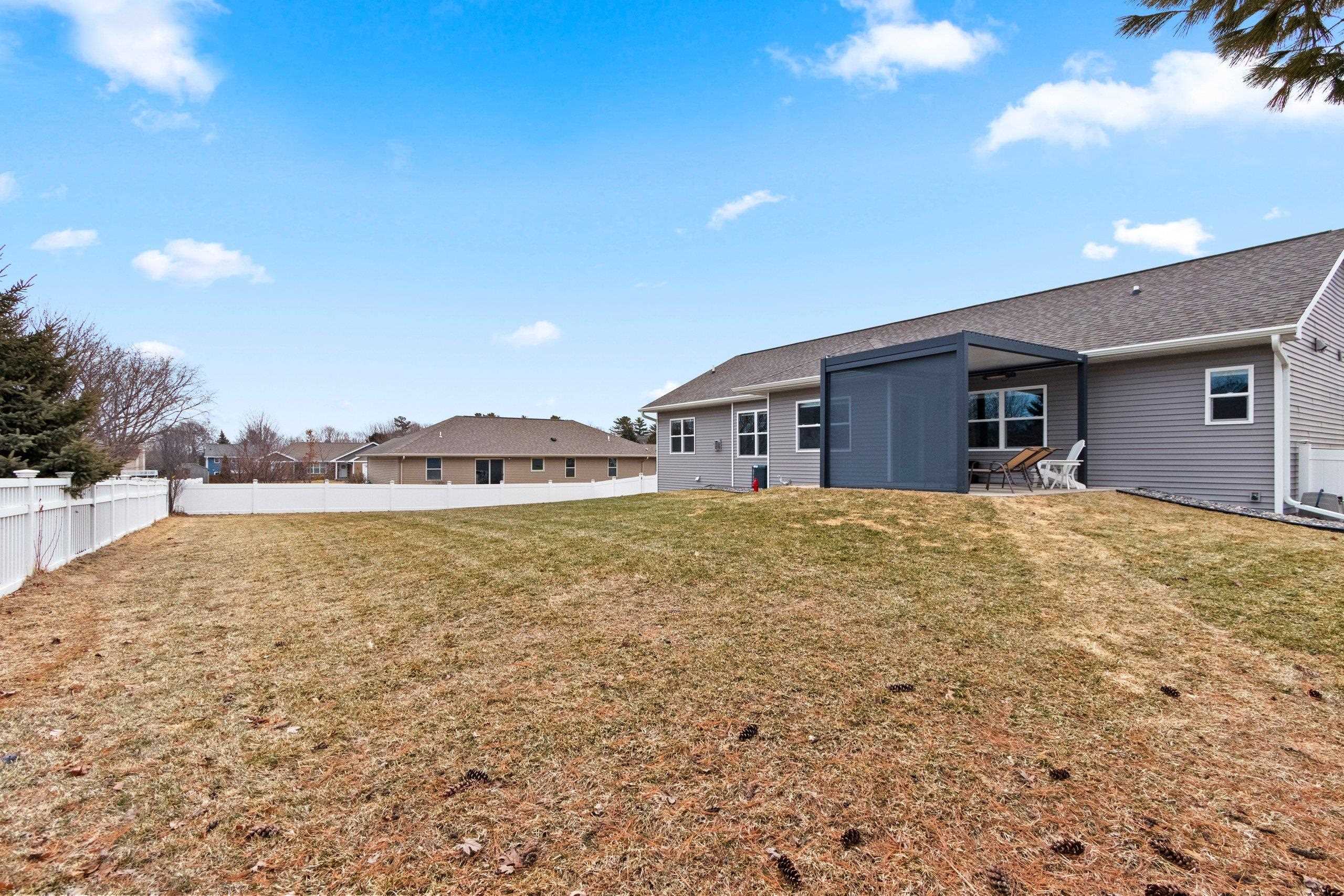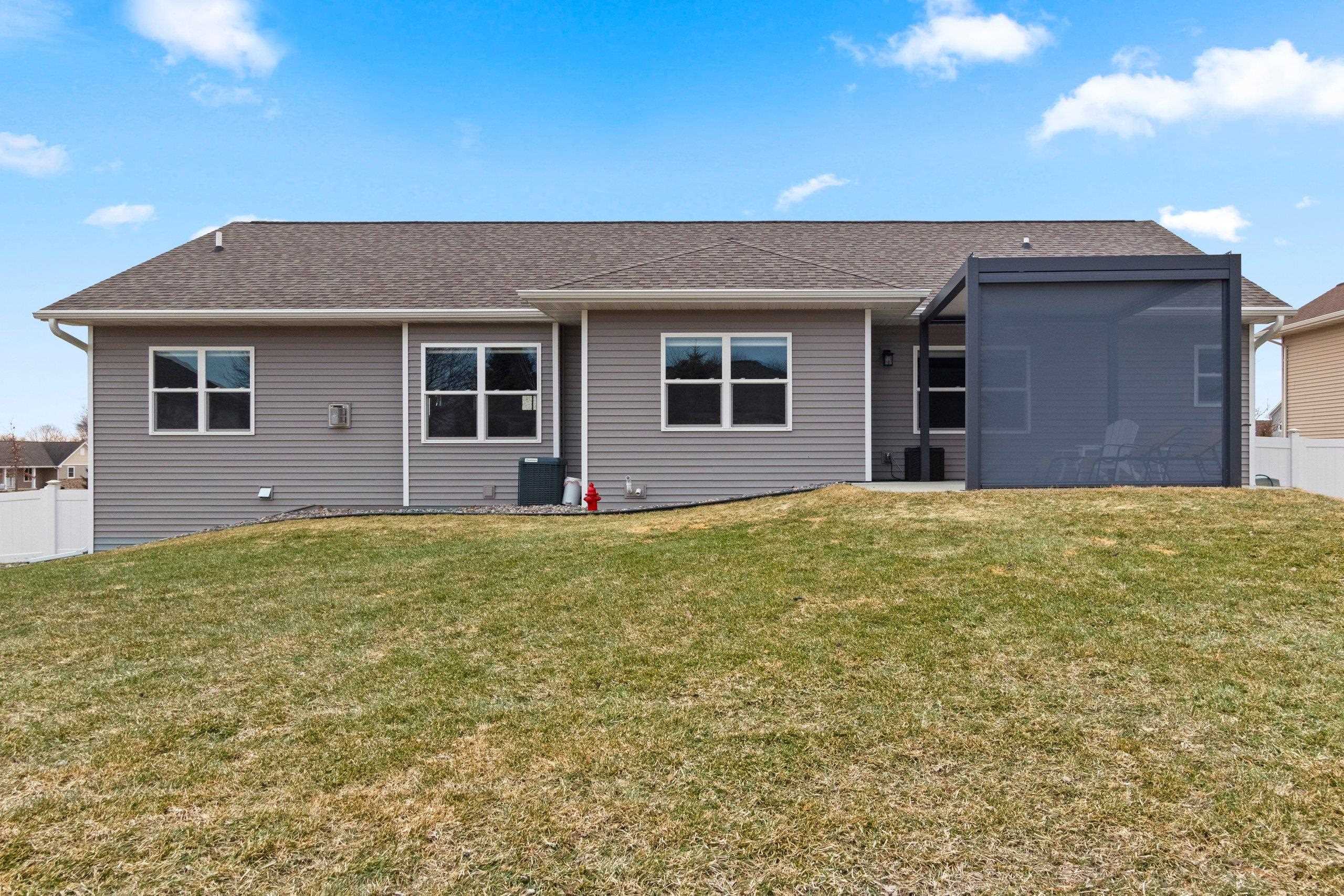 You will absolutely love this newer quality built Focus On Energy 3 Bedroom 2 Bath Ranch home in Howard. Features include an open concept split bedroom design, Large great room with Coffered ceiling, Gas Fireplace and wood window seat with storage. Large kitchen with all appliances, island, Custom cabinets, large pantry and granite countertops. Bump out dining room, 1st floor laundry with Washer and dryer included, sink and bench seat with coat hooks. Spacious Primary bedroom with trey ceiling, walk in closet and Primary bath with walk in tile shower. Large no step patio with privacy pergola, Lower level includes an egress window, Passive Radon System and stubbed for bathroom. Large 3 stall garage, fenced yard and newly installed gutter guards.