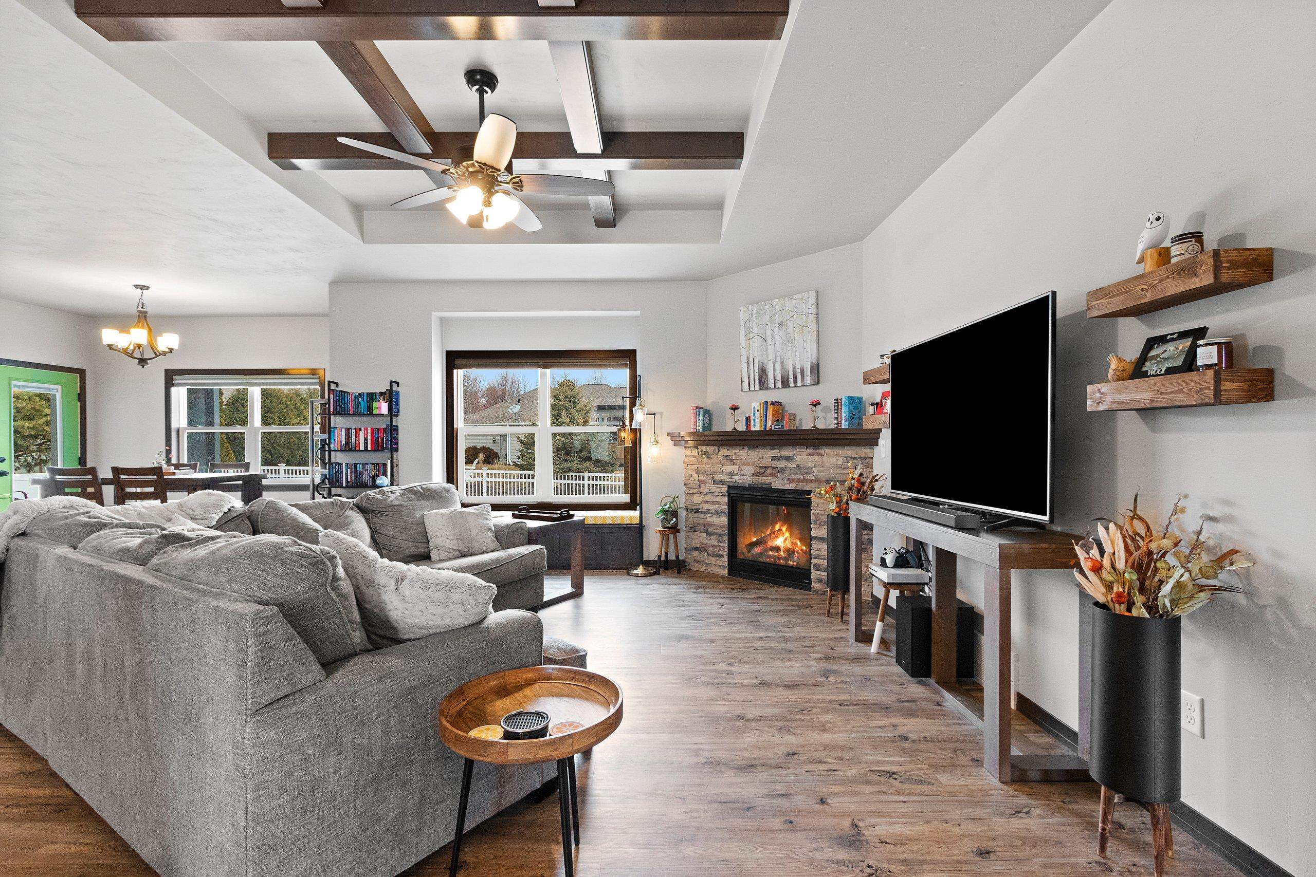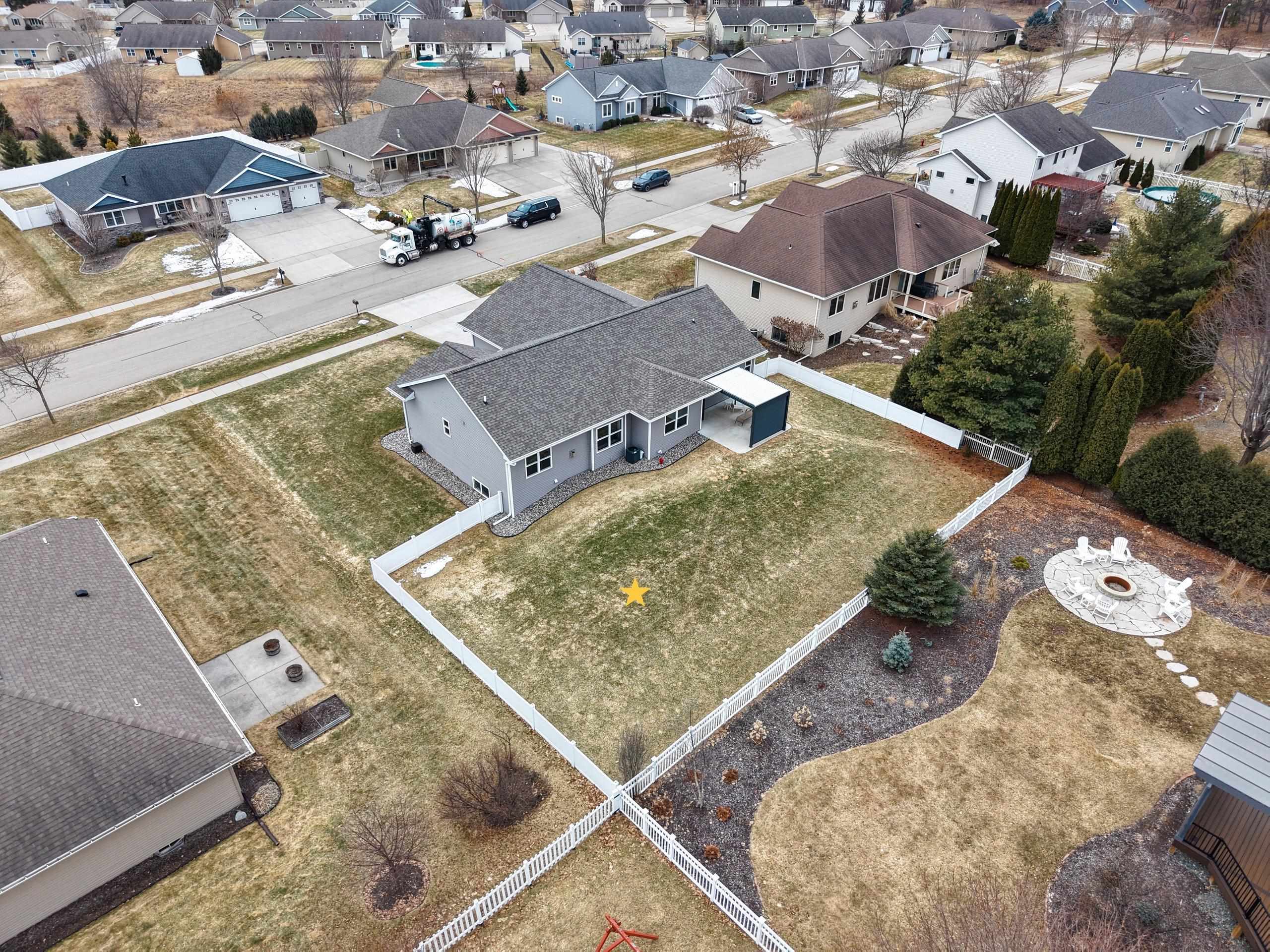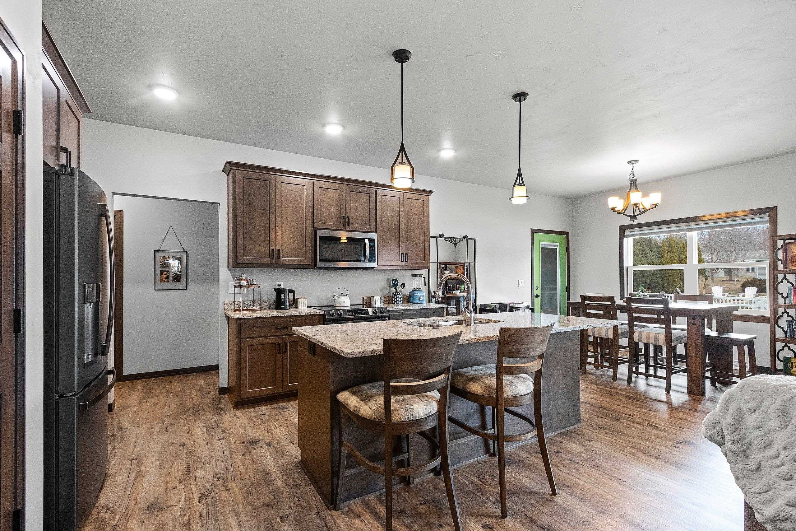 You will absolutely love this newer quality built Focus On Energy 3 Bedroom 2 Bath Ranch home in Howard. Features include an open concept split bedroom design, Large great room with Coffered ceiling, Gas Fireplace and wood window seat with storage. Large kitchen with all appliances, island, Custom cabinets, large pantry and granite countertops. Bump out dining room, 1st floor laundry with Washer and dryer included, sink and bench seat with coat hooks. Spacious Primary bedroom with trey ceiling, walk in closet and Primary bath with walk in tile shower. Large no step patio with privacy pergola, Lower level includes an egress window, Passive Radon System and stubbed for bathroom. Large 3 stall garage, fenced yard and newly installed gutter guards.