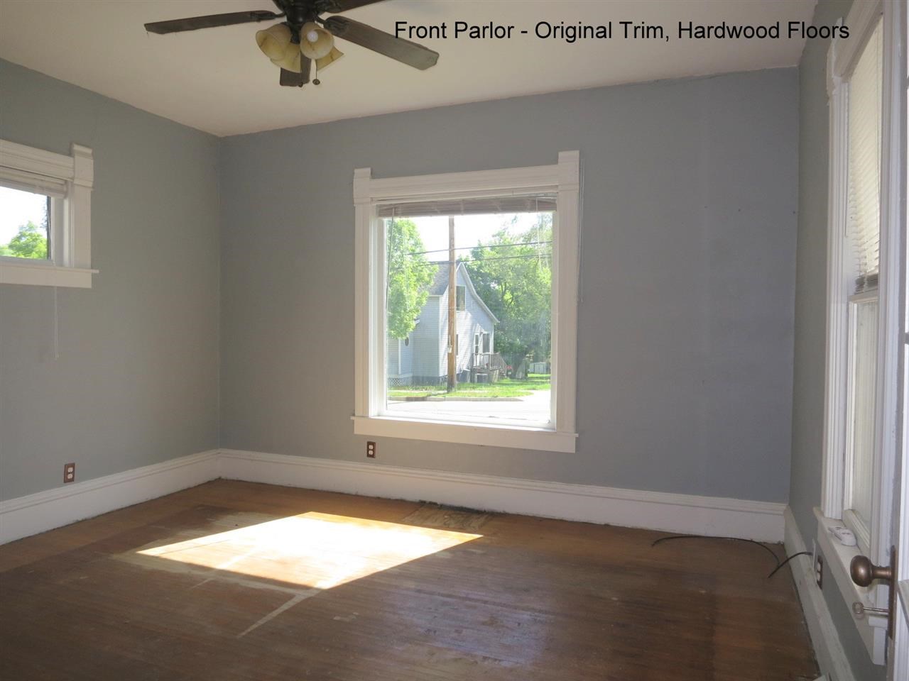 Original farmhouse from 1900! A piece of history is waiting for you to finish into the beauty of yesterday. This home needs some love to complete the restoration. Partially remodeled - updated plumbing, heating and central A/C, electrical, some new paint. Original items include large wood trim, french parlor doors with skeleton key, hardwood floors in many rooms. Stone foundation. Back deck, completely fenced in yard, single car garage w/extra work bench space. It's worth looking at! Priced to sell AS IS!
