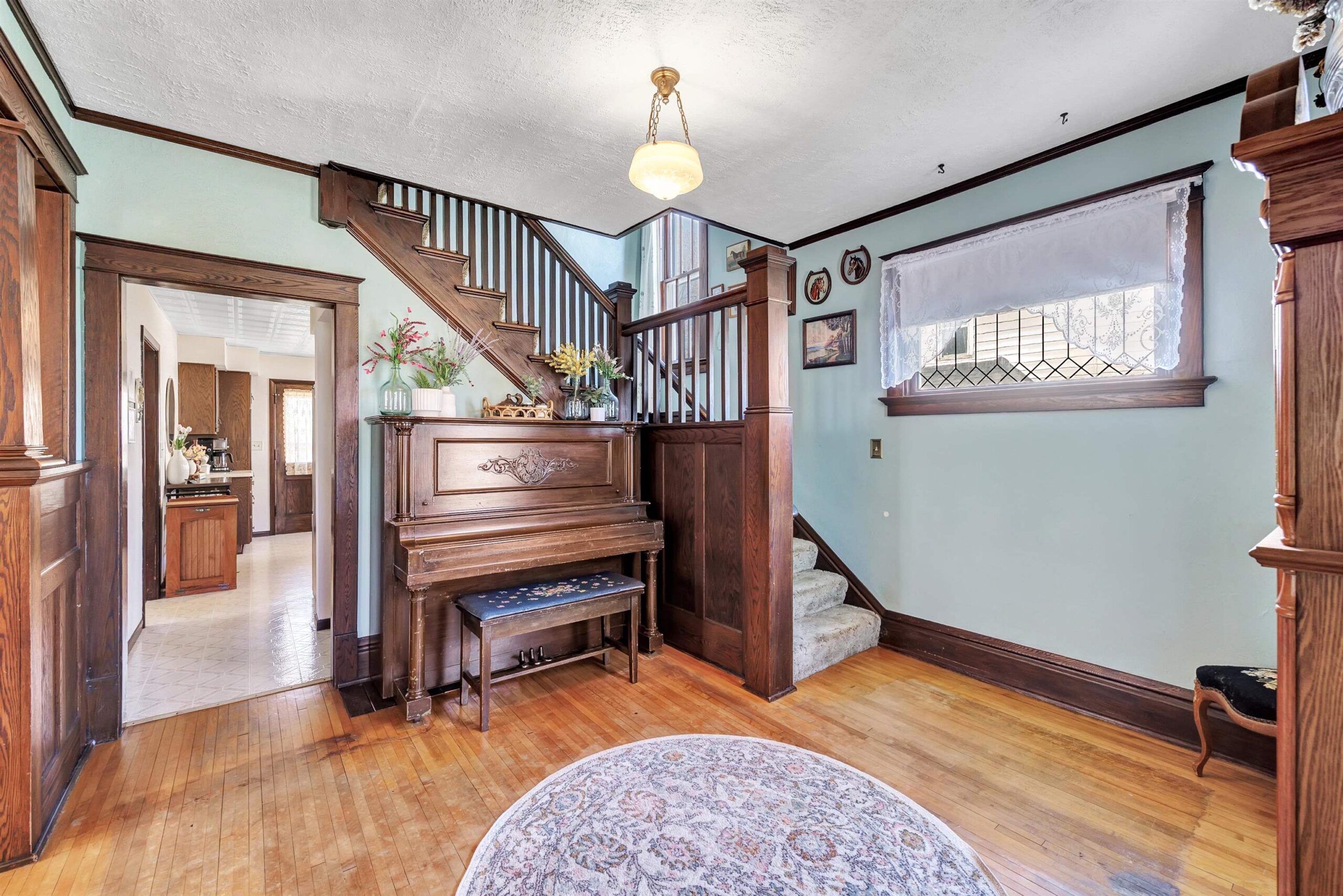Stove, Refrigerator, Dishwasher, Piano, Kitchen Table & Chairs, Washer & Dryer.