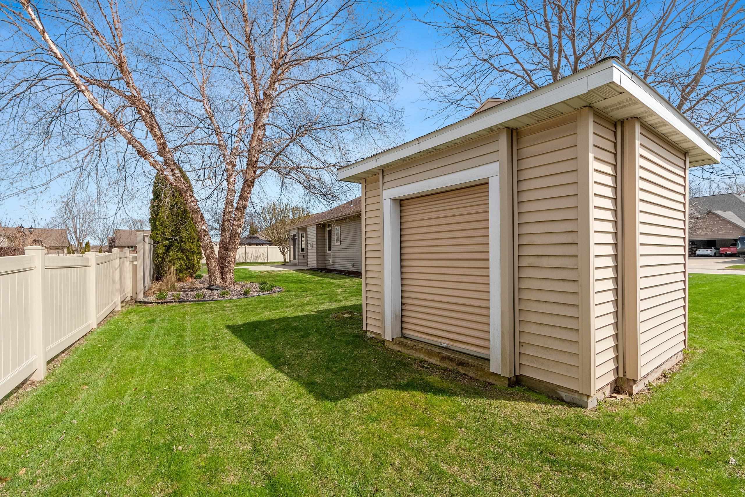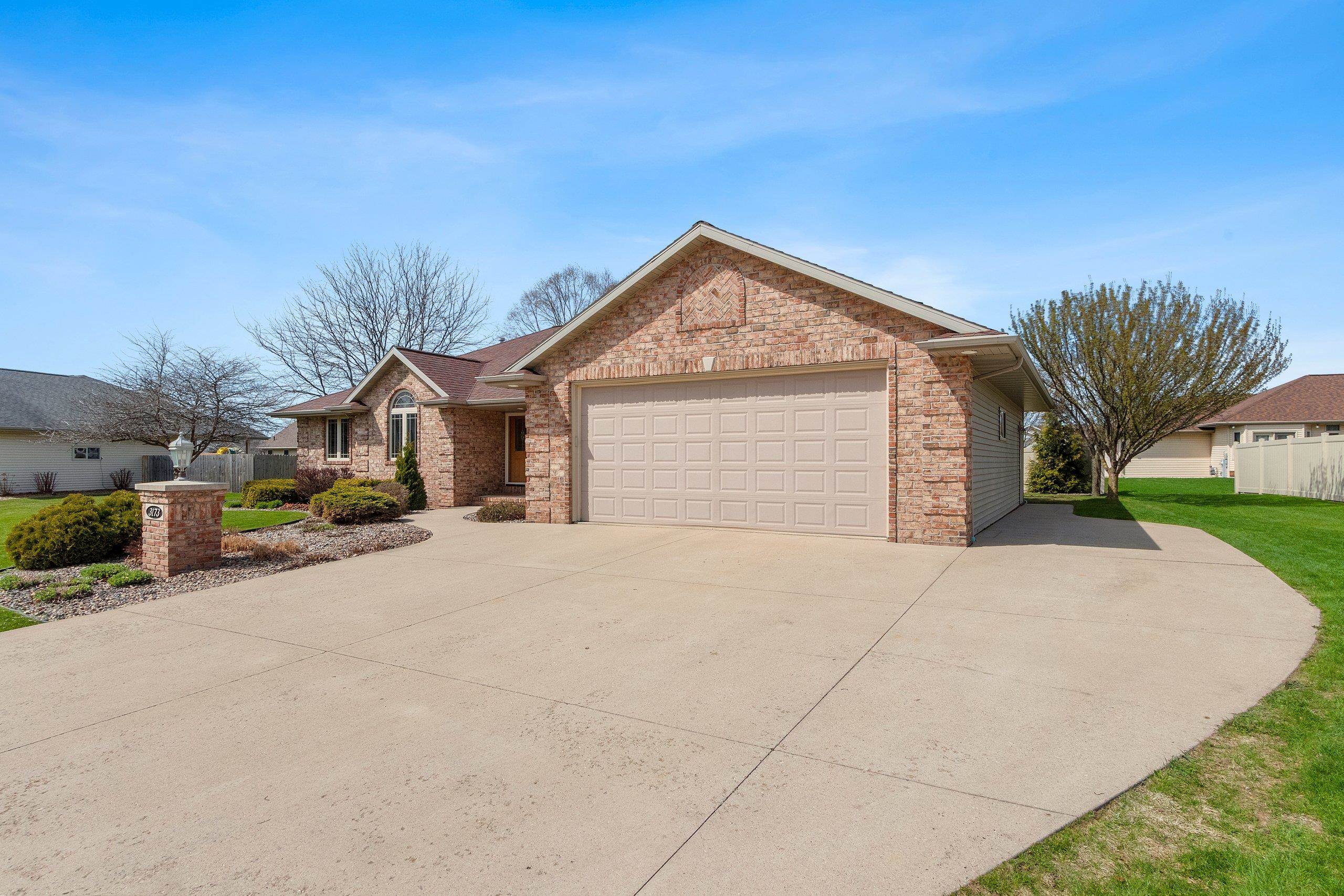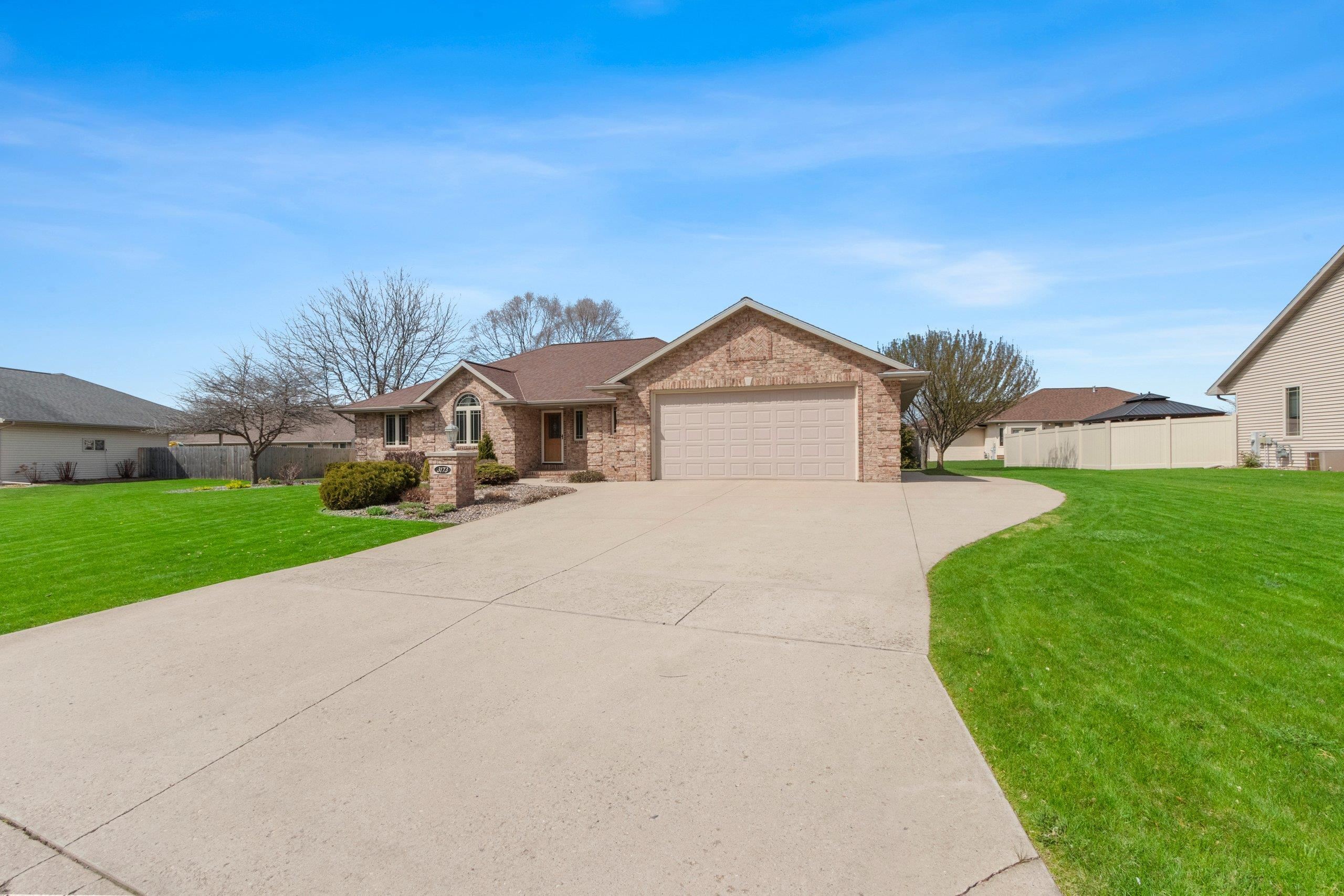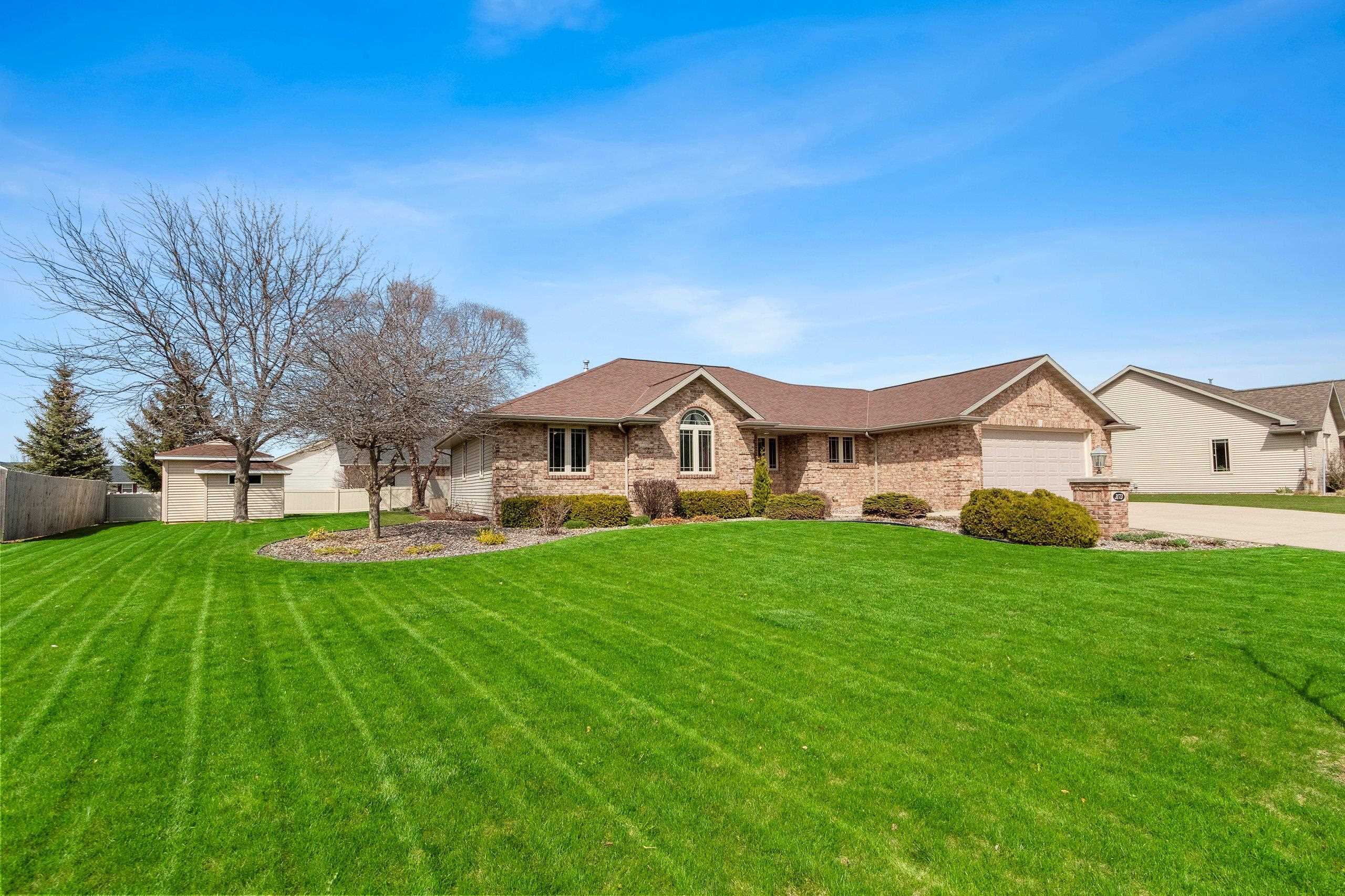 Beautiful brick faced ranch in the heart of Bellevue! Step inside and be impressed with a large foyer, tons of natural light and an open concept layout. Maple hardwood finishes throughout, including trim, doors and cabinetry. Fully applianced kitchen and walk in pantry. Overlooking a generous sized living room with a gas fire place. First floor laundry includes washer/dryer, sink and toilet. Master ensuite with walk in closet and double vanity. Partially finished lower level offering two finished spaces, full bath and garage access! Finished 2.5 stall garage, storage shed and freshly landscaped. You will feel the quality as you walk in- schedule your showing today and make this home your next move! Room sizes are approx. buyer to verify.
