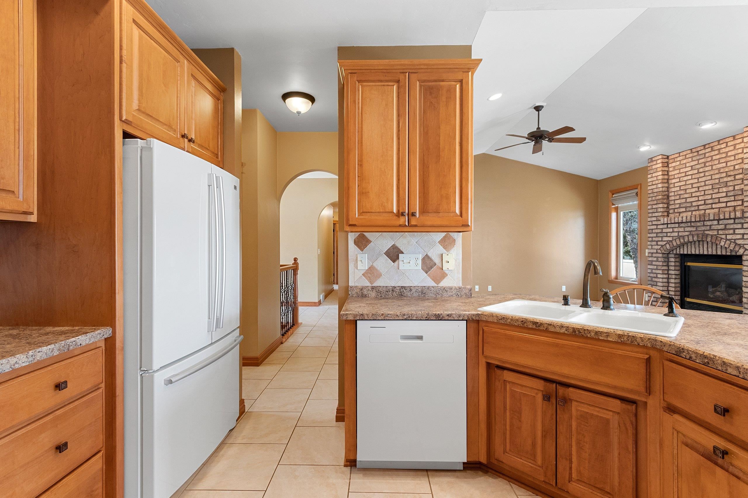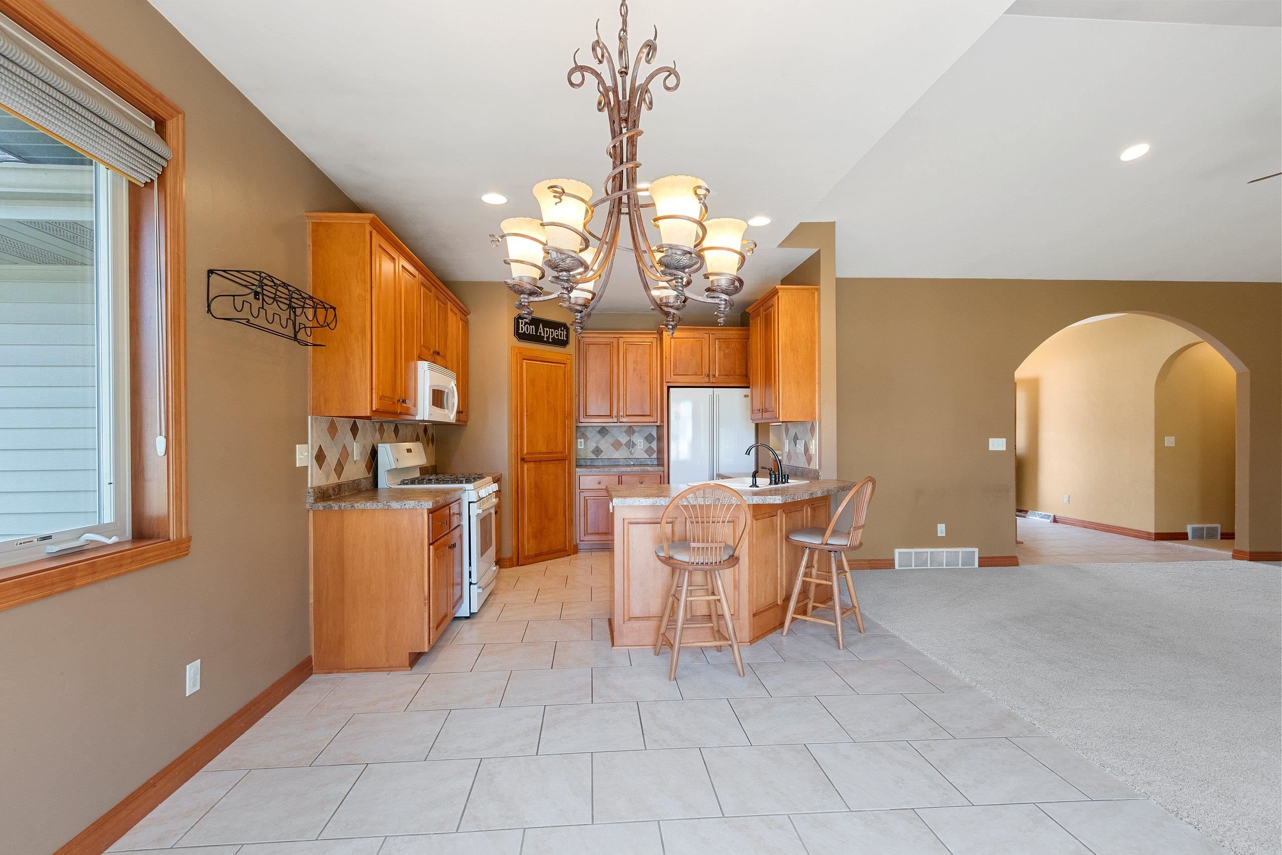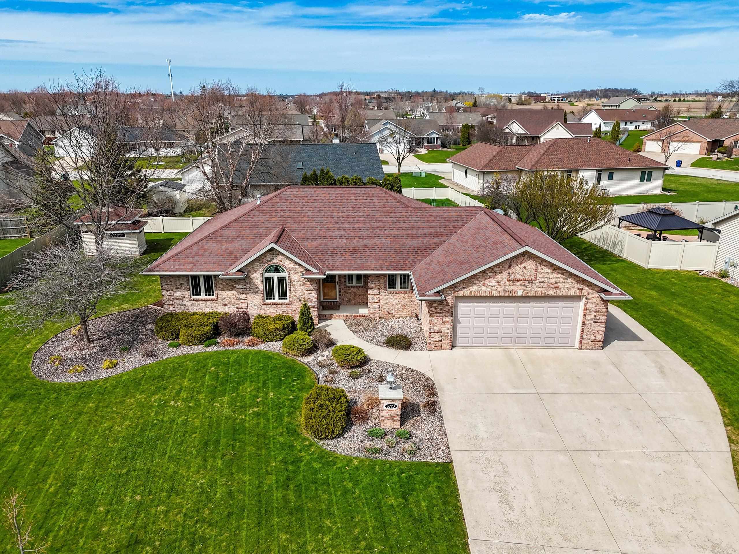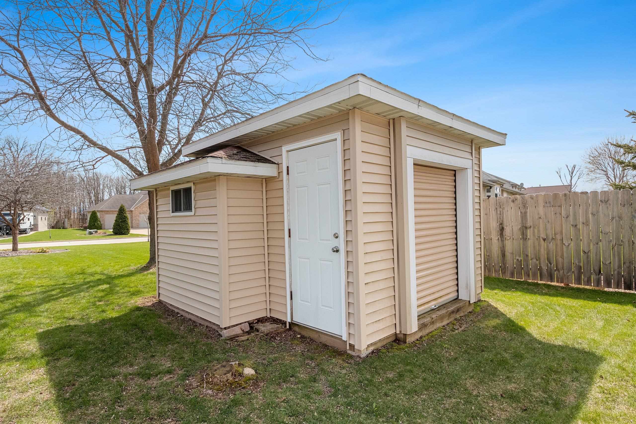 Beautiful brick faced ranch in the heart of Bellevue! Step inside and be impressed with a large foyer, tons of natural light and an open concept layout. Maple hardwood finishes throughout, including trim, doors and cabinetry. Fully applianced kitchen and walk in pantry. Overlooking a generous sized living room with a gas fire place. First floor laundry includes washer/dryer, sink and toilet. Master ensuite with walk in closet and double vanity. Partially finished lower level offering two finished spaces, full bath and garage access! Finished 2.5 stall garage, storage shed and freshly landscaped. You will feel the quality as you walk in- schedule your showing today and make this home your next move! Room sizes are approx. buyer to verify.