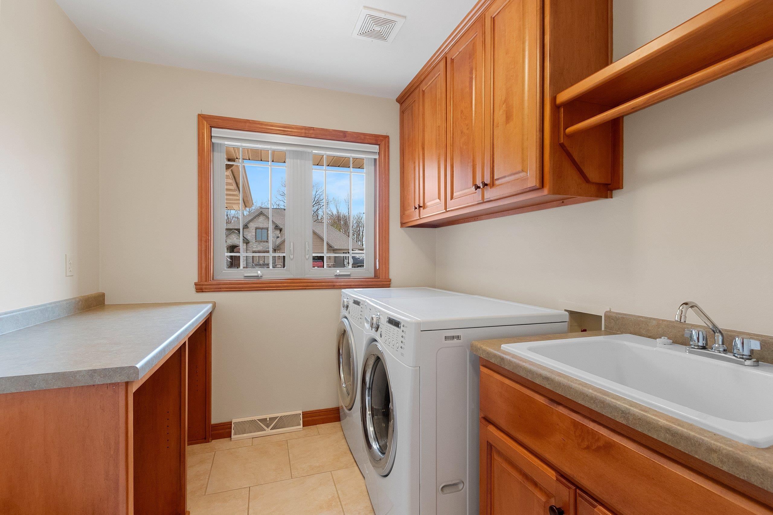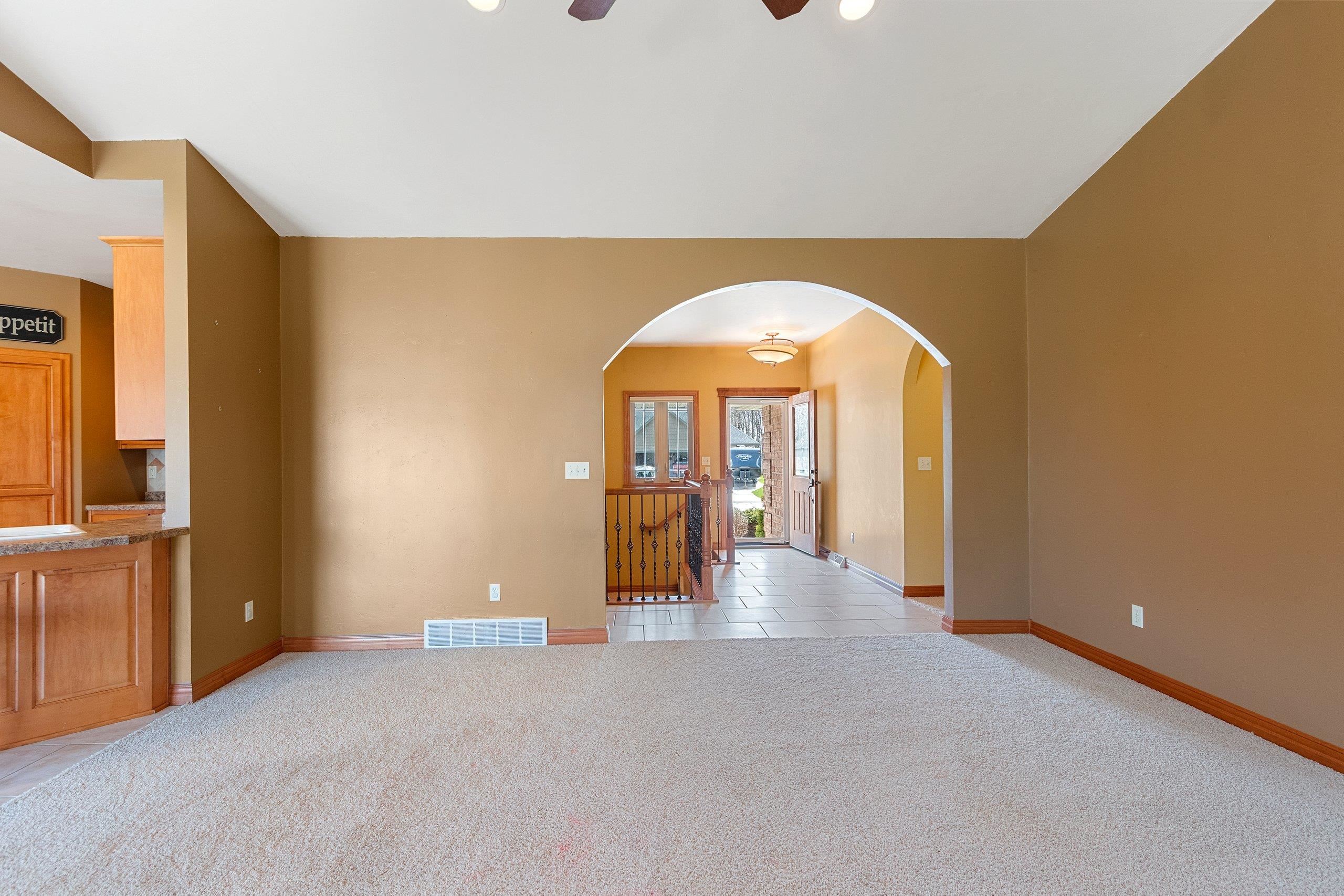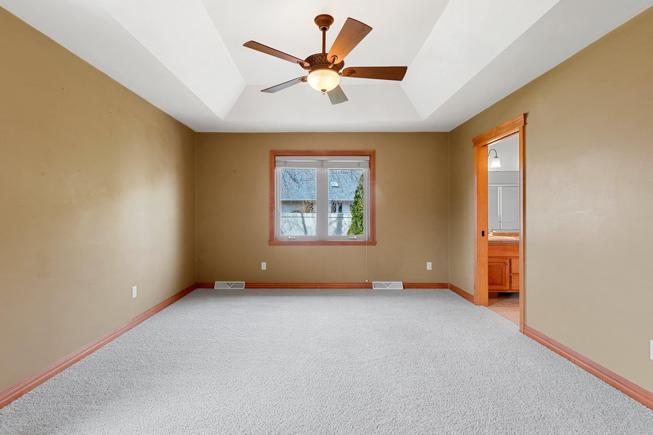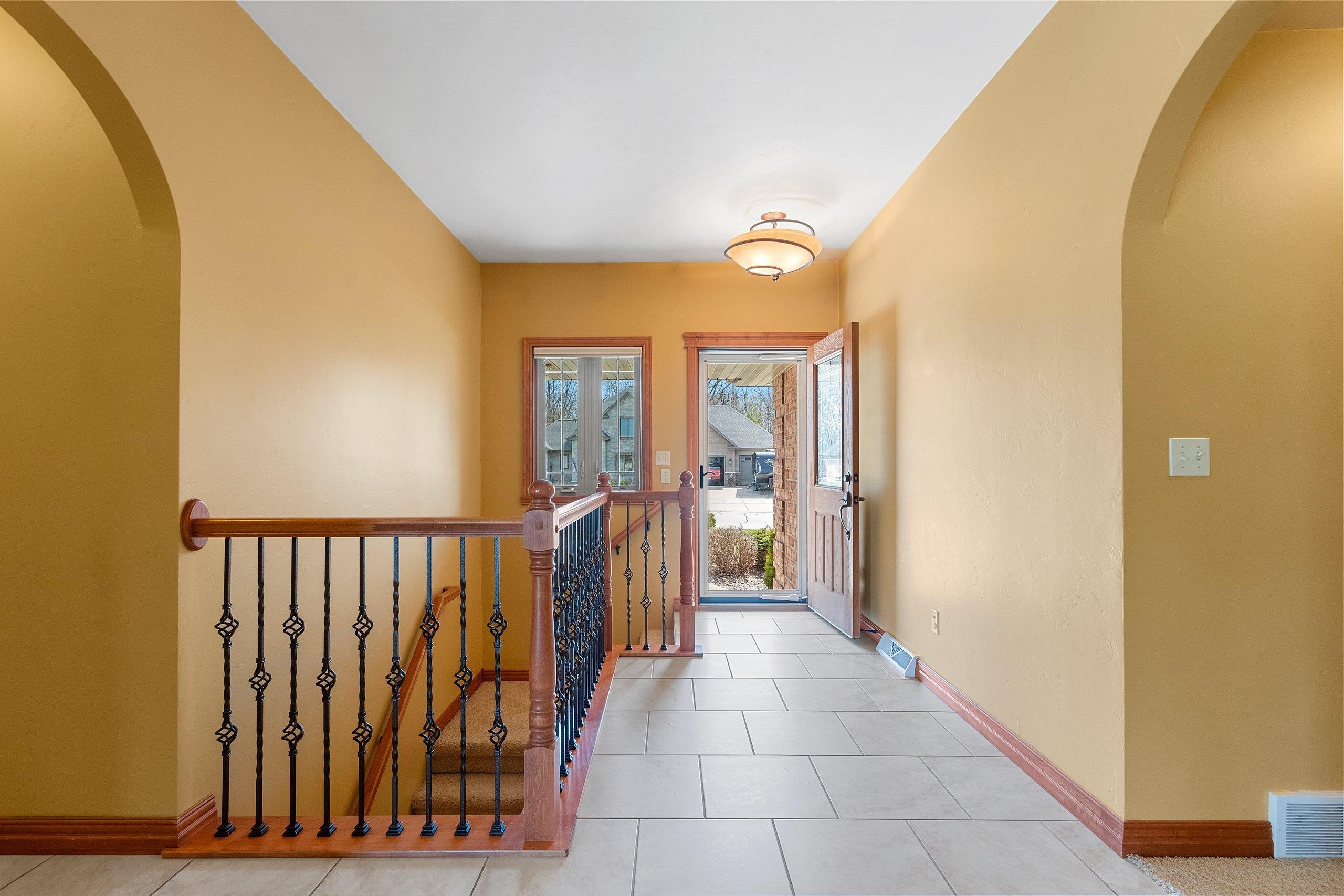 Beautiful brick faced ranch in the heart of Bellevue! Step inside and be impressed with a large foyer, tons of natural light and an open concept layout. Maple hardwood finishes throughout, including trim, doors and cabinetry. Fully applianced kitchen and walk in pantry. Overlooking a generous sized living room with a gas fire place. First floor laundry includes washer/dryer, sink and toilet. Master ensuite with walk in closet and double vanity. Partially finished lower level offering two finished spaces, full bath and garage access! Finished 2.5 stall garage, storage shed and freshly landscaped. You will feel the quality as you walk in- schedule your showing today and make this home your next move! Room sizes are approx. buyer to verify.