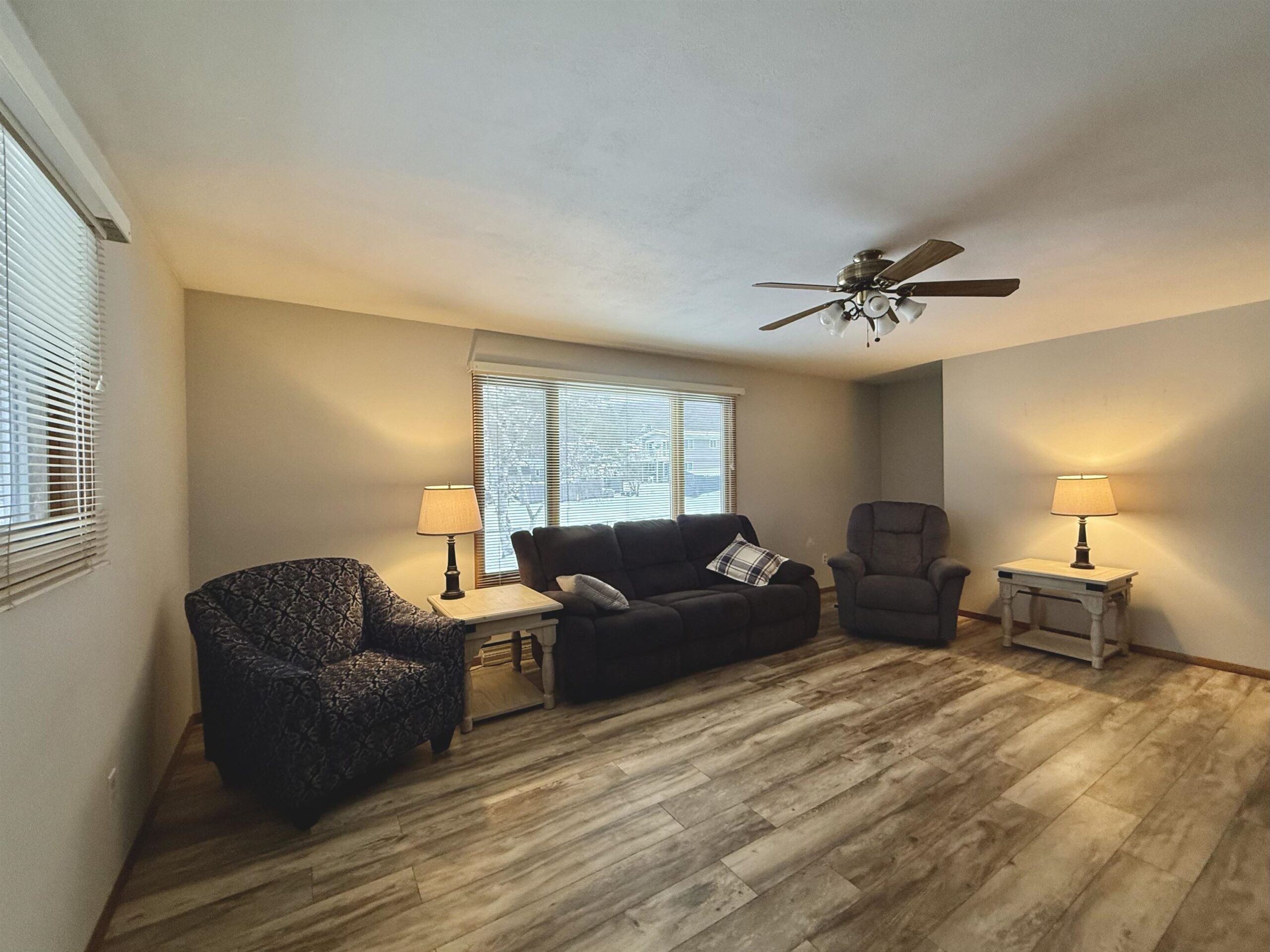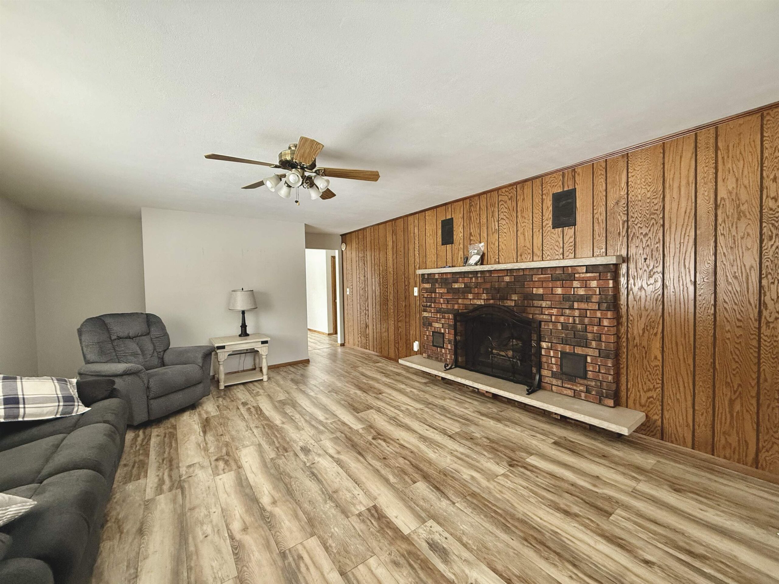 Welcome home to this well-maintained 3-bedroom, 1.5-bath residence offering 1,550 sq ft of finished living space on the main level, plus an additional 527 sq ft of partially finished space in the lower level—great for an office, or rec room. This home features 2 spacious living rooms, one highlighted by a gas fireplace, and both filled with an abundance of natural light.. Situated on a generous 0.42-acre lot, the large backyard offers plenty of room to enjoy the outdoors and is partially fenced for added convenience. .Updates include; Water heater (2025), AC unit (2024), gutters, extensive electrical updates including outside lighting, garage outlets and electric to shed, ceiling fans, gas fireplace, flooring, interior paint, deck, oven/range, and bathroom remodel.