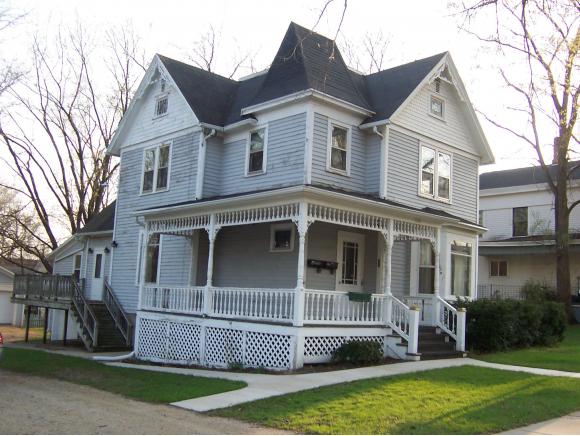 Step into timeless charm with this beautifully preserved 1881 New London gem! This 3 bedroom, 2 bath home boasts original hardwood floors, a grand foyer, and a formal dining room, preserving its authentic era character. The primary suite features a private bathroom + double closets. The daily-used fireplace with blower adds cozy warmth throughout! All appliances come with custom door covers to blend seamlessly with kitchen cabinetry. Perfectly situated on a spacious, half acre corner lot, this property showcases thoughtfully designed landscaping that enhances its historic appeal and offers plenty of room to relax or entertain outdoors on the wrap around porch or maintenance free deck and includes a unique one car garage, formerly a carriage house with a loft. Laundry room has painted floor