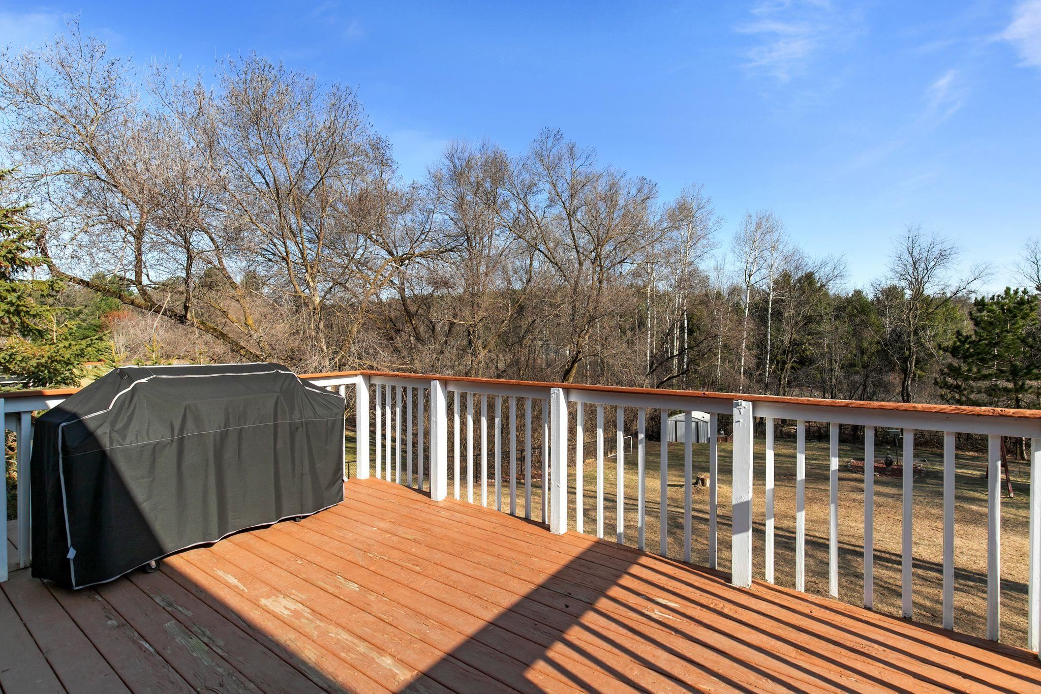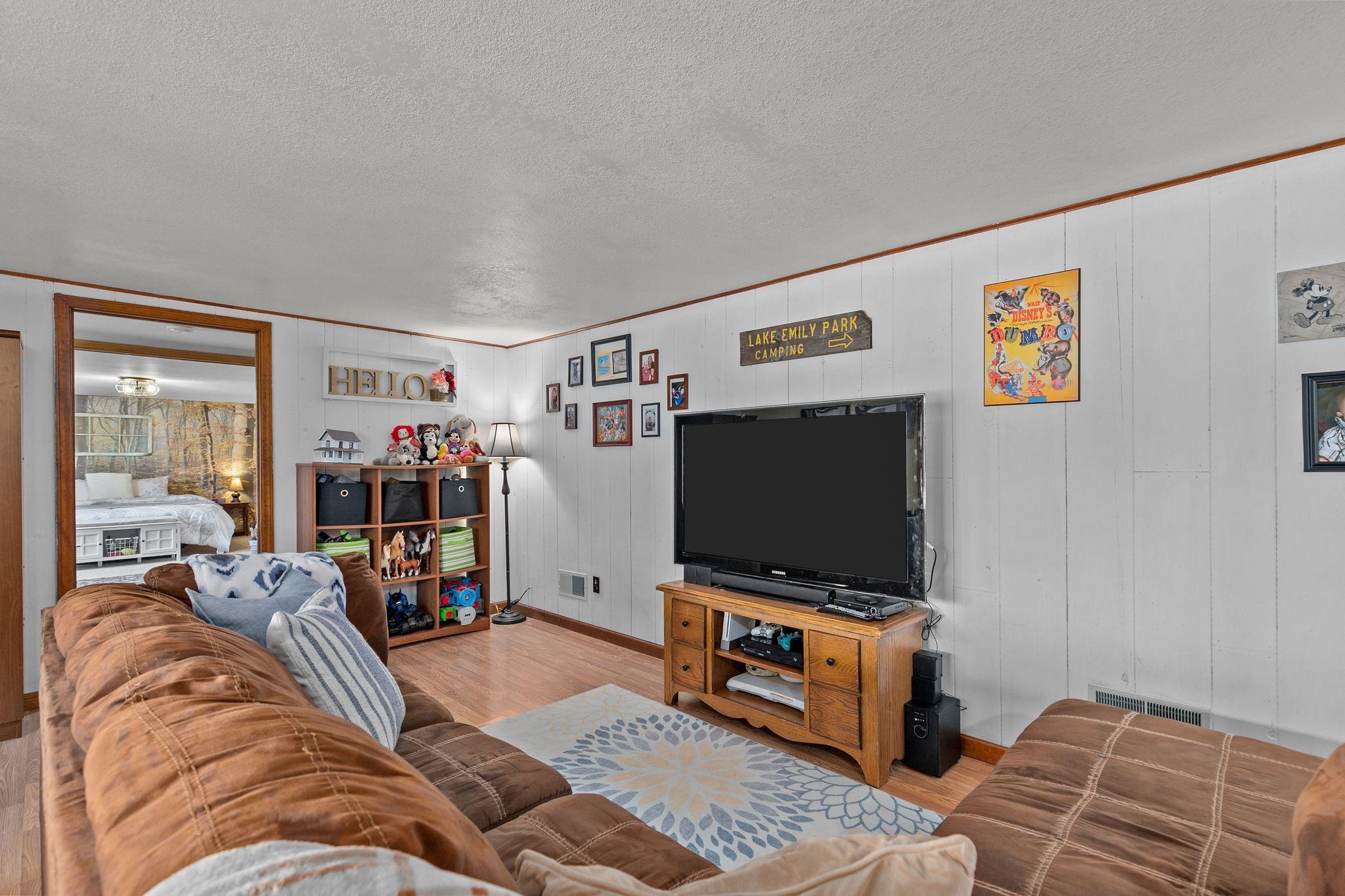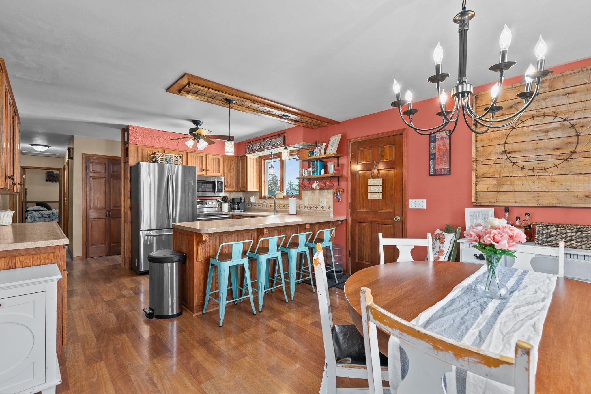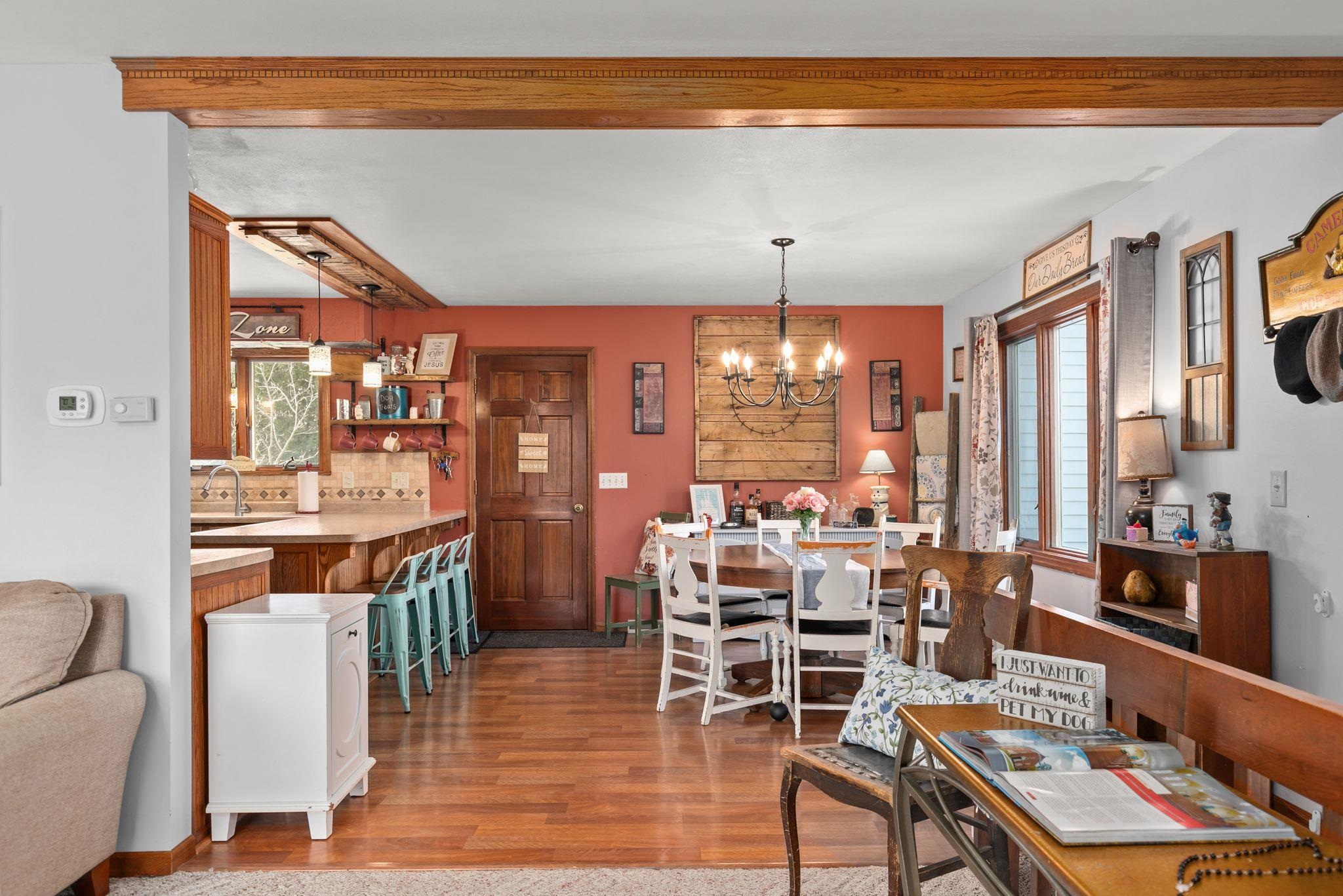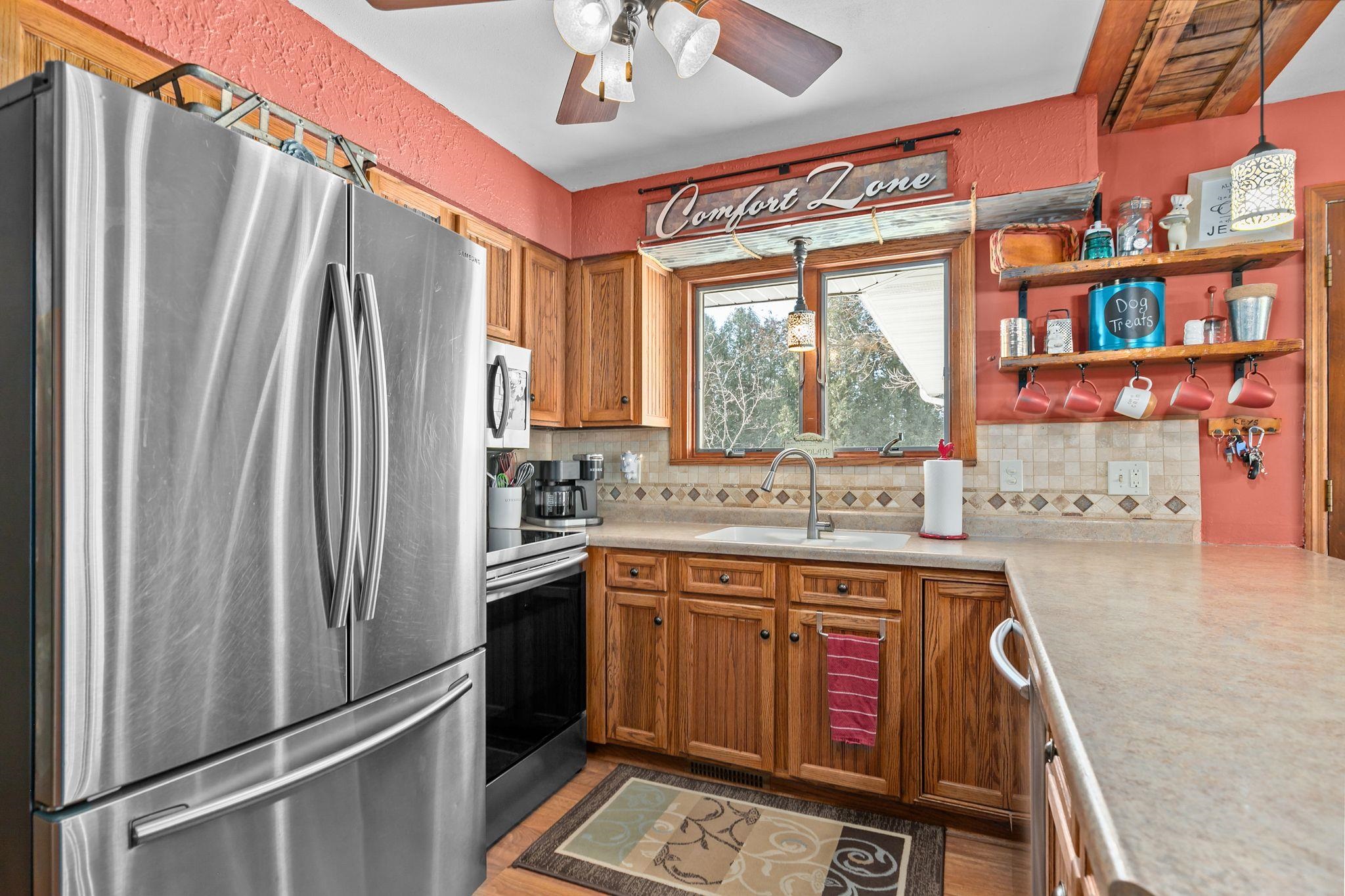 Beautiful contemporary ranch on a spacious 0.5-acre lot with a fenced backyard. This 4 bed, 2 full bath home features an open concept kitchen and dining space with breakfast bar seating. Enjoy rustic accents and a cozy wood-burning fireplace. The lower level includes a large bonus room with walkout patio and a bedroom currently used as the primary suite, offering flexibility for your ideal layout. The upper deck overlooks the private yard. Stylish, functional, and full of charm—this home has it all!
