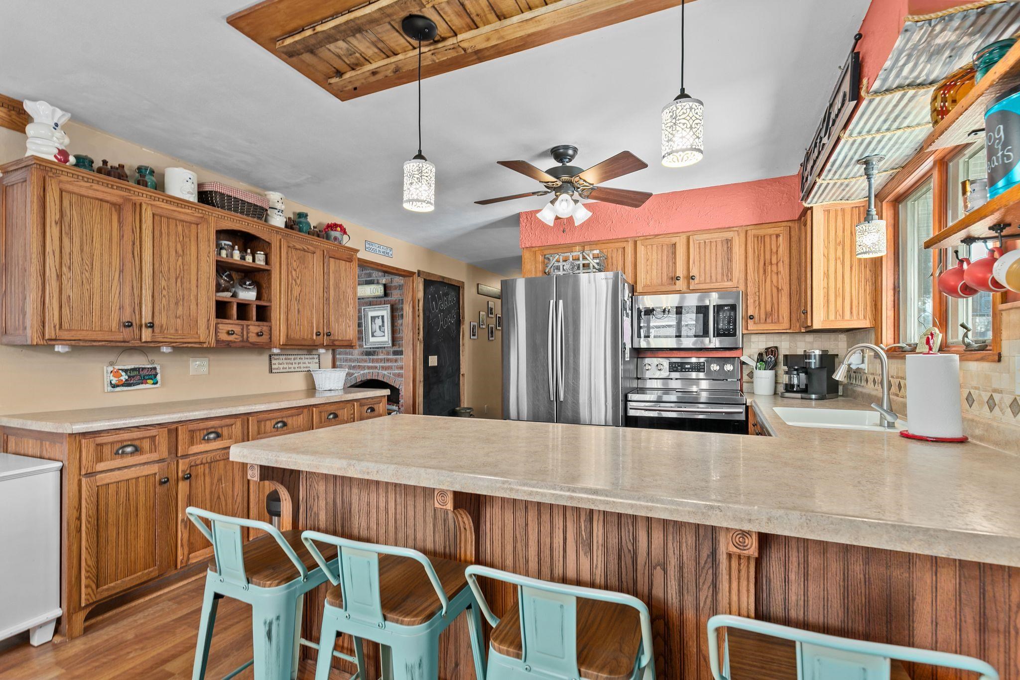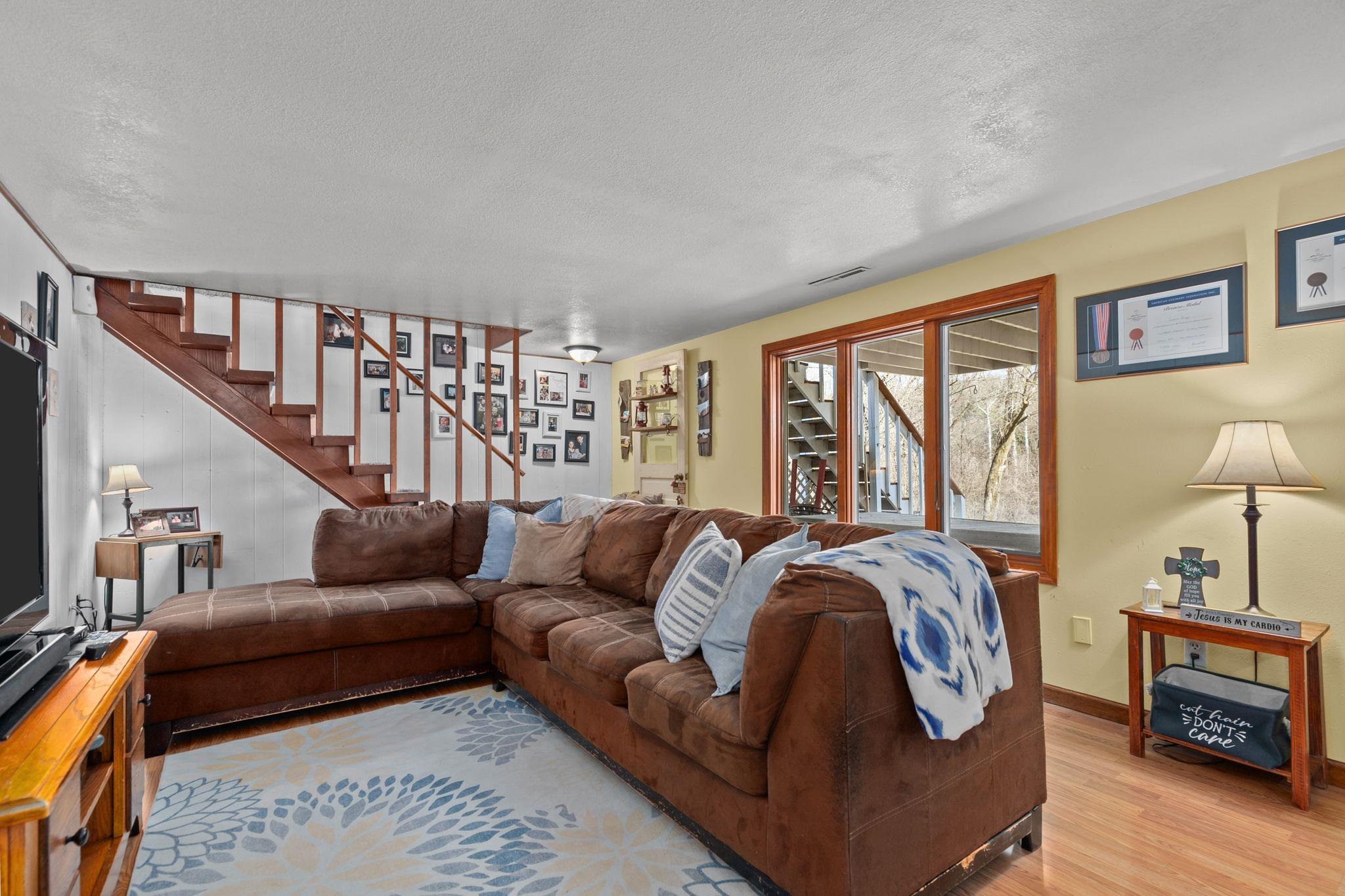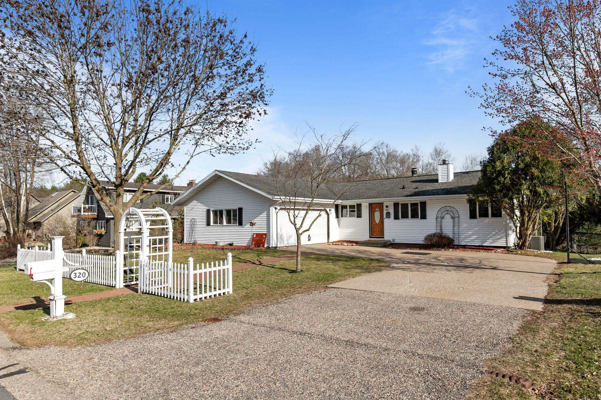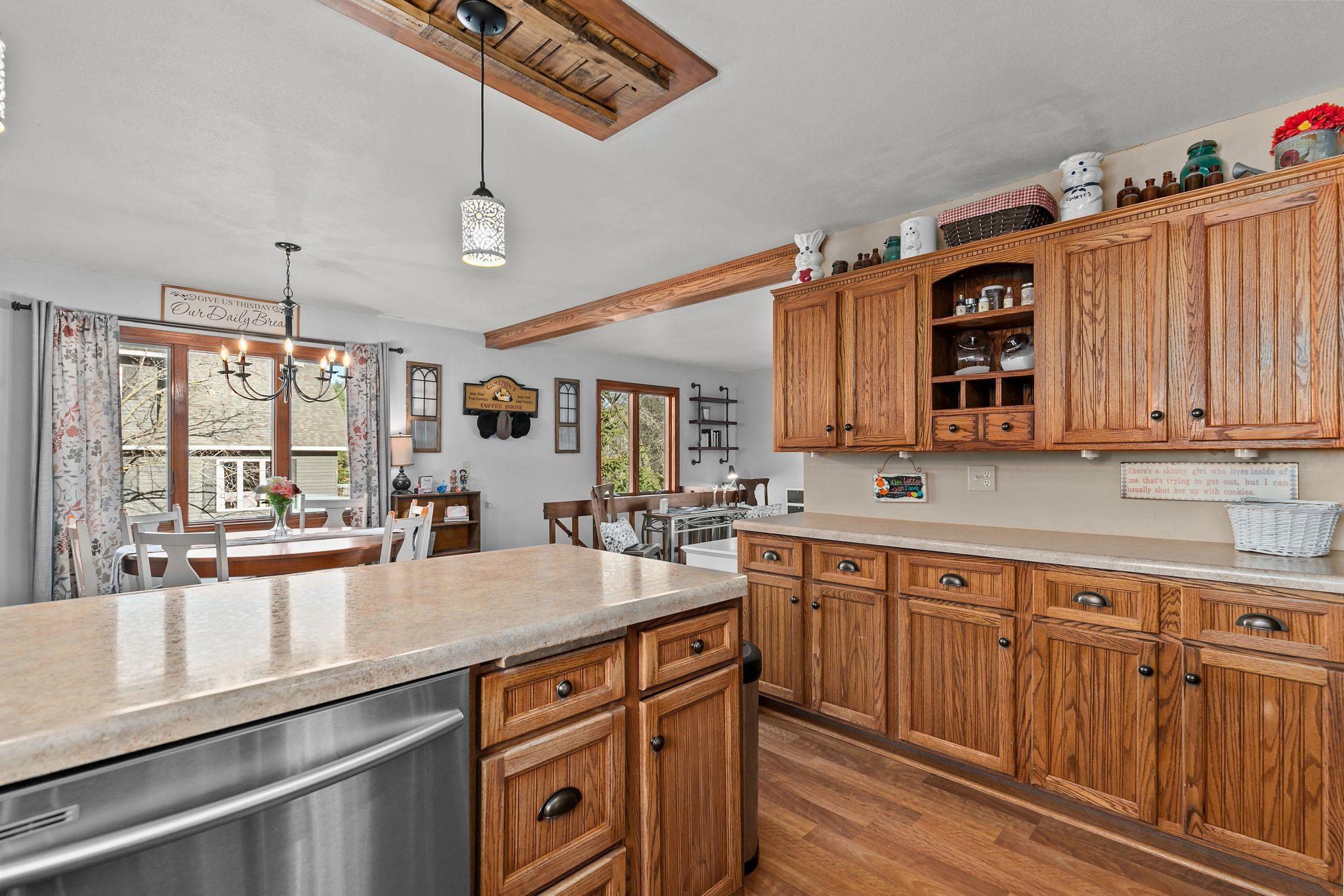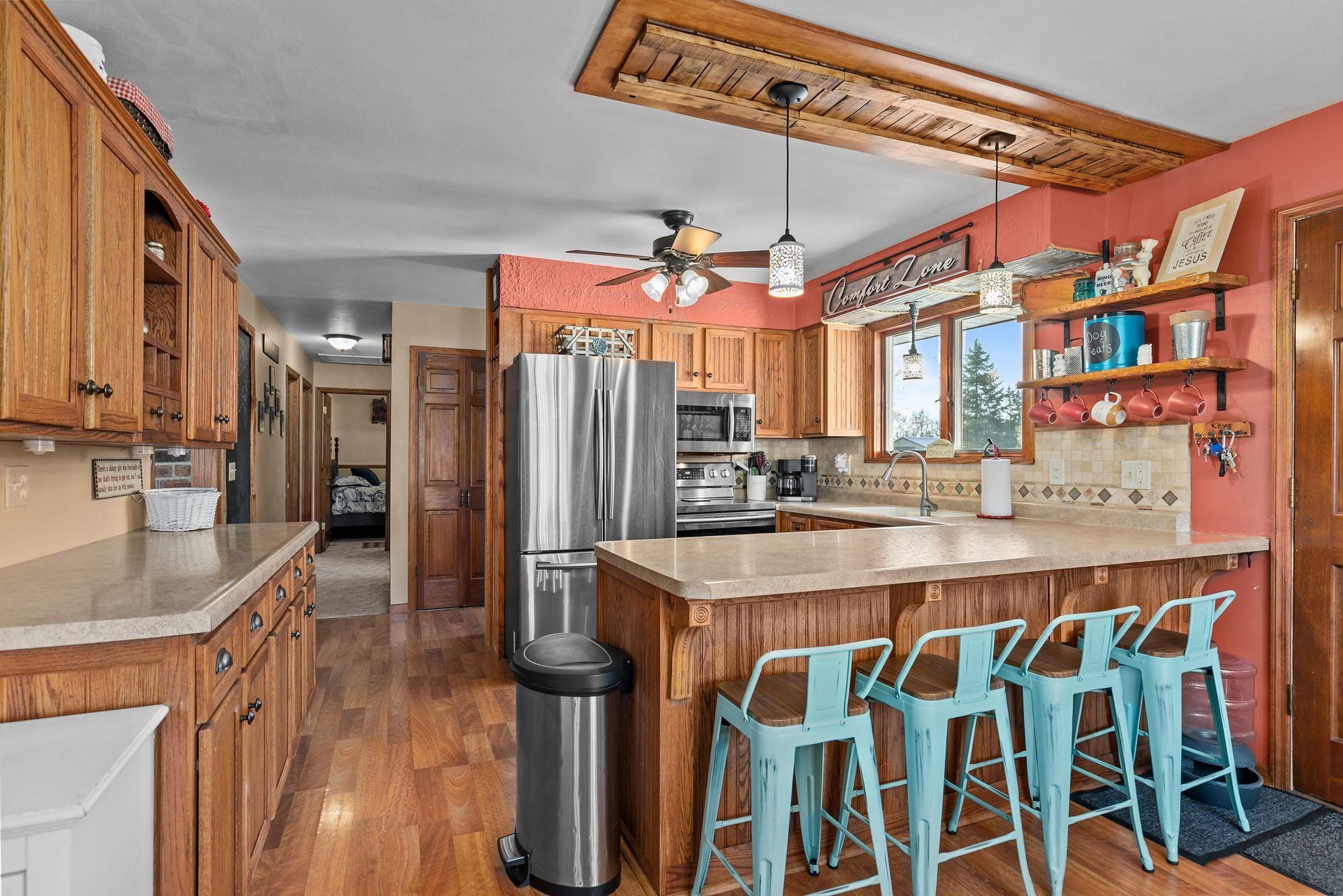 Beautiful contemporary ranch on a spacious 0.5-acre lot with a fenced backyard. This 4 bed, 2 full bath home features an open concept kitchen and dining space with breakfast bar seating. Enjoy rustic accents and a cozy wood-burning fireplace. The lower level includes a large bonus room with walkout patio and a bedroom currently used as the primary suite, offering flexibility for your ideal layout. The upper deck overlooks the private yard. Stylish, functional, and full of charm—this home has it all!