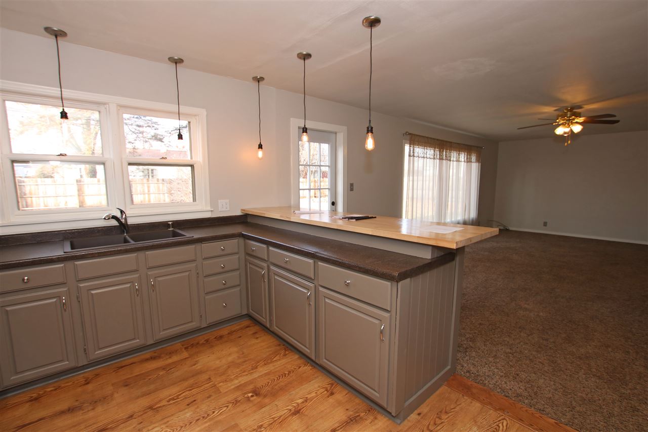 NEWLY UPDATED 3 bedroom, 1.5 bathroom ranch offers a great room and den/dining room featuring a two way fireplace. Kitchen with breakfast nook is open to great room. Nice sized main floor laundry/mud room. 1.5 car garage has finished floor, painted walls and plenty of built in storage. Driveway wide enough to park two cars side by side. Generous sized 1/4 acre city lot, nicely landscaped with a private fenced in back yard. Great northeast neighborhood, located on a quiet street with schools within walking distance.