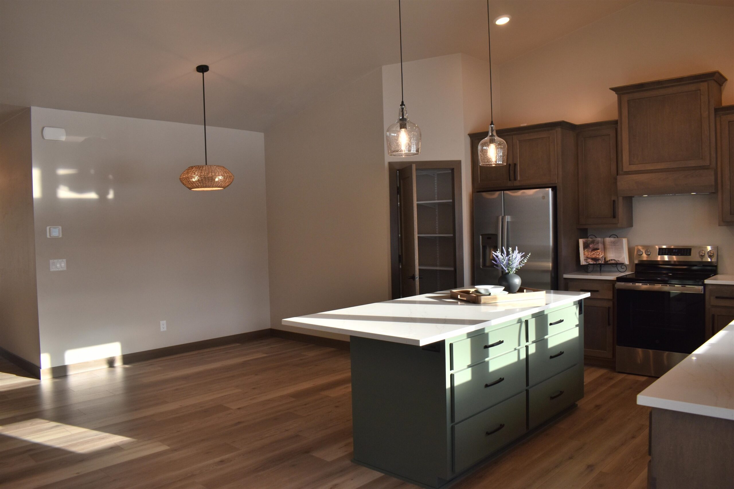 Welcome to this beautiful, well built, zero entry, open concept 3 Bed/2.5 Bath home. Front entry is a grand 8ft tall door w/side lite. Primary suite features a wood tray ceiling, tiled shower, trough sink for two, and large walk-in-closet connected to the laundry room. The other 2 bedrooms also have tray ceilings w/a divided bathroom to share. Sound insulation will help keep things quiet. Kitchen has a large 7ft quartz island suitable for all your cooking needs with a big pantry. Great room styles a corner gas fireplace with access to a zero entry rear covered porch to enjoy the oversized backyard. Get plenty of fresh air with double hung windows (easy to clean). Lower level is roughed in for a future full bath and bedroom with egress window. Many upgrades.