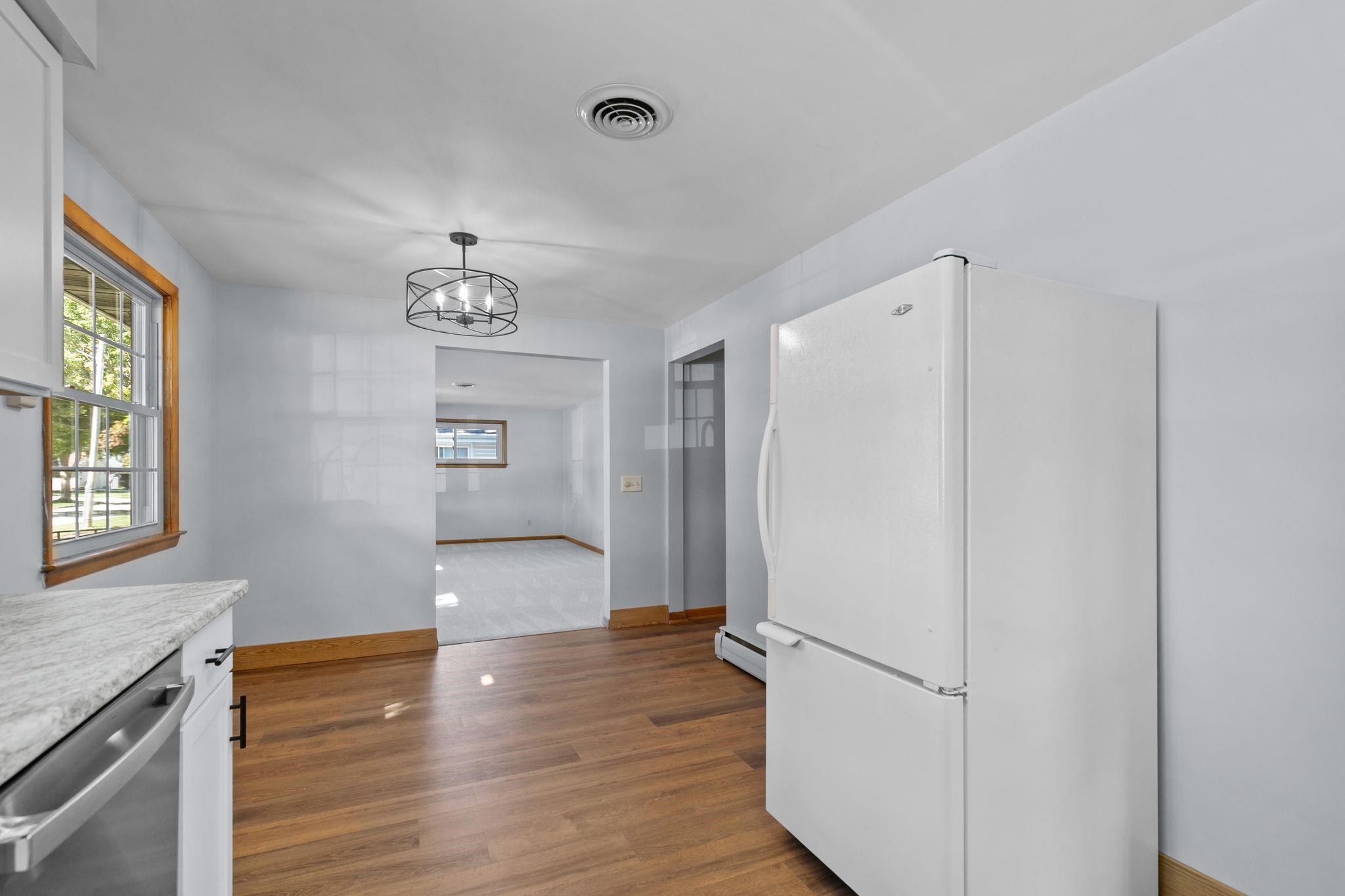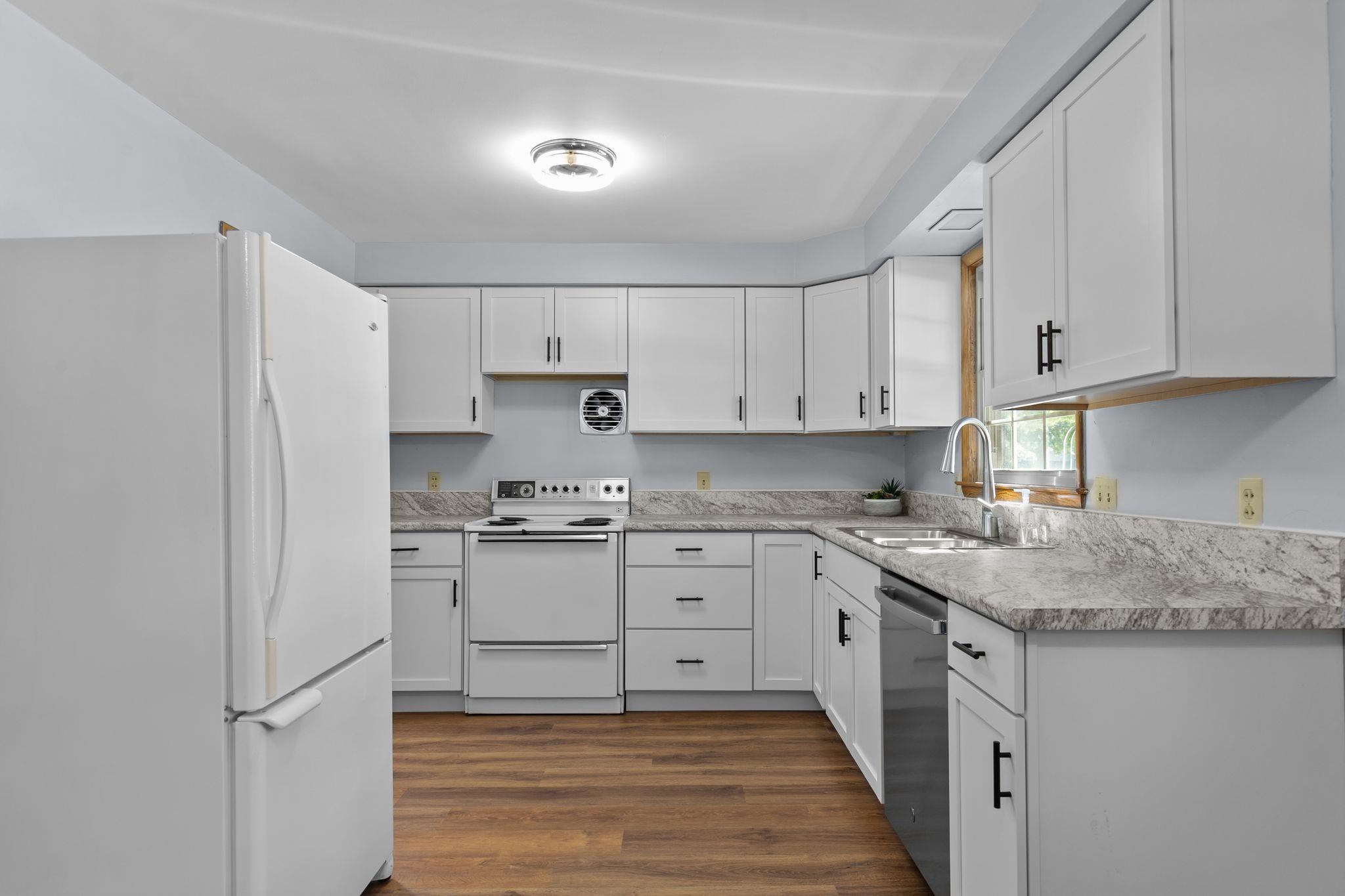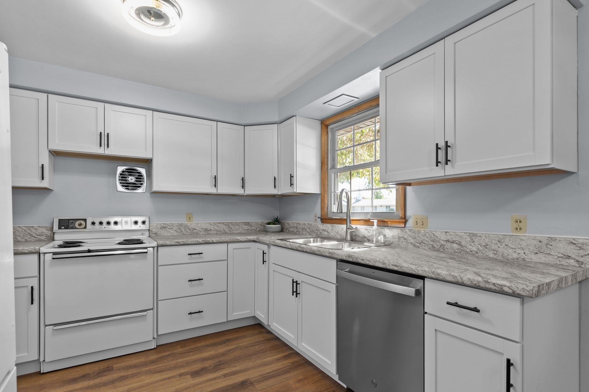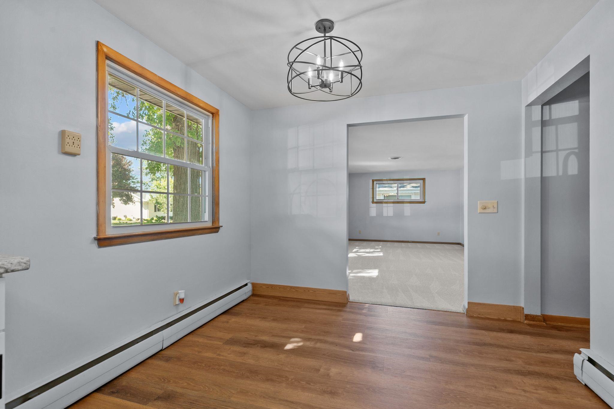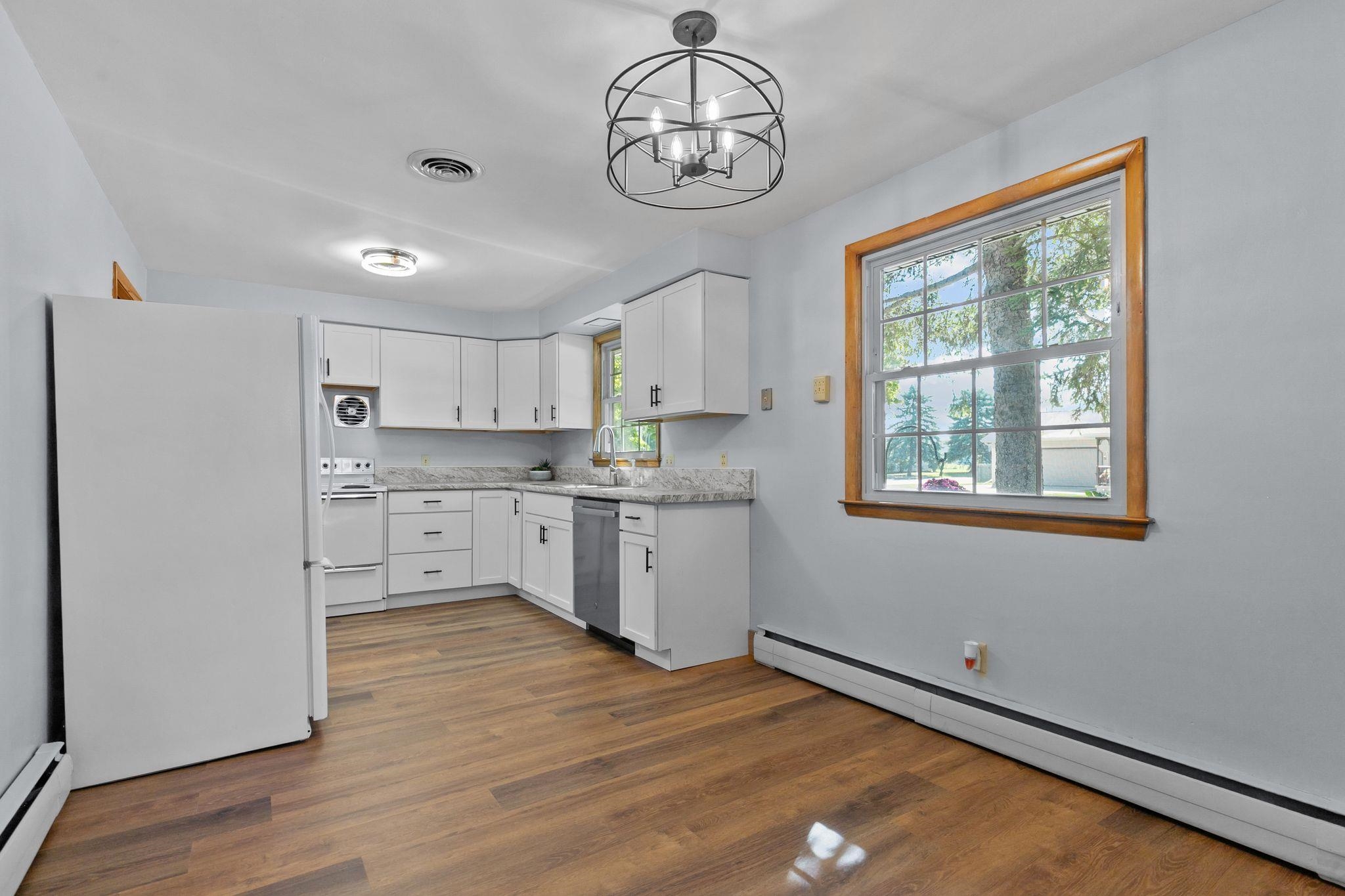 Charming Ranch Home in Quiet Subdivision Near Downtown! This well-maintained Ranch offers both comfort and convenience, located just minutes from downtown with easy highway access. Recent updates include new flooring, interior paint, kitchen cabinets, and updated lighting throughout. Enjoy a spacious great room with abundant natural light, an eat-in kitchen/dining area, and a private bedroom layout. The property also features a detached two-car garage and a large yard, perfect for outdoor activities or future expansion. Don’t miss this move-in-ready home with great curb appeal in a desirable location! Seller requests 48 hours to respond to all offers.