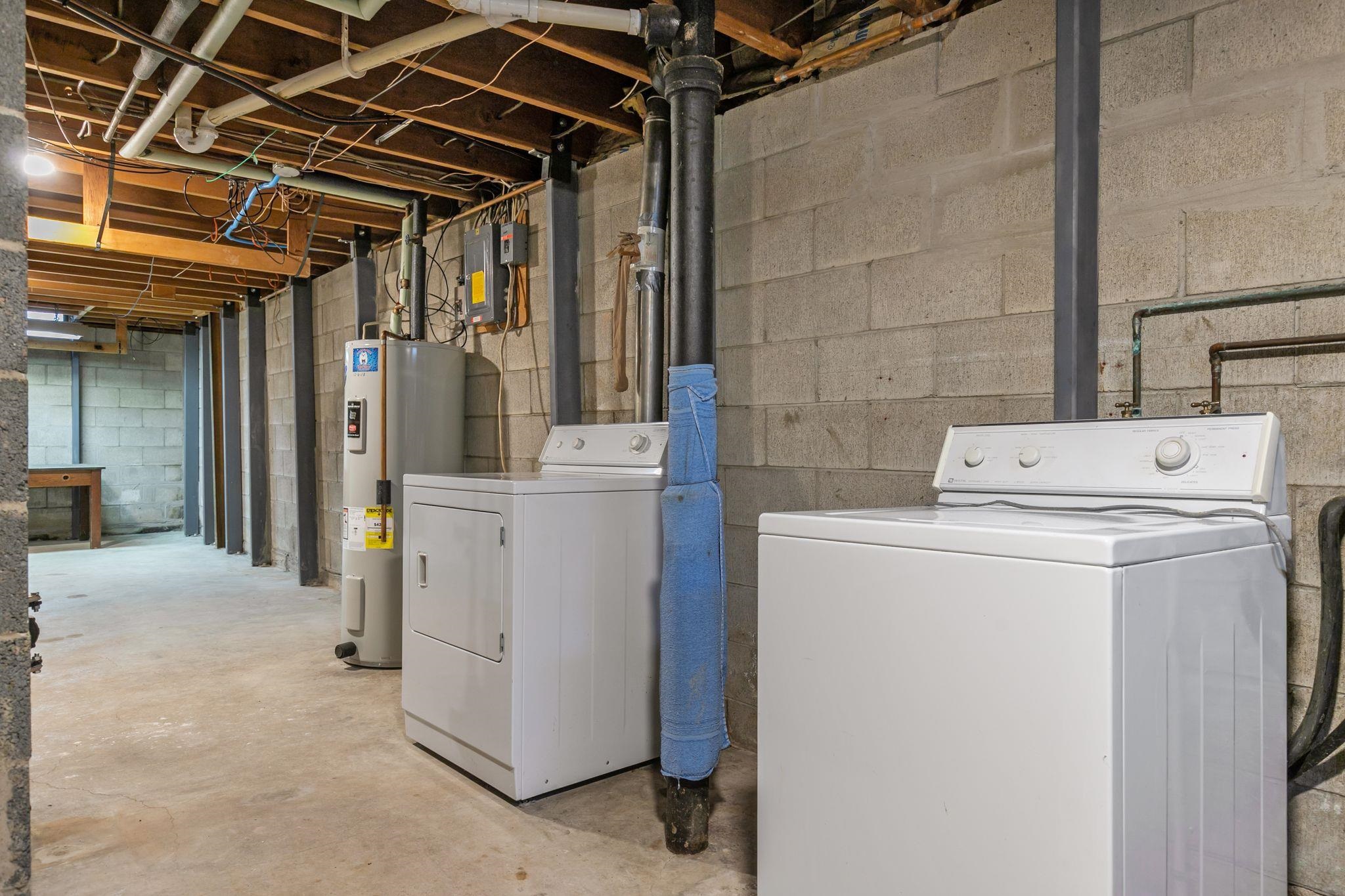 Range, dishwasher, washer, dryer, battery backup for sump pump, whole house dehumidifier