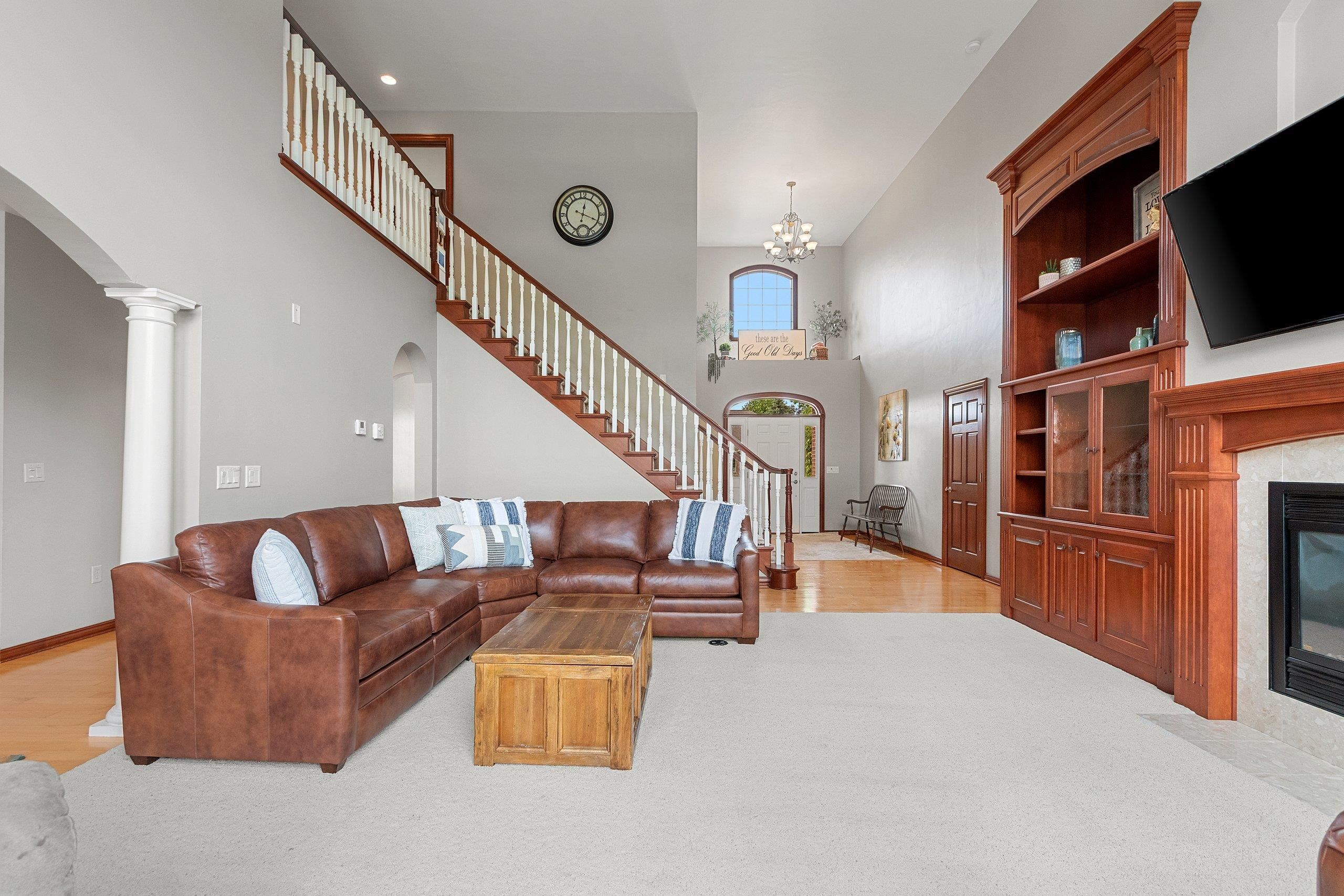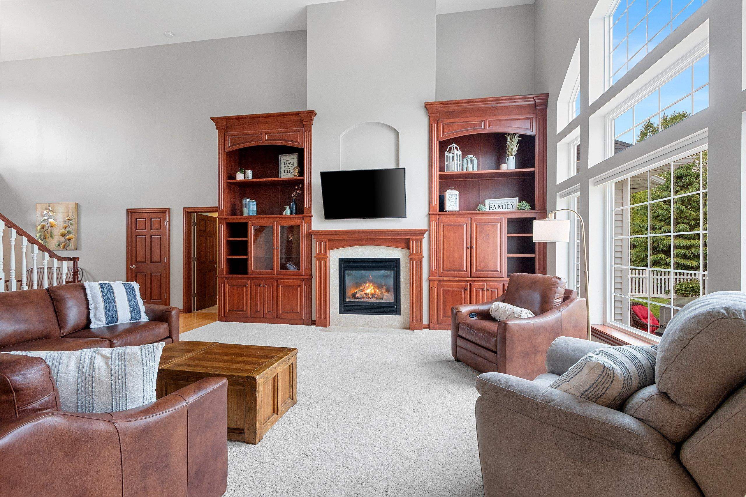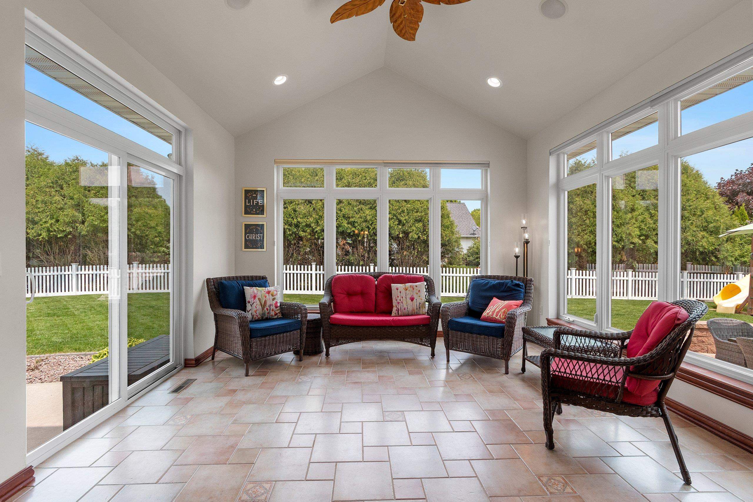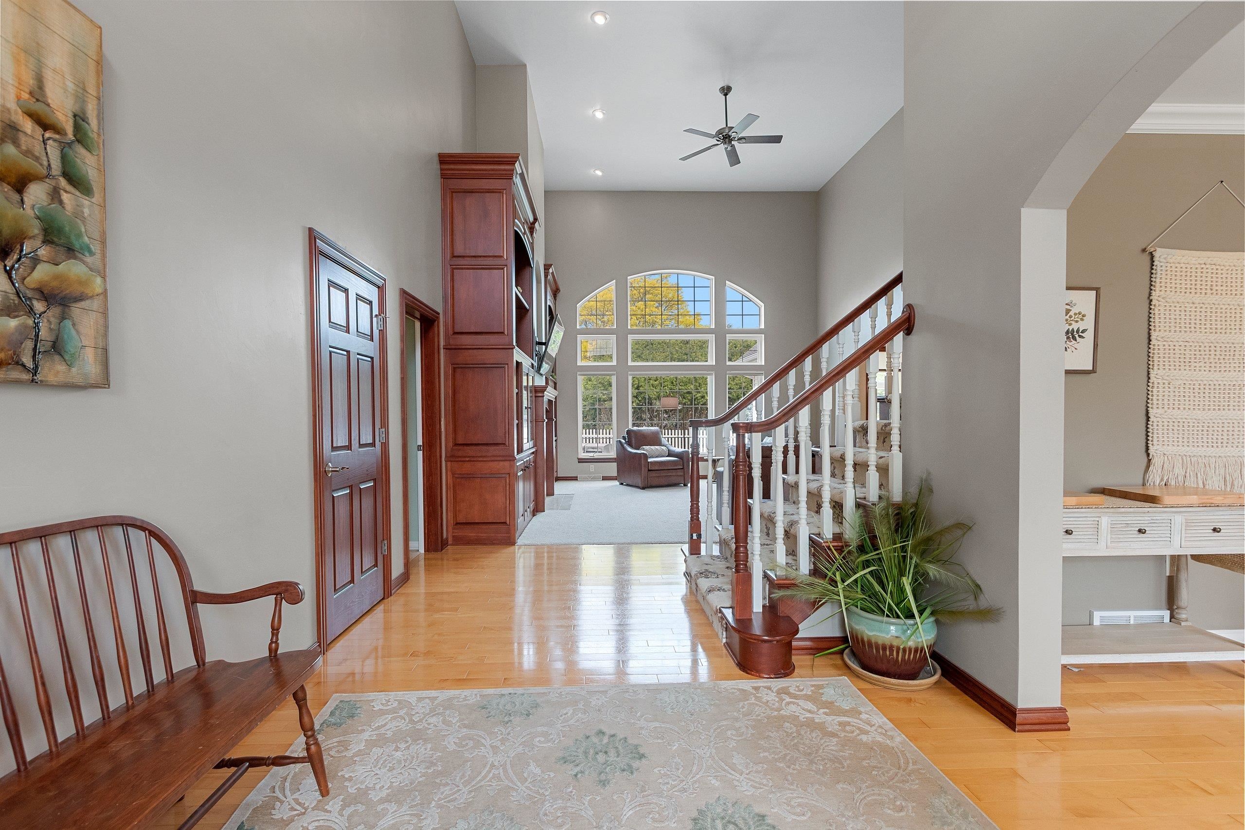 Remarkable home that seamlessly blends elegance and functionality. Property welcomes you with a large, inviting foyer, Beautiful hardwood floors extend across the main living spaces, complemented by soaring ceilings in the living room, with custom-built cabinetry and a cozy fireplace. Open-concept design leads into a spacious kitchen, with a convenient coffee/snack bar, a walk-in pantry, and ample cabinetry. Natural light floods the adjoining 4-season room, which offers views of the meticulously landscaped and fenced backyard with multiple patios. Primary bedroom is a haven of comfort featuring a walk-in closet and luxurious bath. Finished lower level adds versatile living areas. This property truly combines luxary, praciticality, and charm making it an exceptional choice. Pre-inspected
