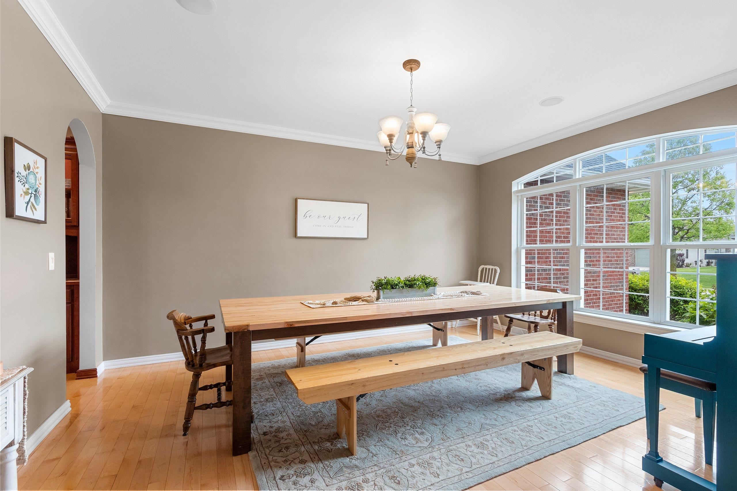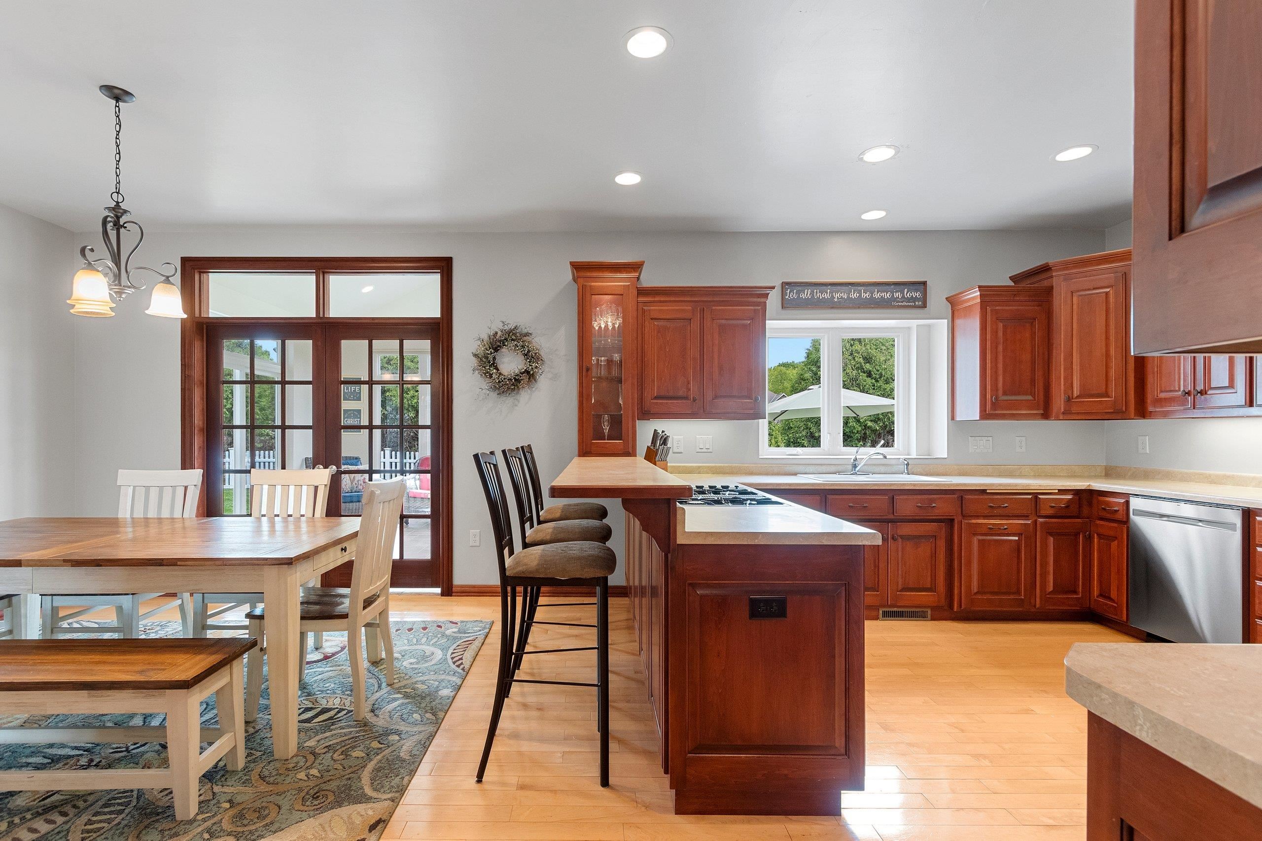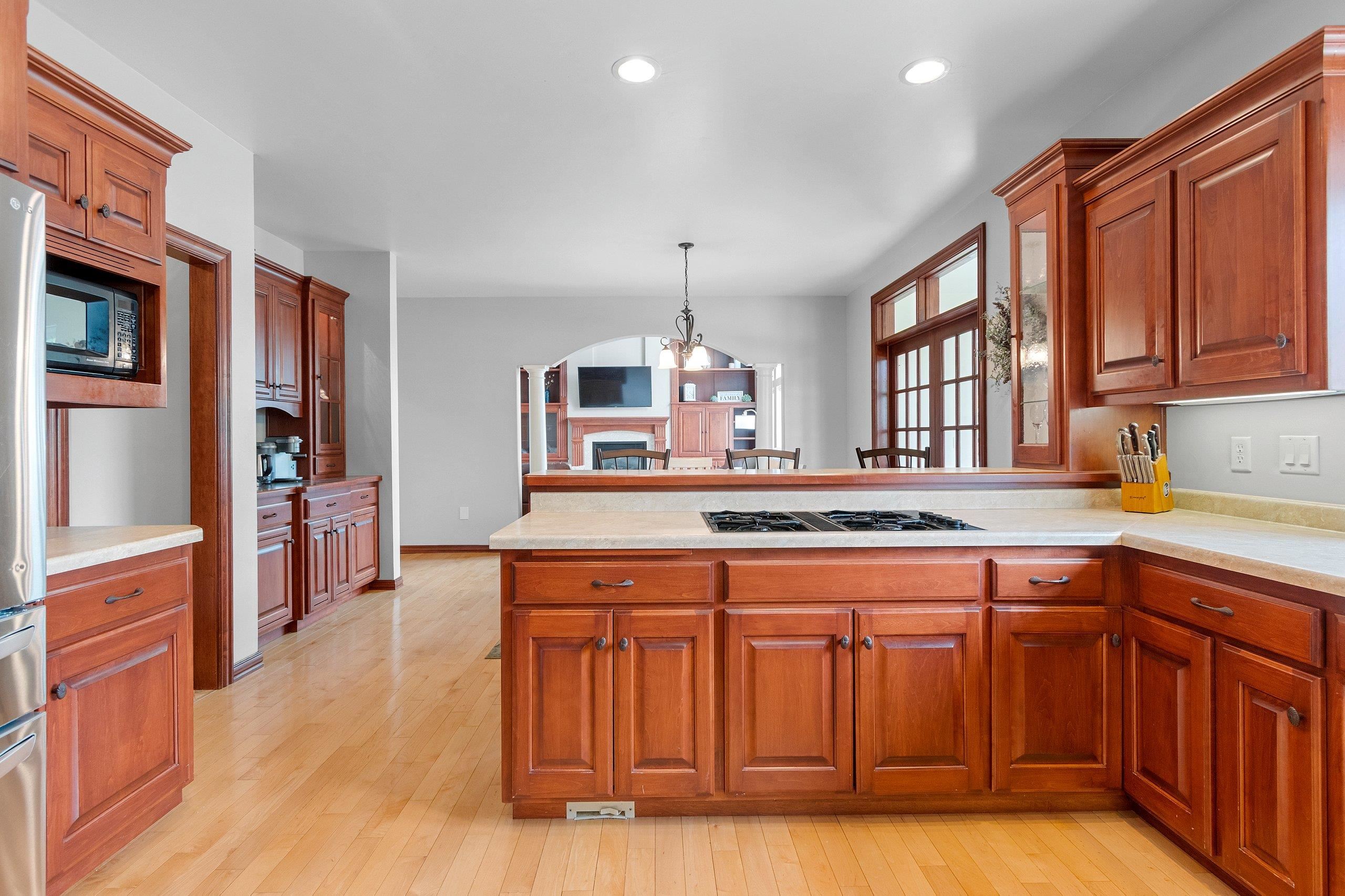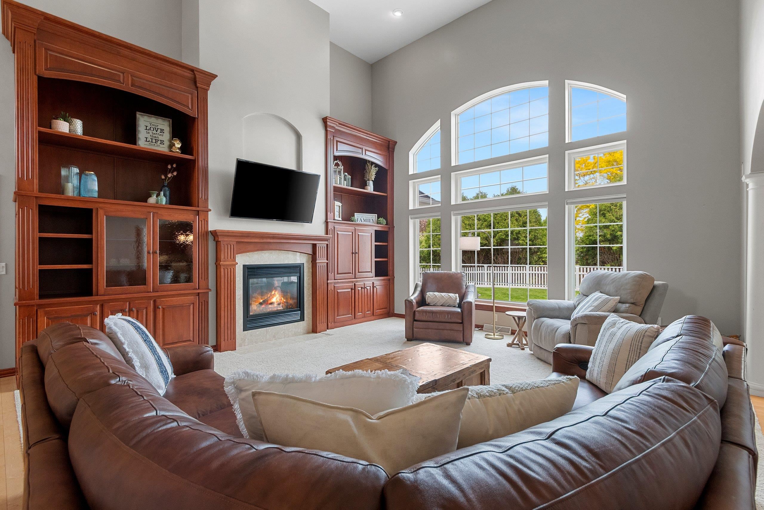 Remarkable home that seamlessly blends elegance and functionality. Property welcomes you with a large, inviting foyer, Beautiful hardwood floors extend across the main living spaces, complemented by soaring ceilings in the living room, with custom-built cabinetry and a cozy fireplace. Open-concept design leads into a spacious kitchen, with a convenient coffee/snack bar, a walk-in pantry, and ample cabinetry. Natural light floods the adjoining 4-season room, which offers views of the meticulously landscaped and fenced backyard with multiple patios. Primary bedroom is a haven of comfort featuring a walk-in closet and luxurious bath. Finished lower level adds versatile living areas. This property truly combines luxary, praciticality, and charm making it an exceptional choice. Pre-inspected