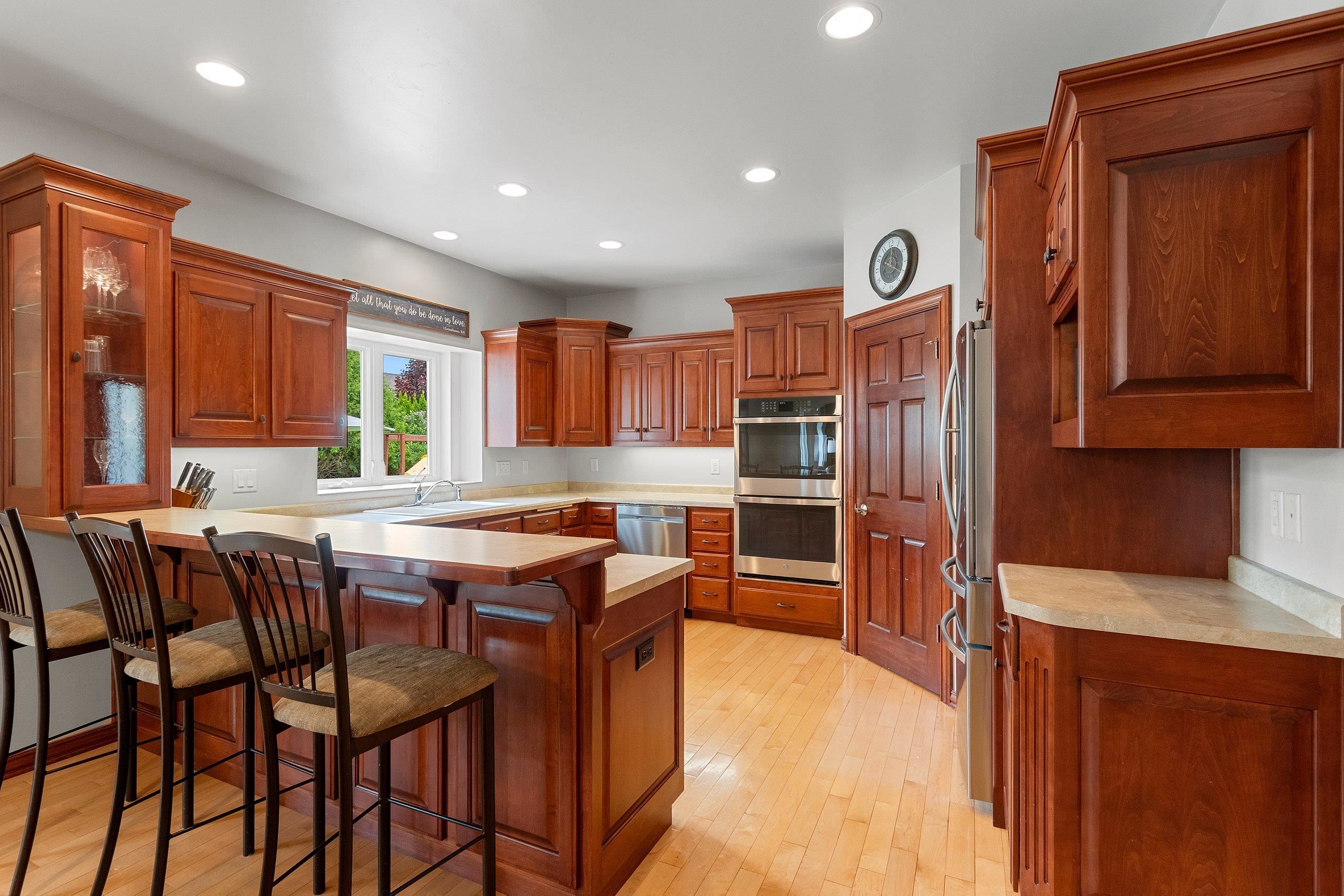 Refrigerator, range, double ovens, microwave, dishwasher, surround sound system, washer & dryer, window treatments.