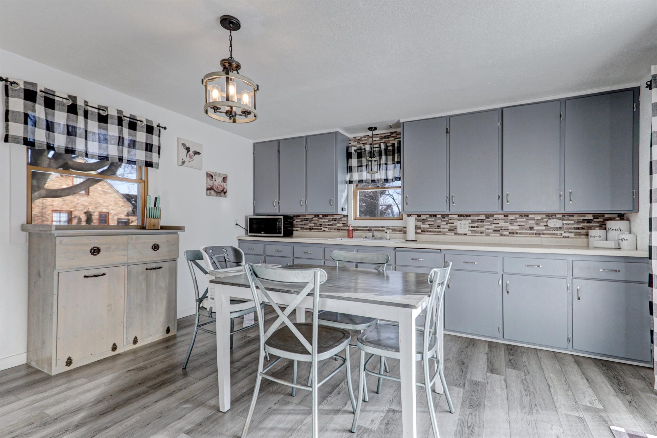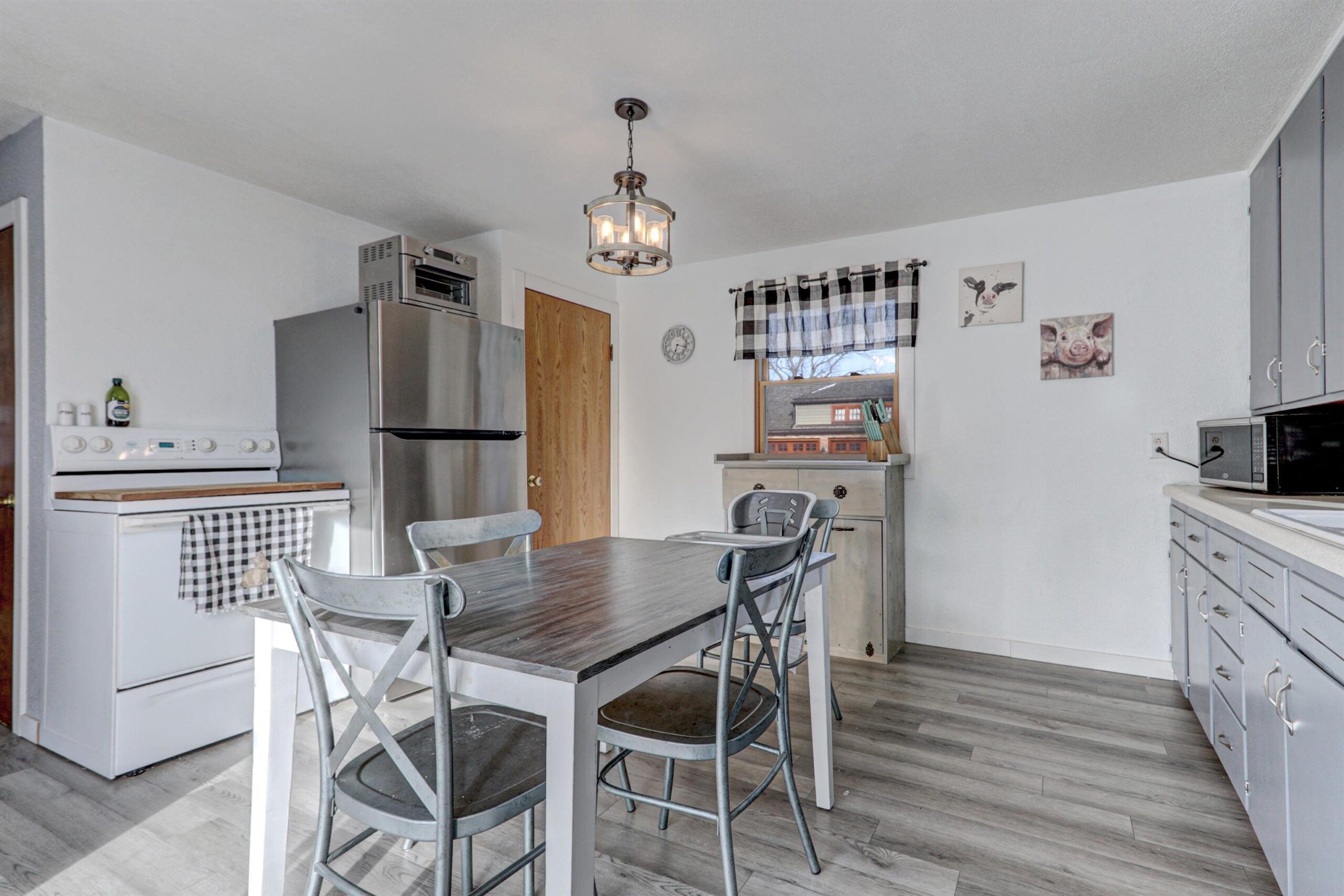 Stove/oven, refrigerator, microwave, washer, dryer, window treatments