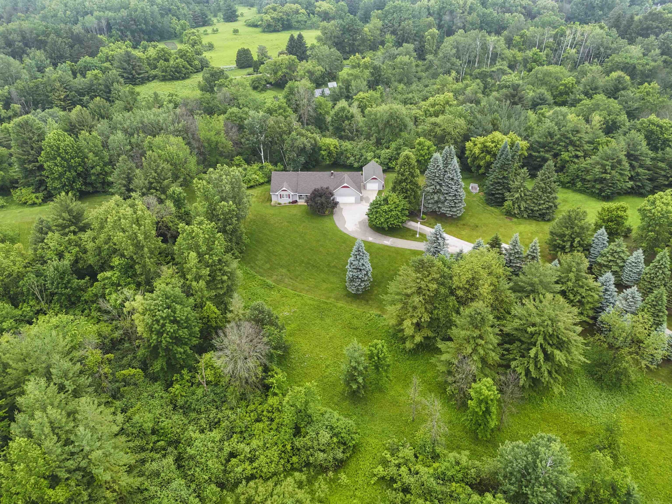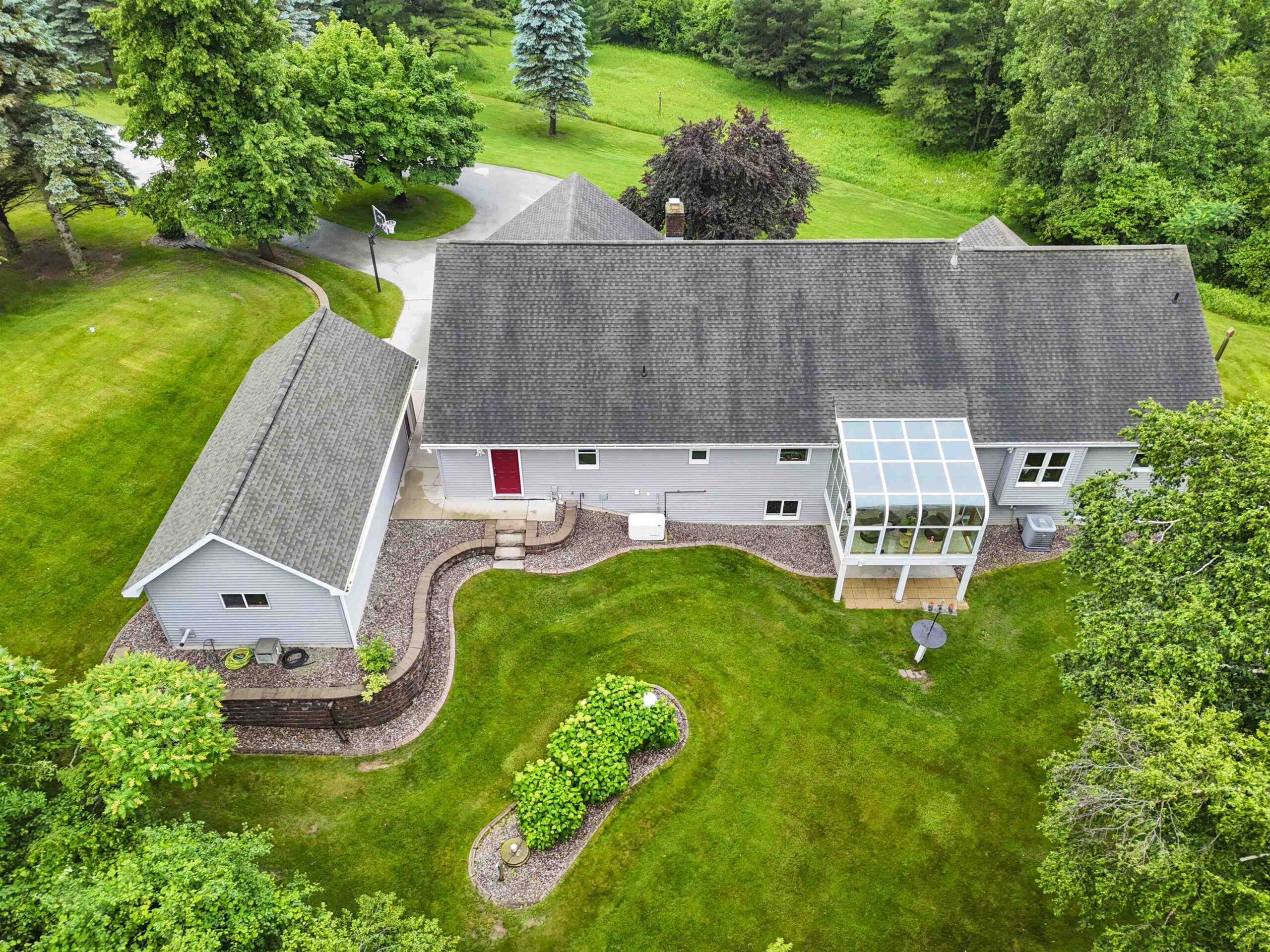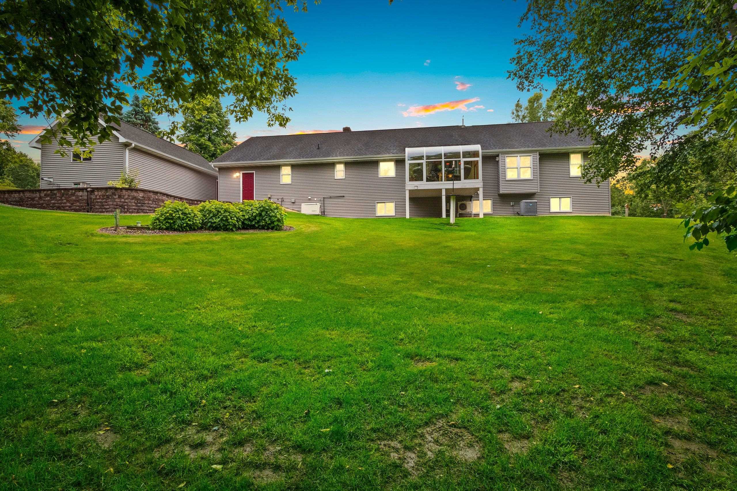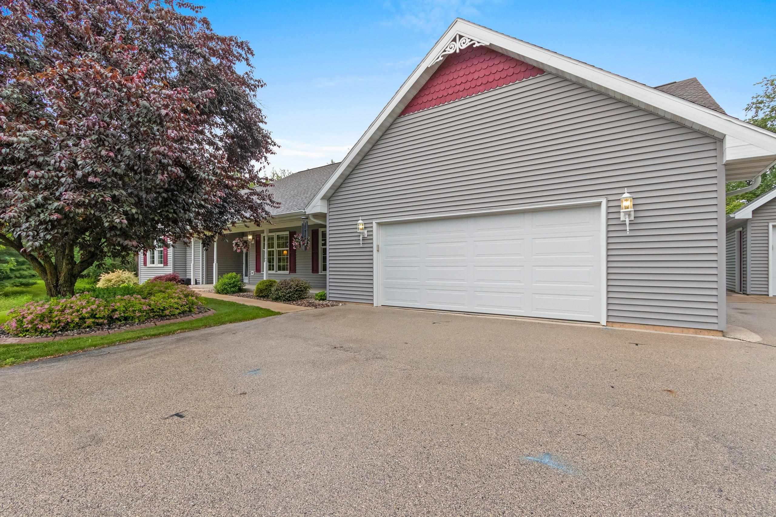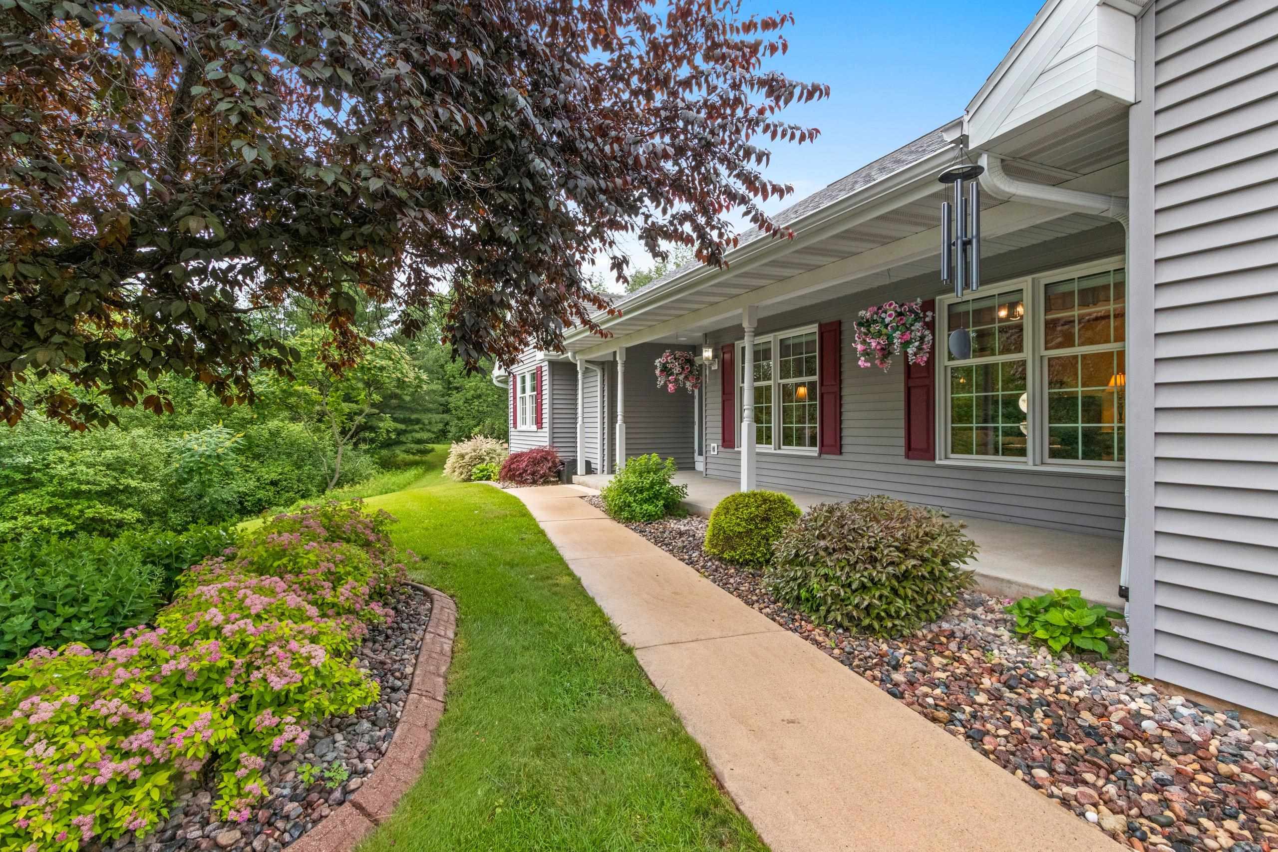 Back on the market due to no fault of sellers this gorgeous sprawling ranch home is tucked away on almost 6 acres of privacy with over 3200 sq. ft. of finished space. Beautifully landscaped and expertly cared for and includes a serene heated/cooled four season room with views of wildlife at every angle. Versatile heated detached garage as well as primary garage featuring 40 ft. deep second stall. First floor laundry and large LR with fireplace. Pride of ownership visible throughout with custom wood cabinetry and immense storage spaces. Huge finished recreation room in LL as well as two extra bedrooms and a second laundry/utility room. Water softener, reverse osmosis, air humidistat/purifier as well as back-up generator make this a truly feature-packed home. This is your sanctuary!