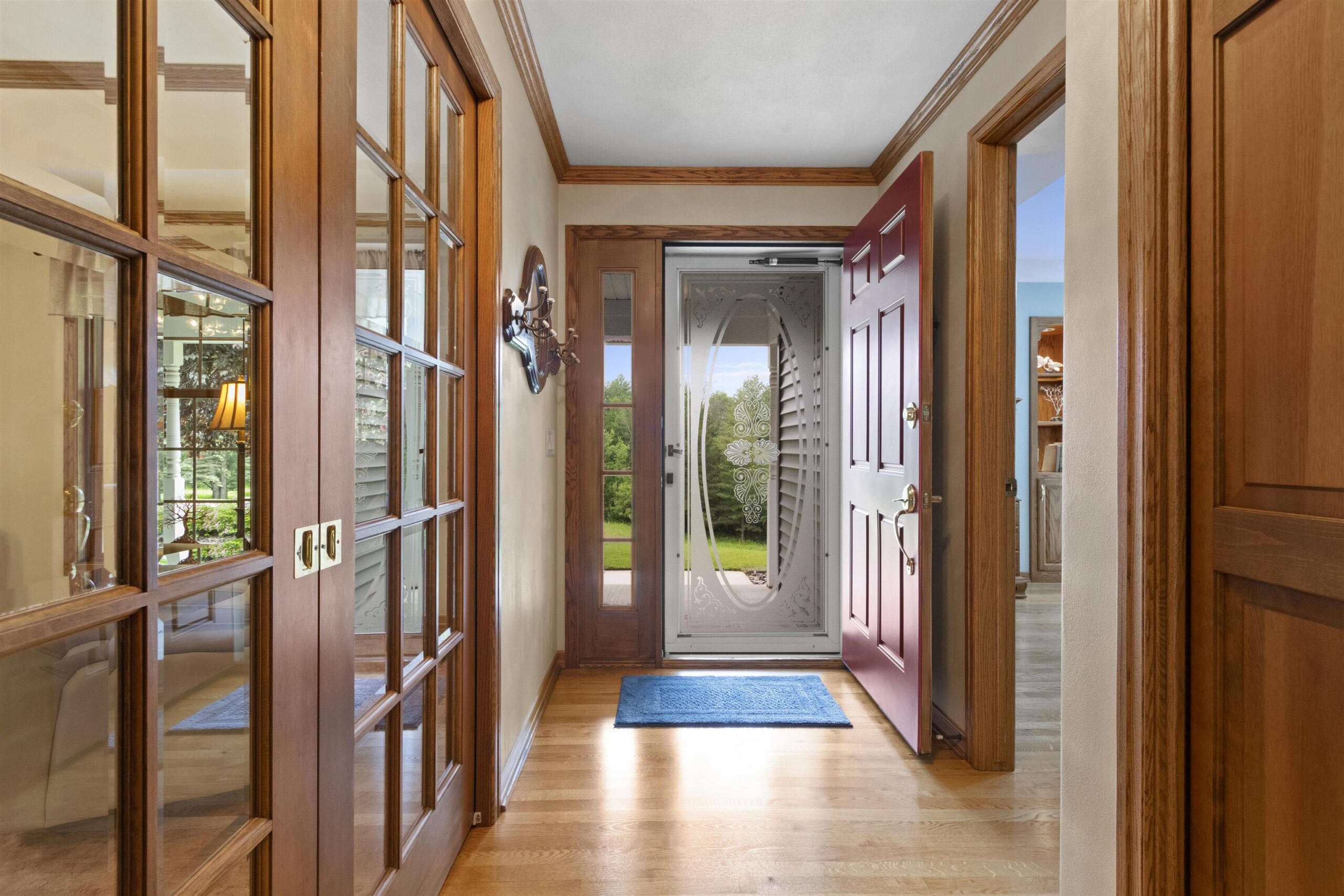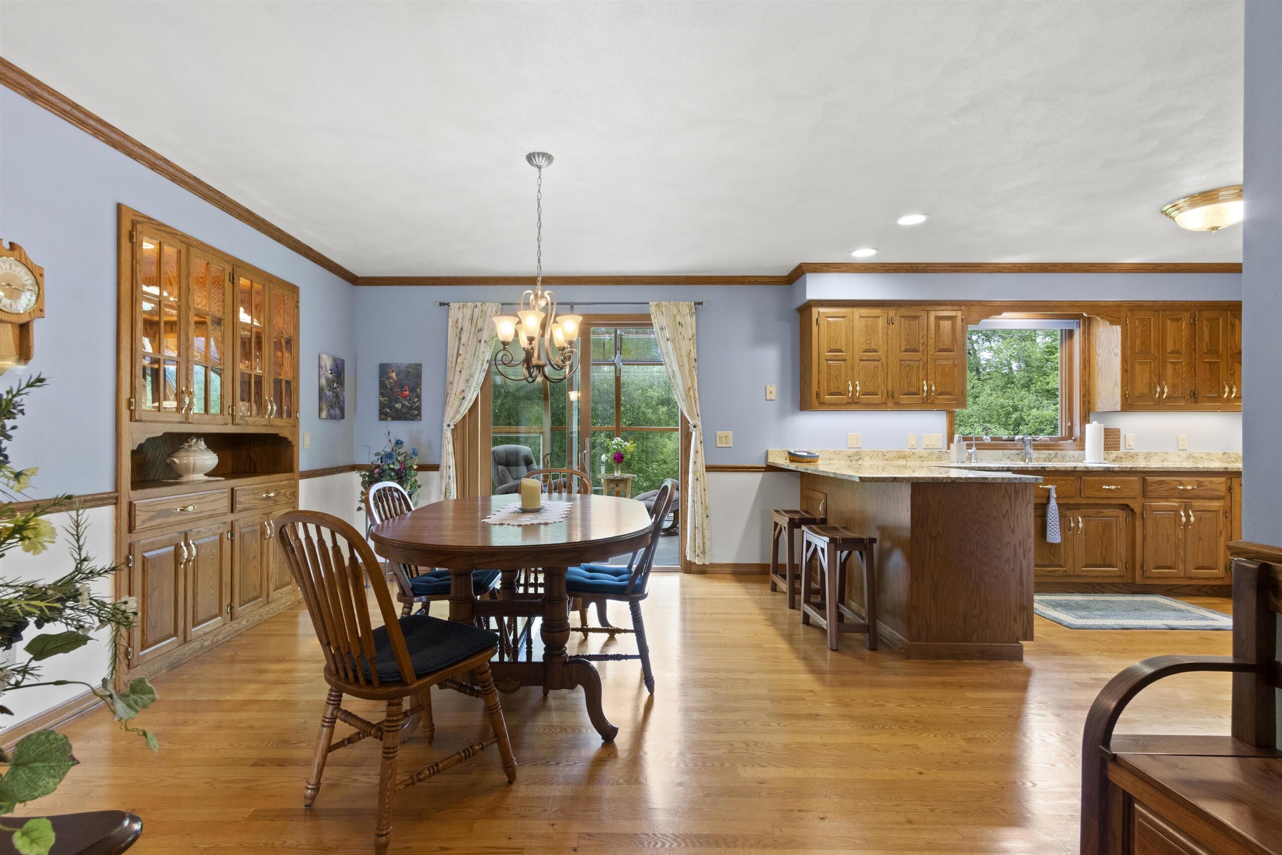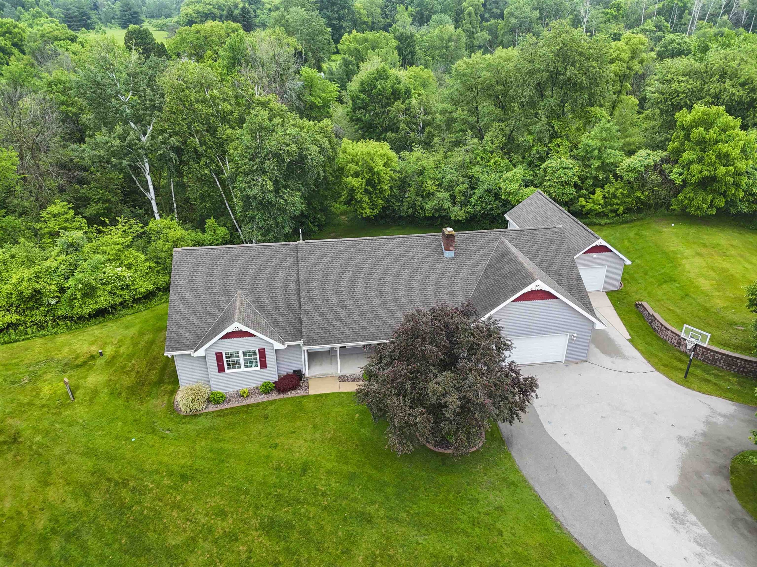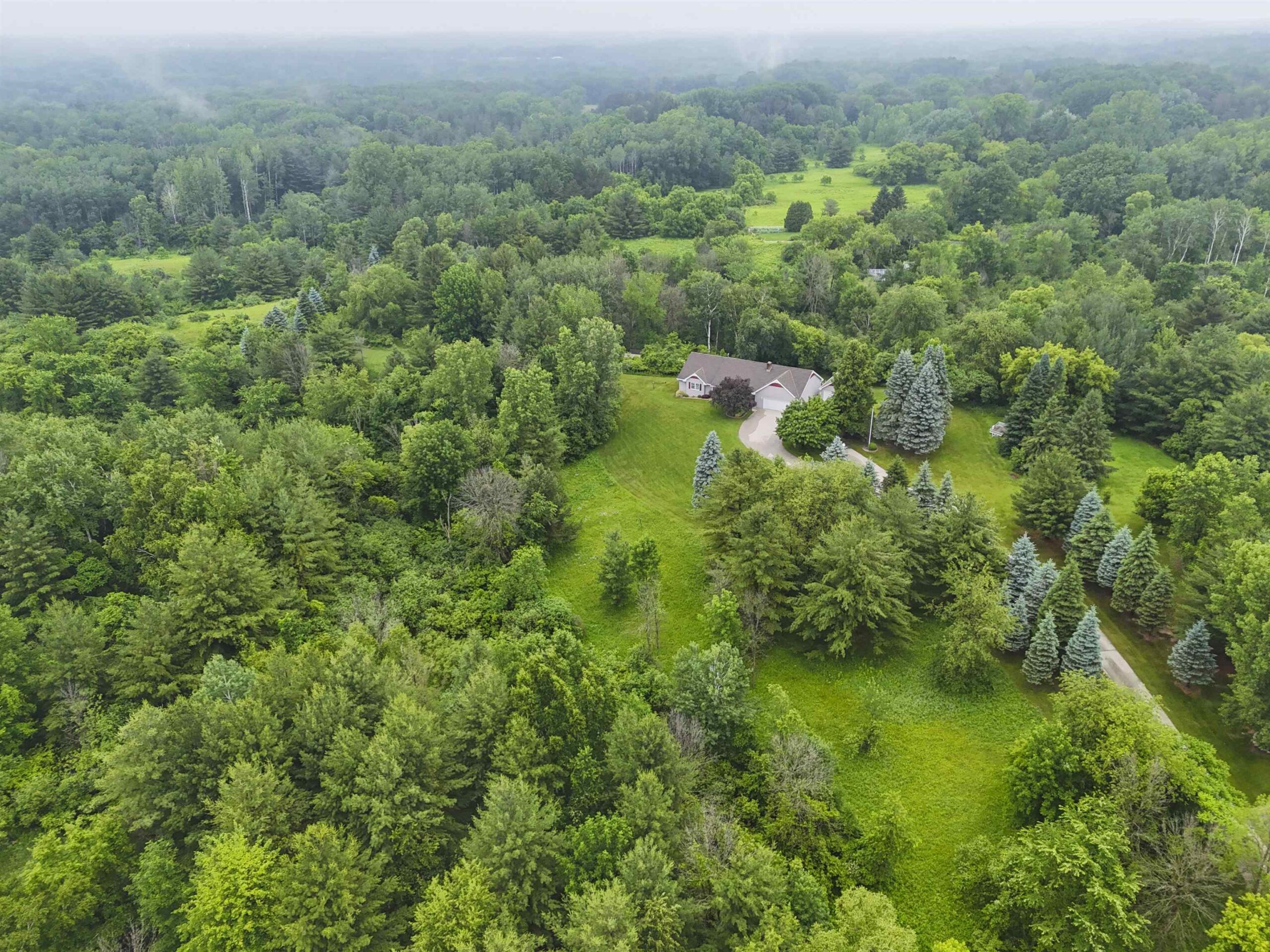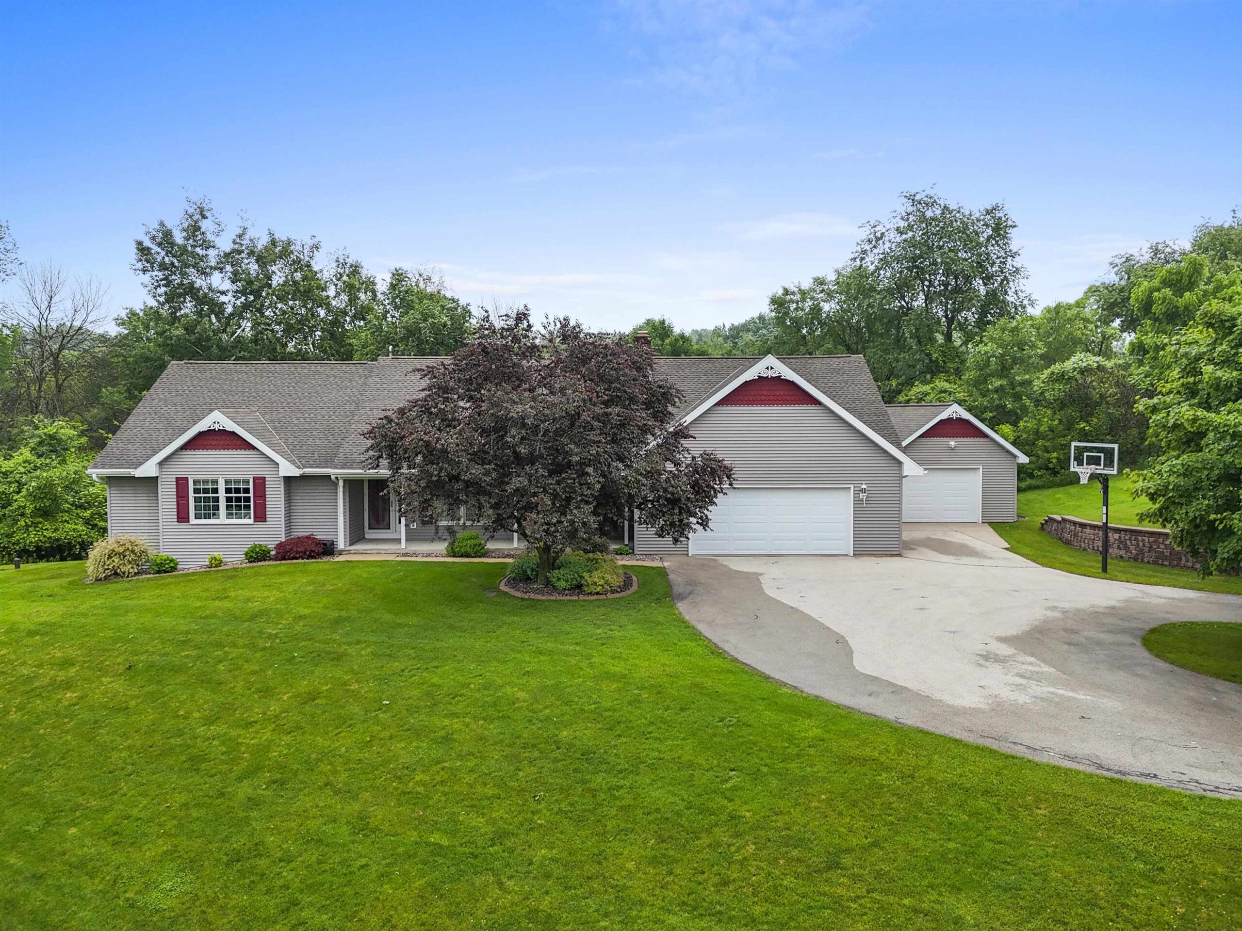 Back on the market due to no fault of sellers this gorgeous sprawling ranch home is tucked away on almost 6 acres of privacy with over 3200 sq. ft. of finished space. Beautifully landscaped and expertly cared for and includes a serene heated/cooled four season room with views of wildlife at every angle. Versatile heated detached garage as well as primary garage featuring 40 ft. deep second stall. First floor laundry and large LR with fireplace. Pride of ownership visible throughout with custom wood cabinetry and immense storage spaces. Huge finished recreation room in LL as well as two extra bedrooms and a second laundry/utility room. Water softener, reverse osmosis, air humidistat/purifier as well as back-up generator make this a truly feature-packed home. This is your sanctuary!