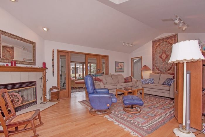 Incredible location….open & bright 3 bedroom & 3.5 bath end unit ranch condo! Large living room w/wood floors, cathedral ceilings + skylights! Eat-in kitchen w/solid surface countertops, breakfast bar, maple cabinets + dining area! Bright sun room leads to deck in backyard! Humongous family room in exposed lower level w/wet bar! Master suite w/walk-in closet, private bath w/whirlpool tub & separate shower! 1st floor laundry, Anderson windows, 2 car attached garage + new water heater-2015!