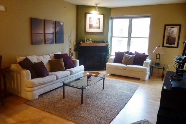 Downtown living at its best w/Overture, Library, Dining & Capitol Fare all w/in a block from home! Interior; Kitchen w/maple cabinetry, SS appliances, gas range, spacious breakfast bar all open to Dining/Living combo w/maple flrs, gas fireplace w/granite surround & private balcony! Master bdrm boasts walk in closet & access to balcony! Spacious bath w/deep soaking tub & laundry w/extra storage. Same floor parking. Secure building w/on-site management, parcel rm, rooftop terrace & exercise facilities!