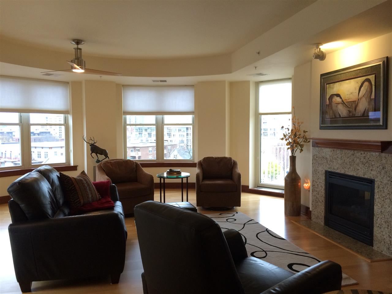 Enjoy all downtown Madison has to offer in this STUNNING & SPACIOUS 2bd+den condo 3 blocks from the Square in Metropolitan Place! Popular, turret floor plan is nicely appointed w/beech wood floors throughout, cherry-stained trim/cabinets, NEW SS appliances, granite ctrs, sink & faucet, NEW W/D, NEW ceiling fans, 2-way gas FP, 2 large WIC w/NEW CA Closets, 2 balconies & walls of windows to enjoy natural light, sunsets, city views & even a peek of the lake! Strg & 2 pkg included! Pkg fee $23.84/mo/space.