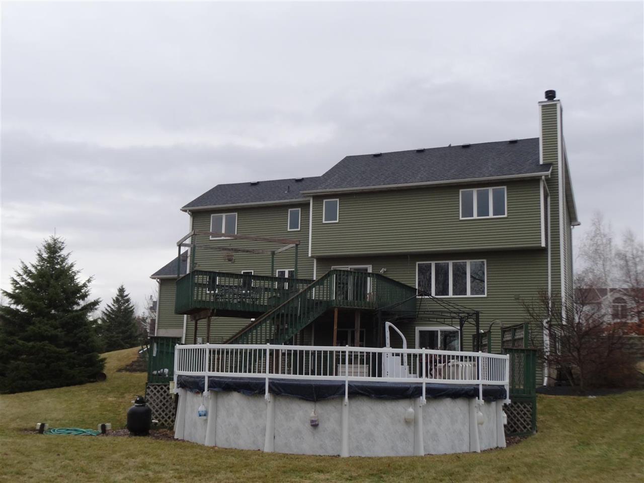 NEW PRICE & $3,000 FLOORING ALLOWANCE! Beautiful custom built 4BR, 3.5BA one owner! Enter to the 2 Story foyer, formal DR & LR. Sun filled FR w/wood fp overlooking expansive backyard. Hardwood fl in spacious kitchen w/island, dinette & computer nook. 1st FL laundry & mudroom. Gorgeous MBR suite w/walkin closet, double sink, jetted tub & shower. Fantastic 3 tiered deck overlooks above ground pool. Recent updates: new siding & roof(13), A/C(11), Patio Doors Main & Walkout levels (14), 6 windows replaced(13)