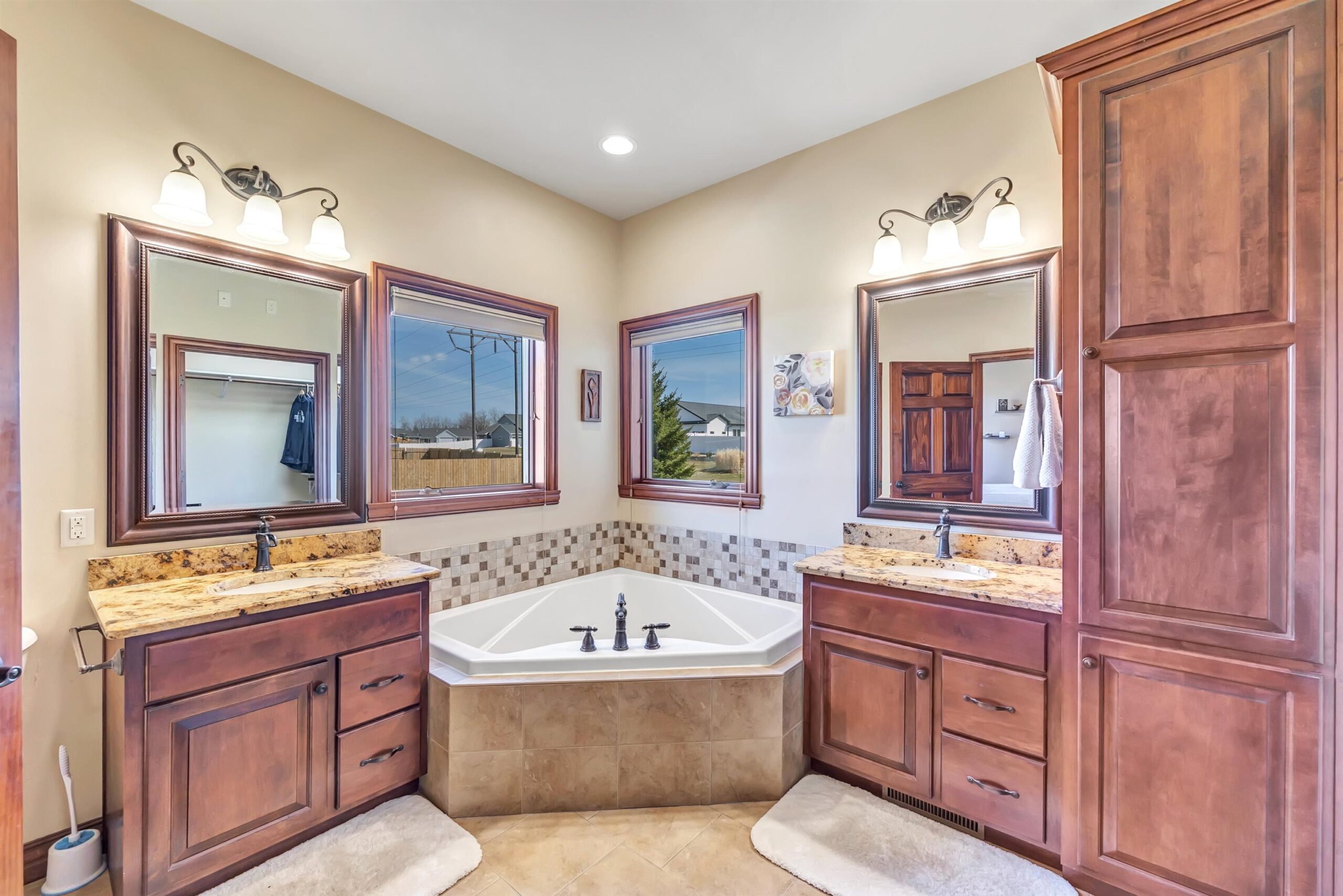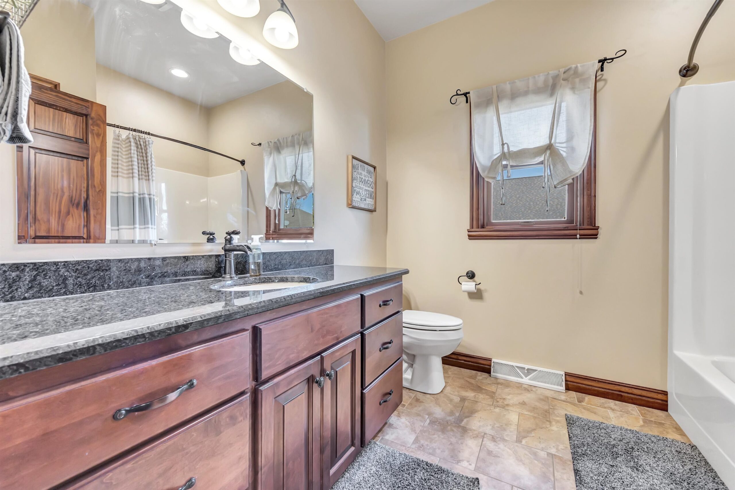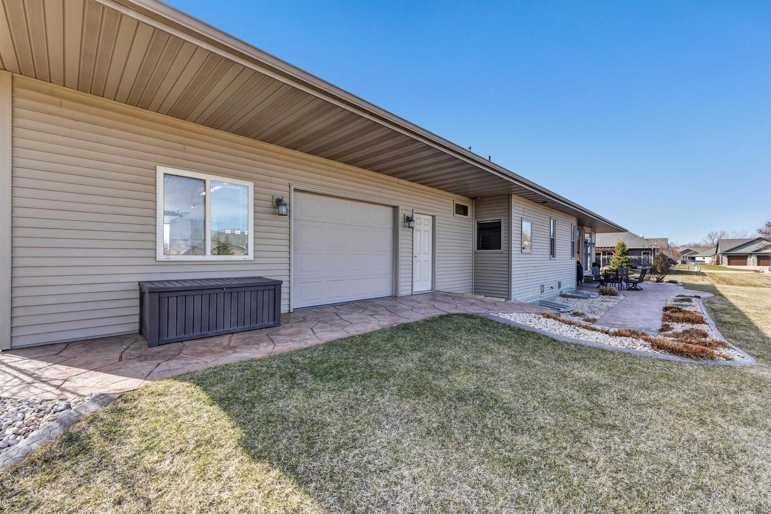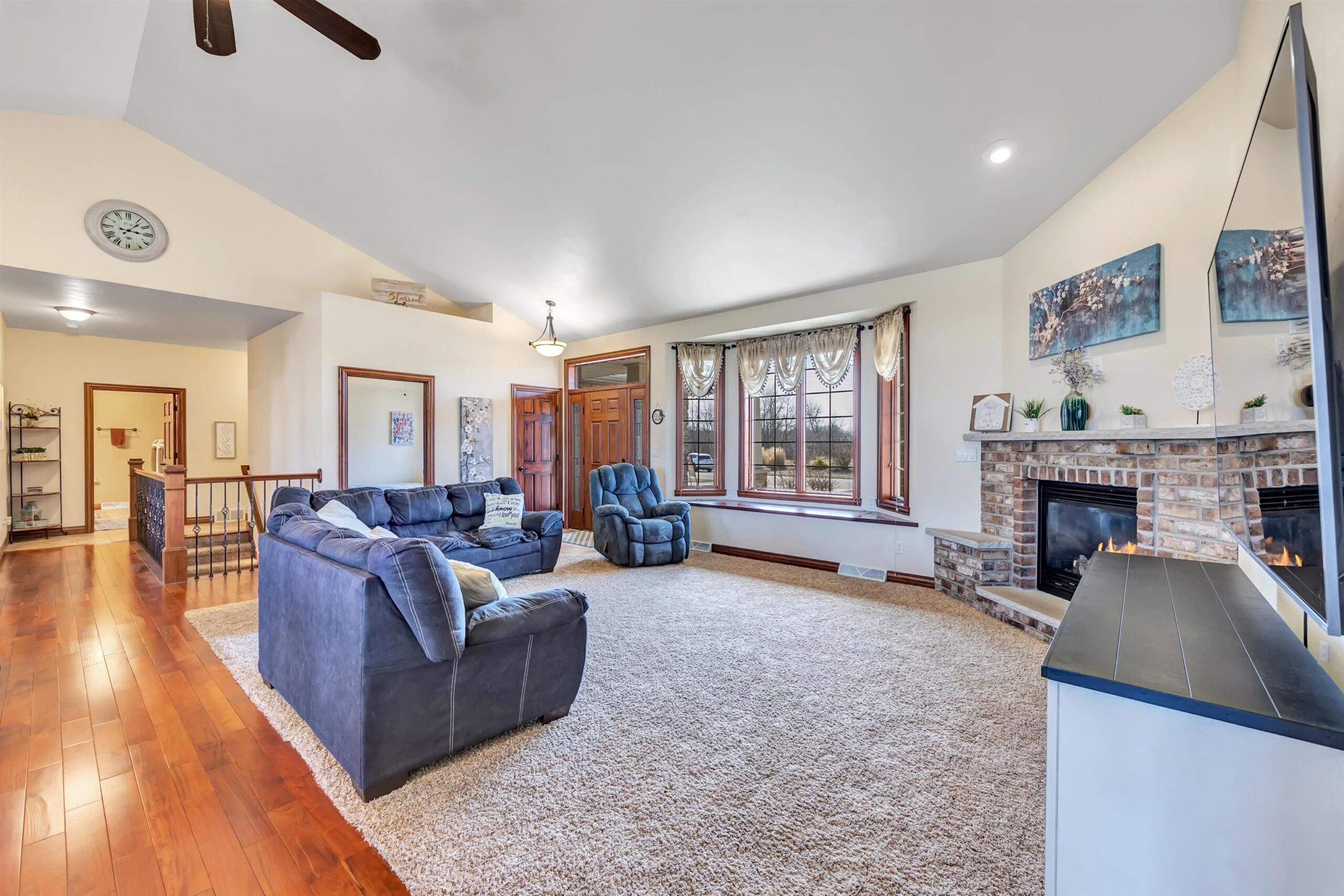 Welcome to this custom-built, one-owner Howard home on a quiet cul-de-sac. Zero-step entry from the front and garage doors welcome you into this 4 bed, 3.5 bath open-concept home with cathedral ceilings, granite throughout main level and rich hardwood floors. The kitchen offers ample storage, a walk in pantry and a large tiered island flowing to the dining room and living room with gas fireplace. The primary suite features split vanities, jetted tub, large tile shower and a spacious L shaped walk-in closet. Convenient first-floor laundry with locker system. Finished lower level includes a bedroom, full bath, wet bar and egress windows. Don't miss the impressive 2,088 sq ft heated, finished garage with epoxy floors, floor drains, 240v outlets, 9' tall garage doors, and attic storage!