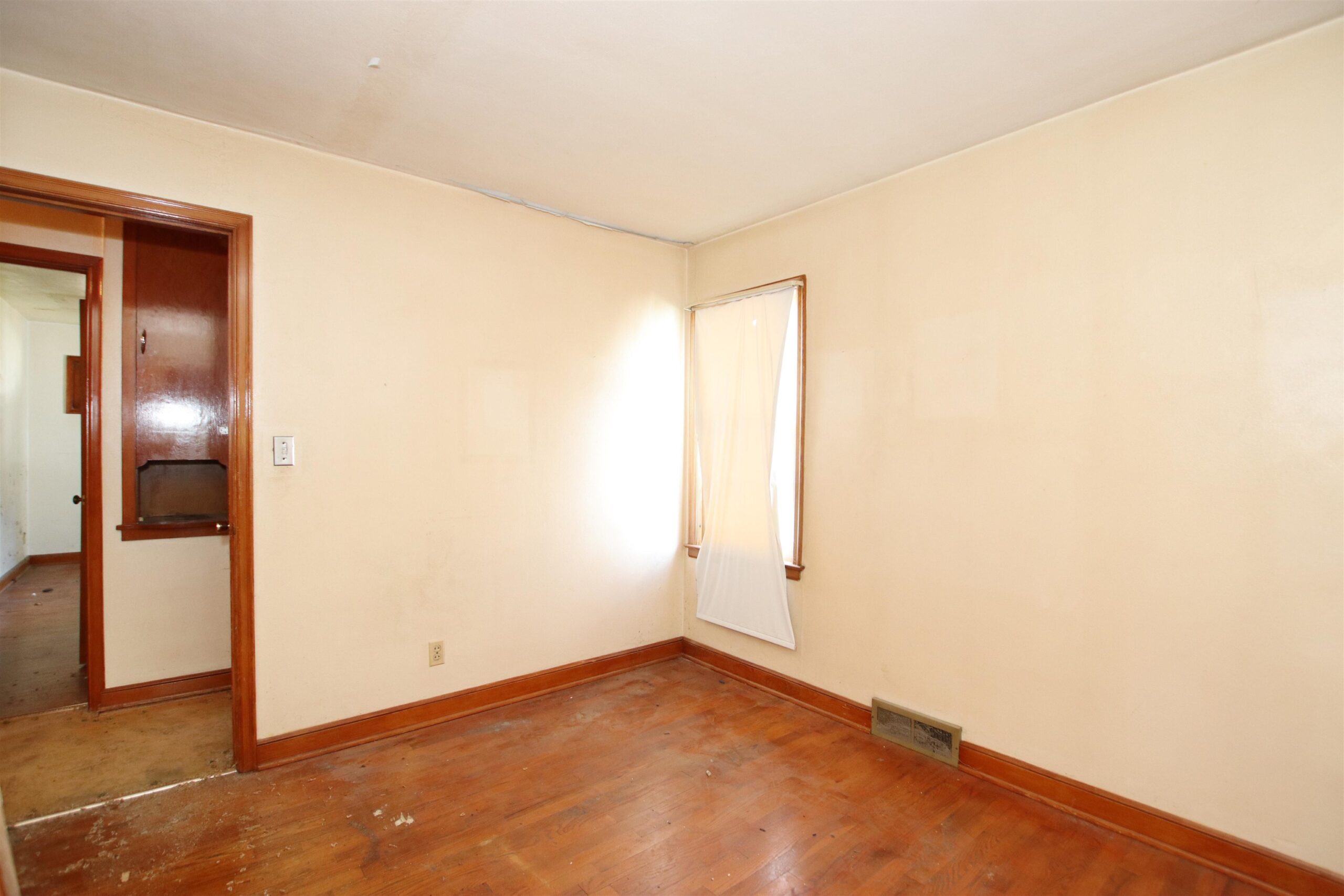 Look beyond the outside work and consider what you will have in the end! An adorable house on a story book street. So much charm in this ranch complete with 3 bedrooms and 1.5 baths. Pick your own paint colors and carpet for some areas while you simply clean up the rooms with the beautiful hardwood flooring. Generous kitchen for cooking with attached dining area. Other room is enclosed front porch off the living room. Large yard with patio area that just needs some love. Attached 1 car garage. The perfect property to purchase, fix up, and live in! Just bring your ideas! Home is being sold “As is”. Home will not pass FHA financing. Per the City Assessor, exterior finish is Asbestos/Asphalt. All appliances in the house are included. All offers to be presented Tuesday, September 5th, at Noon.