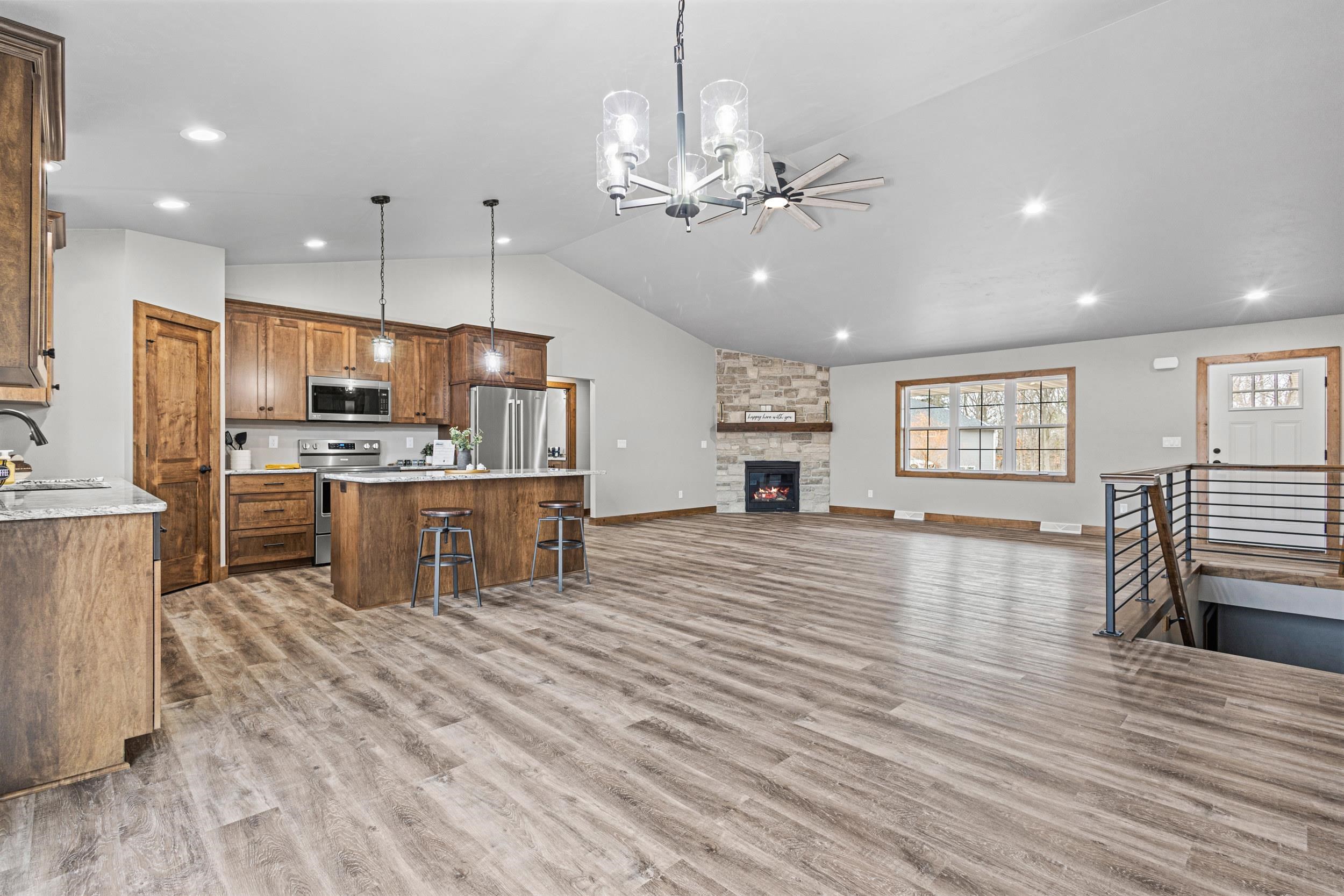 Stove, fridge, microwave, dishwasher, c/a, concrete driveway & concrete walkway to front porch. Gutters/Downspouts will be connected to storm sewer.