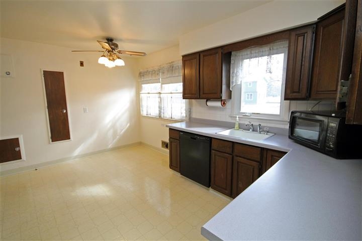 Simply charming ranch home just waiting for you! 3 Bedrooms and 1 newly updated full bathroom. Large kitchen and dining area with all appliances included. Newer roof, updated windows, large 2.5 car detached garage w/100 amp service as well as 220 hookups. Almost all of the interior has been freshly painted! Some newer flooring installed, but hardwood floors underneath! Lots of great closet space. Large deck, private yard, and a fully beamed basement. 1 Year Home warranty included also!